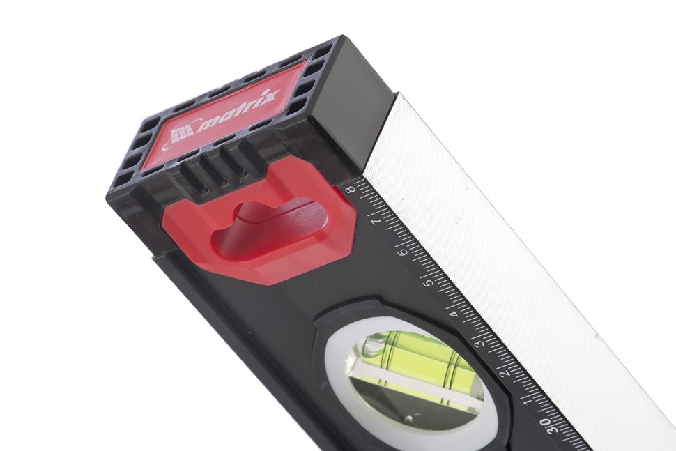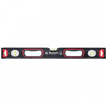 Усиленный алюминиевый уровень Matrix 34364 длиной 1200 мм, фрезерованный, с 3 глазками и двухкомпонентными рукоятками, служит для проверки горизонтальных, вертикальных поверхностей и поверхностей, расположенных под углом 45. Пригодится частным мастерам и профессионалам при проведении строительных, ремонтных, монтажных и работ.Для определения отклонения вертикали 90 градусов необходимо использовать пузырьковую ампулу только в верхнем положении уровня. Только базовая поверхность является рабочей (противоположная ампуле 180 градусов).ПреимуществаУровень выполнен из легкого, но прочного и долговечного алюминиевого профиля.Электронная калибровка глазков позволяет добиться более точных замеров.Фрезеровка рабочей грани обеспечивает ровное положение инструмента, что снижает погрешность измерений.Для удобства захвата в корпусе предусмотрены рукоятки с прорезиненными вставками.Шкала на корпусе служит для проведения линейных замеров.