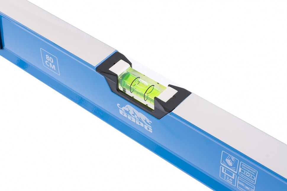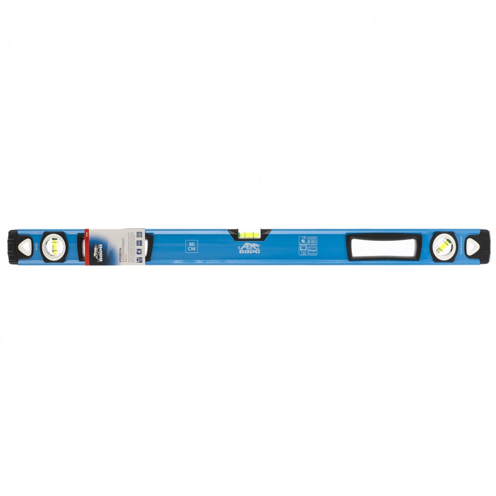 Фрезерованный алюминиевый двуручный уровень Барс 34352 длиной 800 мм, с профилем 1,6 мм, ударопрочными заглушками и 3 глазками, применяется для выявления отклонений относительно горизонтальной и вертикальной плоскостей и под углом 45 градусов. Инструмент пригодится профессиональным мастерам при работе на стройке, выполнении ремонтных и иных работ.Для определения отклонения вертикали 90 градусов необходимо использовать пузырьковую ампулу только в верхнем положении уровня. Только базовая поверхность является рабочей (противоположная ампуле 180 градусов).ПреимуществаУдаропрочный алюминиевый профиль рассчитан на интенсивное использование.Заглушки из TPR-материала (термопластичной резины) служат защитой ампул и корпуса, придавая им ударопрочность.Высокая точность уровня достигается за счет фрезерованной базы и двойного контроля при установке глазков.Для удобного захвата инструмента в корпусе предусмотрены рукоятки.С торцевых сторон имеются отверстия для подвесного хранения инструмента.