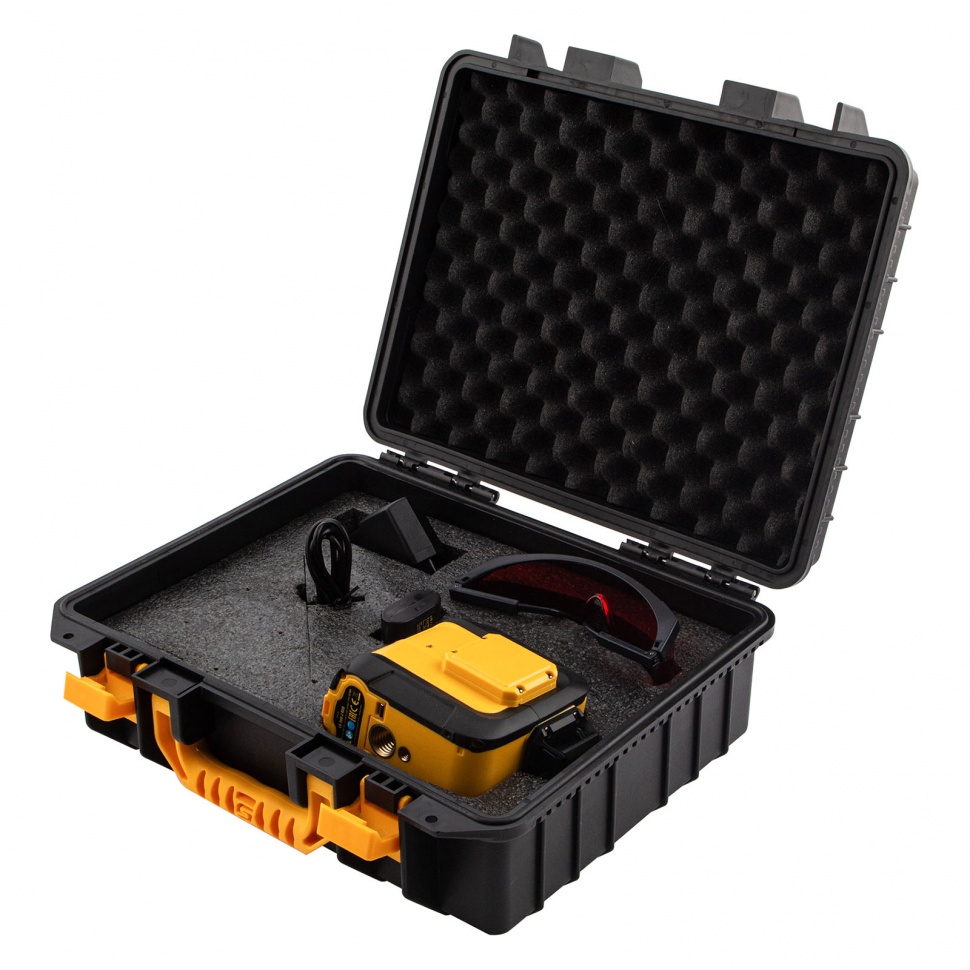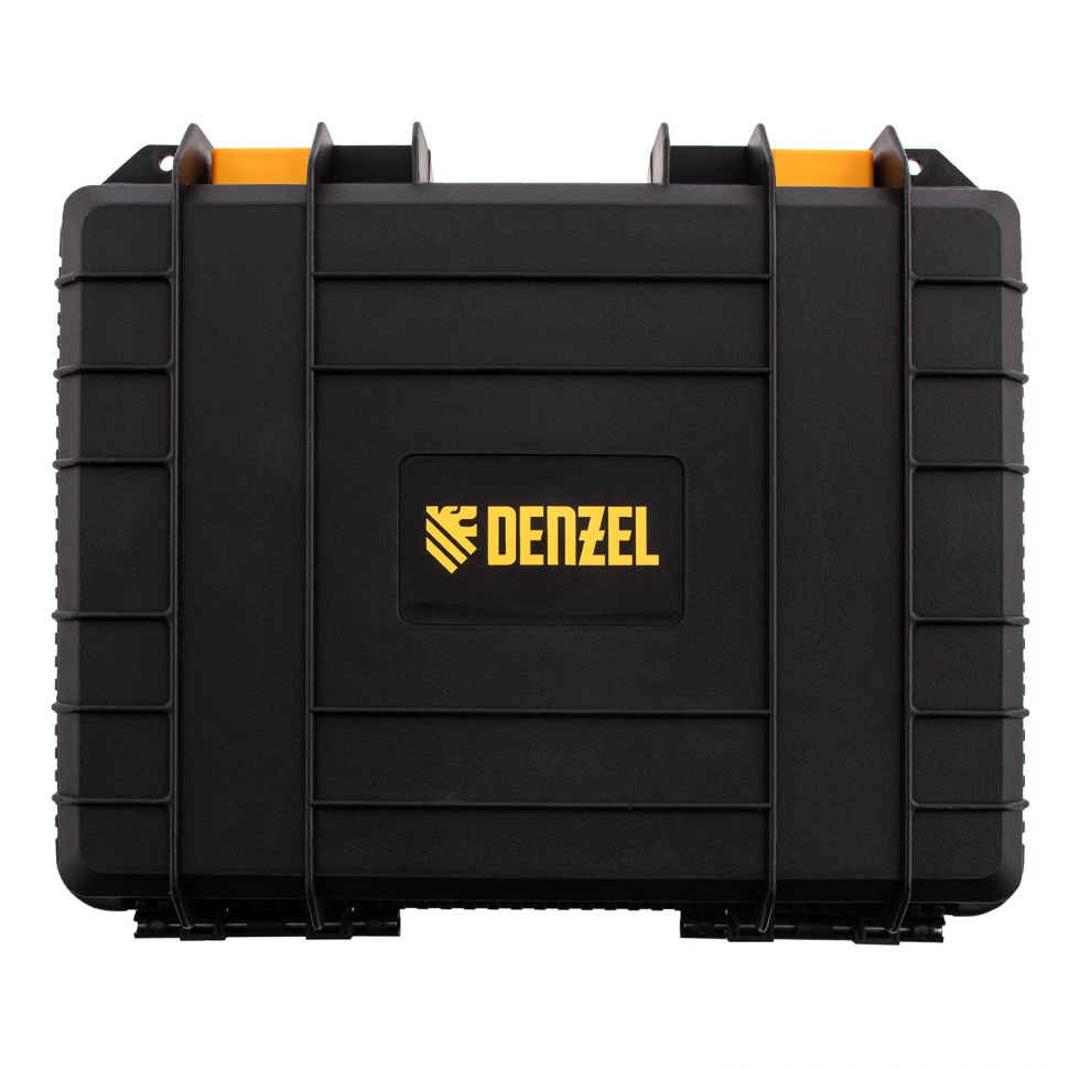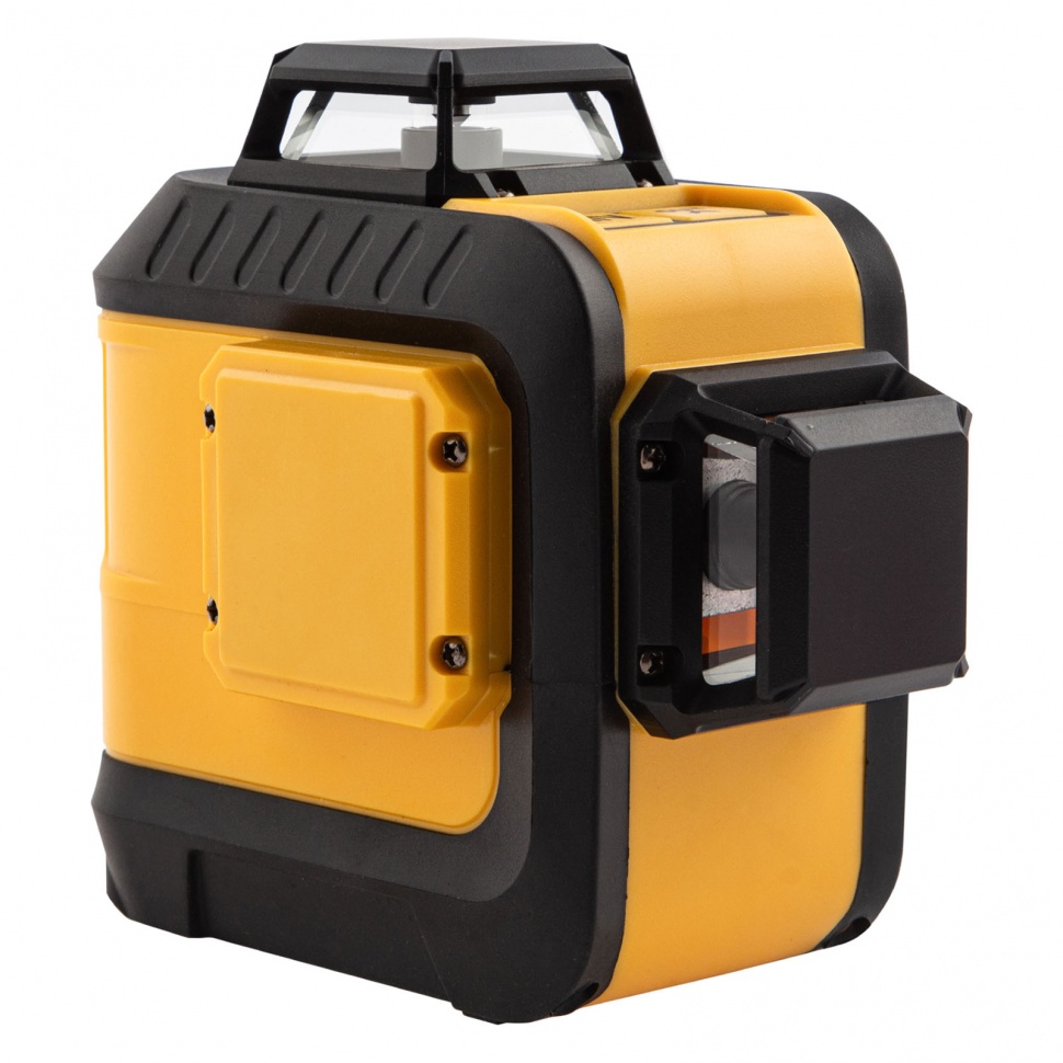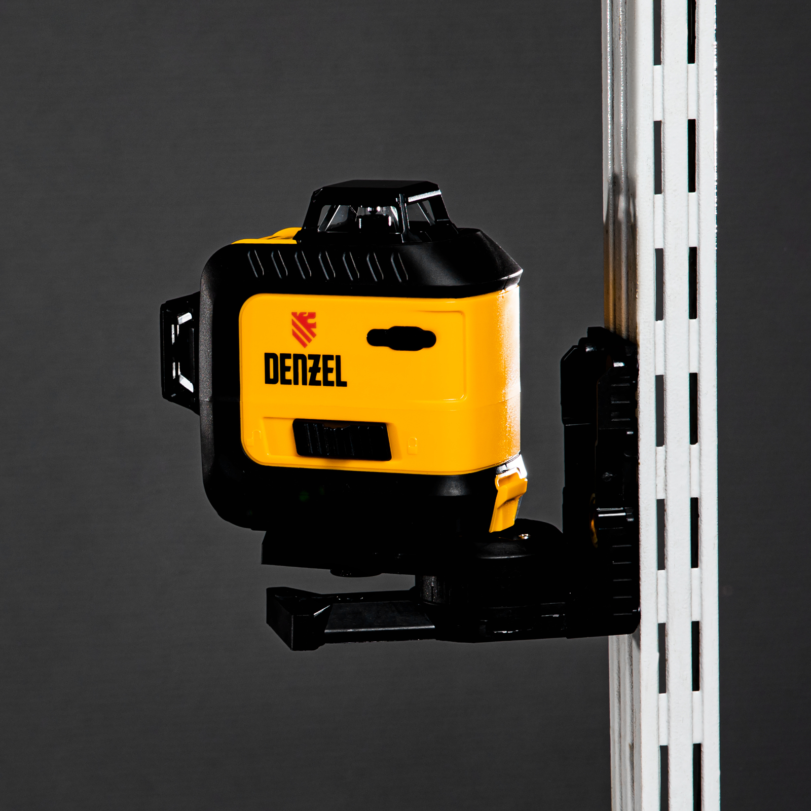 Мультипризменный лазерный уровень Denzel LX 360-2 Red 35076 с резьбой 5/8"" под штатив работает от аккумулятора Li-Ion 2800 мАч и проецирует горизонтальные и вертикальные линии с охватом 360° на расстояние до 30 м при помощи лазерных лучей длиной 635 нм. Используется для разметки поверхностей в ходе строительных и отделочных работ.ПреимуществаТочная разметка — уровень имеет опцию самовыравнивания с точностью до 4°.Простая эксплуатация — прибор оборудован интуитивно понятной панелью управления с сенсорными кнопками.Оповещение о превышении угла наклона — в случае отклонения уровня более чем на 4° по горизонтали лазерные лучи начинают мигать.Яркая проекция — в режиме «OUTDOOR» лучи видно даже при дневном освещении.Решение широкого спектра задач — опцию автоматического выравнивания можно отключить для построения наклонной проекции.Возможность установки на штатив — в нижней части корпуса предусмотрена резьба 1/4"" и 5/8"".Экономия заряда аккумулятора — неиспользуемые лучи можно отключать.Защита от повреждений — корпус изготовлен из ударопрочного пластика и дополнен резиновыми накладками, не пропускает пыль и капли воды.Безопасная транспортировка — блокировка маятника предотвращает выход его из строя.Пластиковый кейс — уровень удобен в хранении и транспортировке.Гарантия 3 года — надежность прибора подтверждена производителем.
