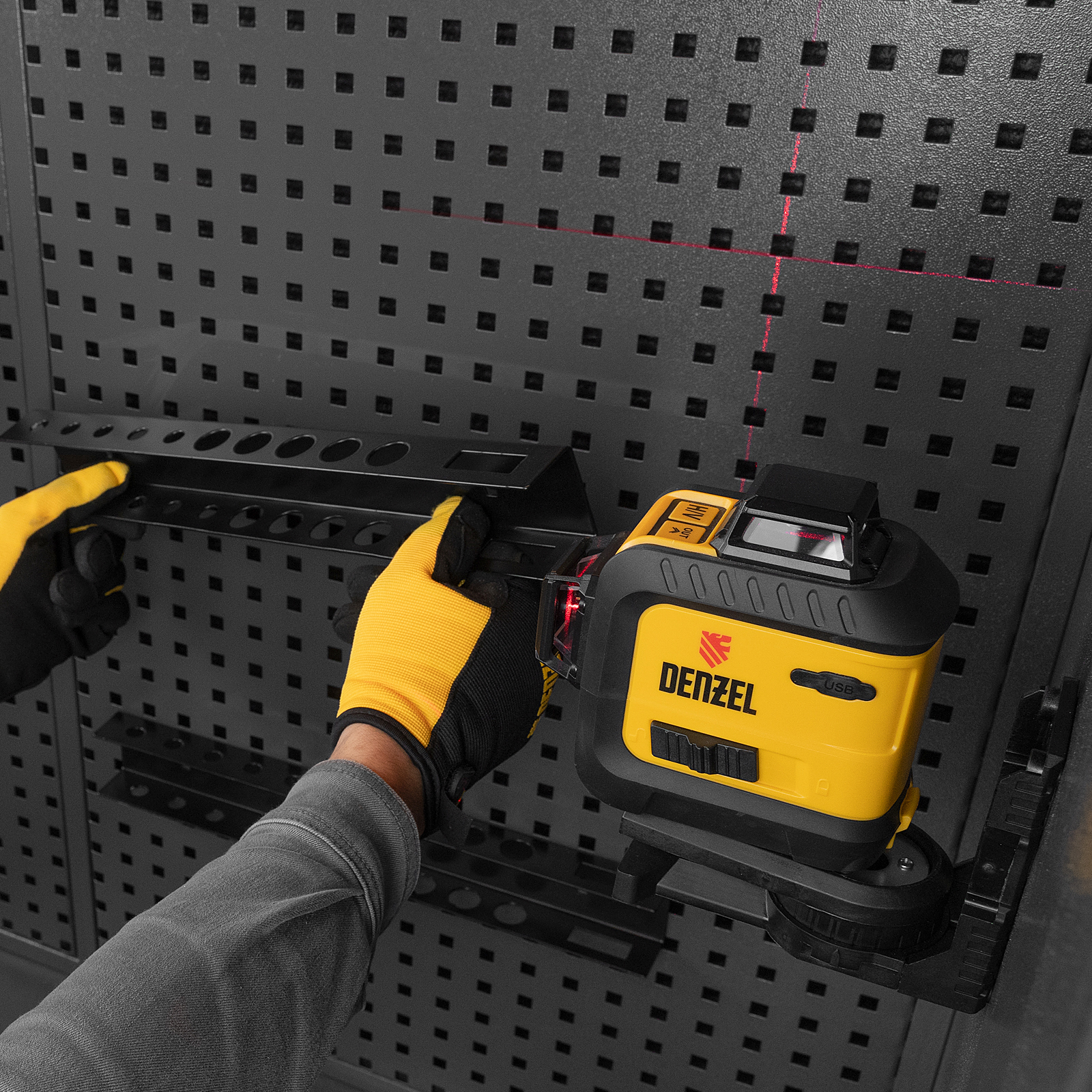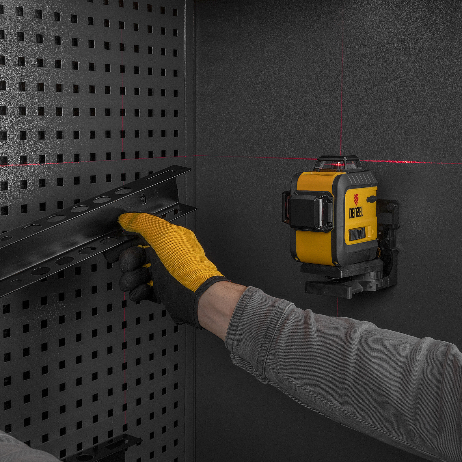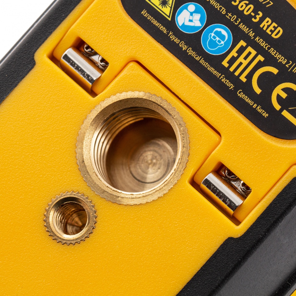 Мультипризменный лазерный уровень Denzel LX 360-3 Red 35077 с резьбой 5/8" под штатив работает от аккумулятора Li-Ion 2800 мАч и проецирует горизонтальные и вертикальные линии с охватом 360° на расстояние до 30 м при помощи лазерных лучей длиной 635 нм. Используется для разметки поверхностей в ходе строительных и отделочных работ.ПреимуществаТочная разметка — уровень имеет опцию самовыравнивания с точностью до 4°.Простая эксплуатация — прибор оборудован интуитивно понятной панелью управления с сенсорными кнопками.Оповещение о превышении угла наклона — в случае отклонения уровня более чем на 4° по горизонтали лазерные лучи начинают мигать.Яркая проекция — в режиме «OUTDOOR» лучи видно даже при дневном освещении.Решение широкого спектра задач — опцию автоматического выравнивания можно отключить для построения наклонной проекции.Возможность установки на штатив — в нижней части корпуса предусмотрена резьба 1/4" и 5/8".Экономия заряда аккумулятора — неиспользуемые лучи можно отключать.Защита от повреждений — корпус изготовлен из ударопрочного пластика и дополнен резиновыми накладками, не пропускает пыль и капли воды.Безопасная транспортировка — блокировка маятника предотвращает выход его из строя.Пластиковый кейс — уровень удобен в хранении и транспортировке.Гарантия 3 года — надежность прибора подтверждена производителем.