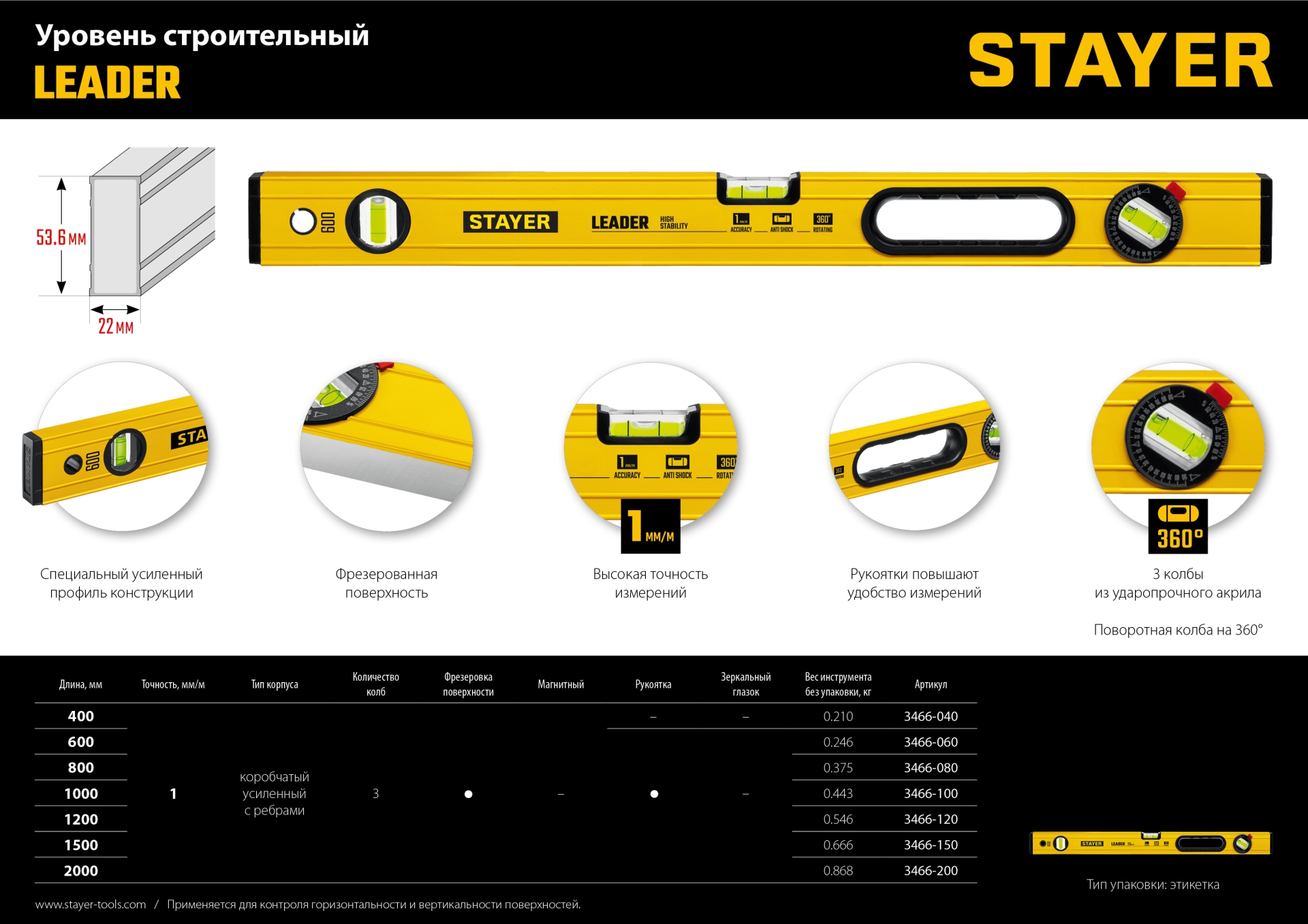 Строительный уровень с фрезерованной базовой поверхностью и рукоятками для удобства измерений