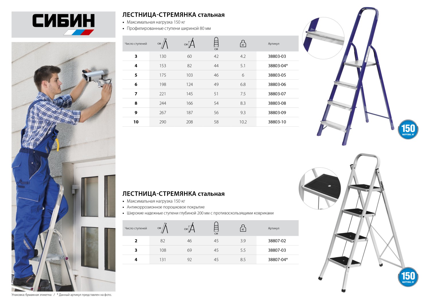 Лестницы СИБИН предназначена для выполнения различных хозяйственных работ. Надежная конструкция в сочетании с высококачественными материалами обеспечивают легкость и удобство в эксплуатации.