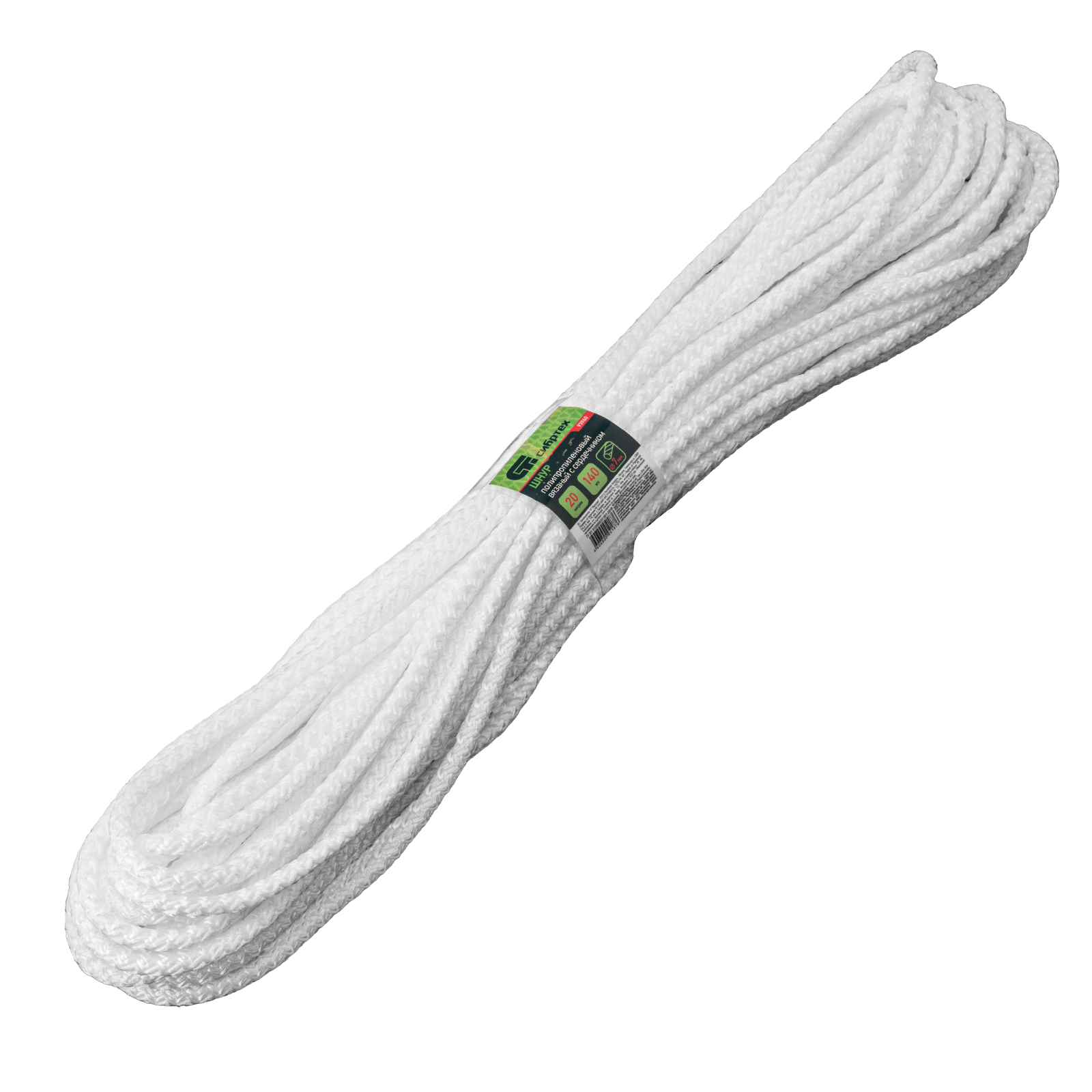 Вязаный полипропиленовый шнур с сердечником Сибртех 93960 белого цвета, диаметром 7 мм, длиной 20 м, будет полезен для хозяйственных нужд — сушки белья, связывания предметов. Пригодится также в походе, на охоте или рыбалке. Благодаря сердечнику и высокопрочной оплетке вязаный шнур обладает повышенной устойчивостью к истиранию и разрыву — максимальная разрывная нагрузка составляет 140 кгс. Изделие не растягивается и не провисает под значительным весом.ПреимуществаПолипропиленовый шнур мягкий и эластичный, поэтому образует надежные узлы.Полипропилен практически не впитывает влагу, за счет чего шнур защищен от гниения.За счет наличия сердечника изделие устойчиво к многократному изгибанию, а значит, прослужит долго.Хозяйственный шнур устойчив к воздействию химических веществ, а также температурным перепадам, и может использоваться вне помещения.Длина 20 м позволяет протянуть шнур на большое расстояние или обвязать им габаритные предметы.