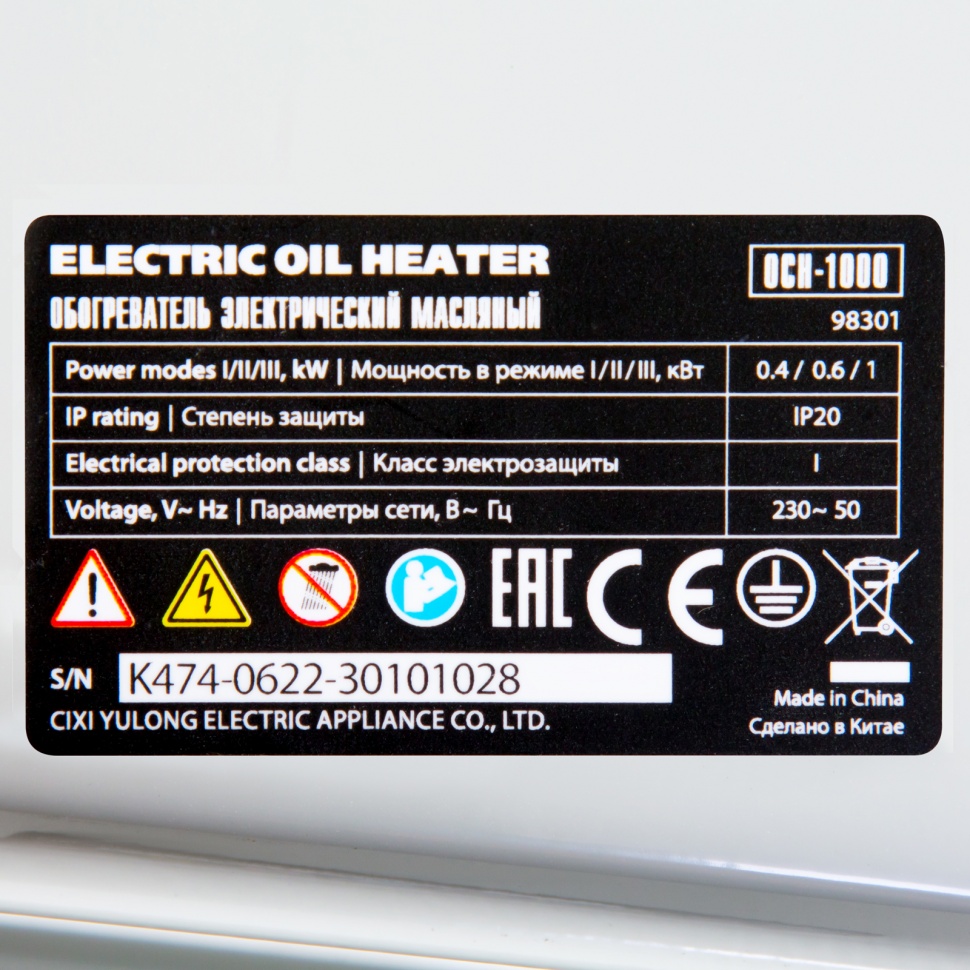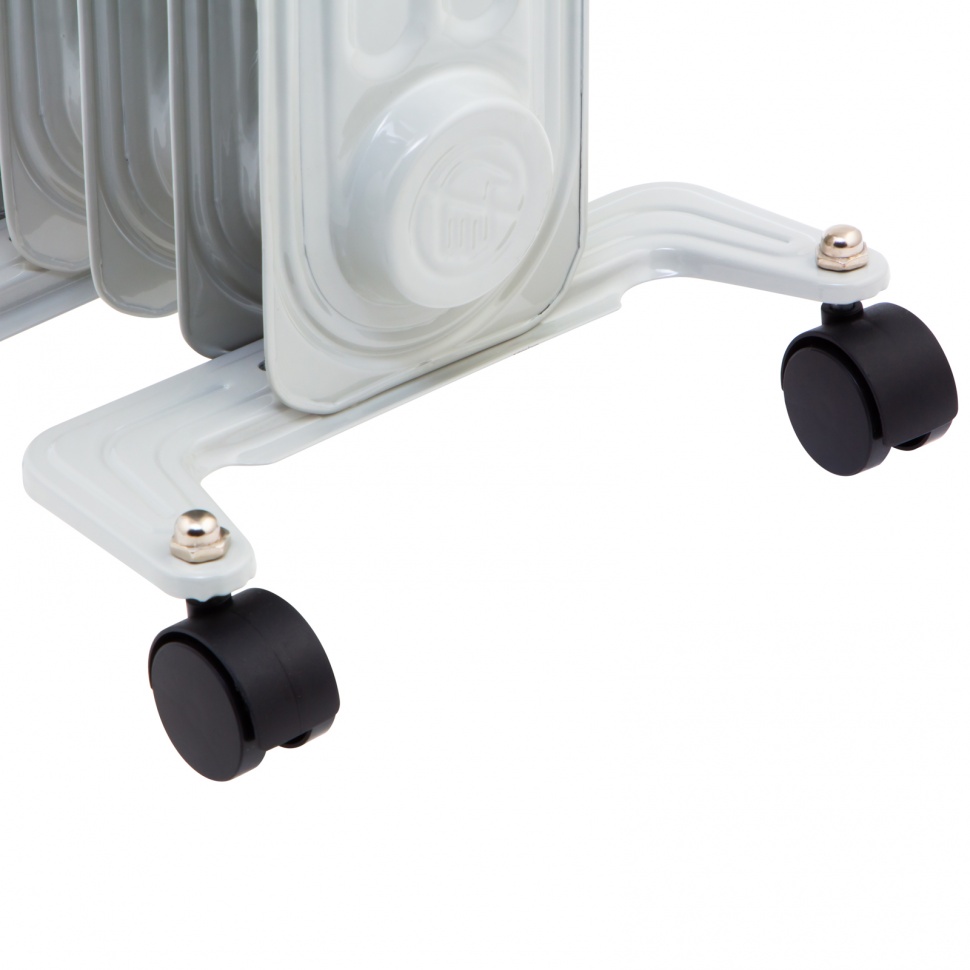 Масляный обогреватель MTX OCH-1000 98301 максимальной мощностью 1000 Вт питается от сети 230 В и предназначен для обогрева кухни, комнаты, офиса или других помещений площадью до 10 кв. м. Нагревательная поверхность с 5 секциями не сушит воздух и не вызывает появление неприятных запахов. Обогреватель работает абсолютно бесшумно, поэтому его использование не вызывает дискомфорт. Преимущества3 режима работы — можно установить мощность нагрева 400, 600 и 1000 Вт в зависимости от площади помещения.Автоматическое поддержание температуры — механический термостат включает и отключает обогреватель по мере необходимости для достижения заданных параметров работы.Безопасность — система защиты отключает обогреватель при опрокидывании и перегреве.Удобная эксплуатация — о работе обогревателя информирует световой индикатор.Легкое перемещение — обогреватель оснащен 4 колесами, а на корпусе имеется удобная ручка.Продуманное хранение — конструкцией предусмотрен кронштейн для намотки сетевого кабеля и крепления вилки.