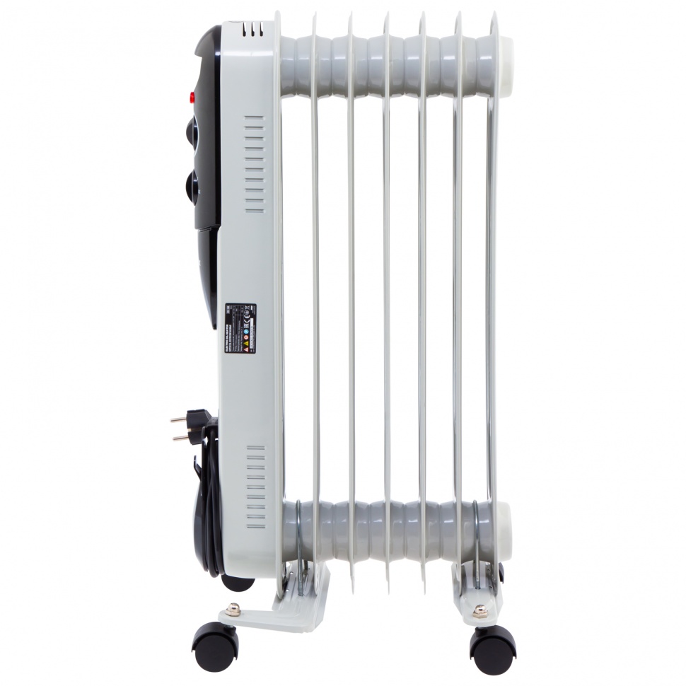 Масляный обогреватель MTX OCH-1500 98302 максимальной мощностью 1500 Вт питается от сети 230 В и предназначен для обогрева кухни, комнаты, офиса или других помещений площадью до 15 кв. м. Нагревательная поверхность с 7 секциями не сушит воздух и не вызывает появление неприятных запахов. Обогреватель работает абсолютно бесшумно, поэтому его использование не вызывает дискомфорт.Преимущества3 режима работы — можно установить мощность нагрева 600, 900 и 1500 Вт в зависимости от площади помещения.Автоматическое поддержание температуры — механический термостат включает и отключает обогреватель по мере необходимости для достижения заданных параметров работы.Безопасность — система защиты отключает обогреватель при опрокидывании и перегреве.Удобная эксплуатация — о работе обогревателя информирует световой индикатор.Легкое перемещение — обогреватель оснащен 4 колесами, а на корпусе имеется удобная ручка.Продуманное хранение — конструкцией предусмотрен кронштейн для намотки сетевого кабеля и крепления вилки.