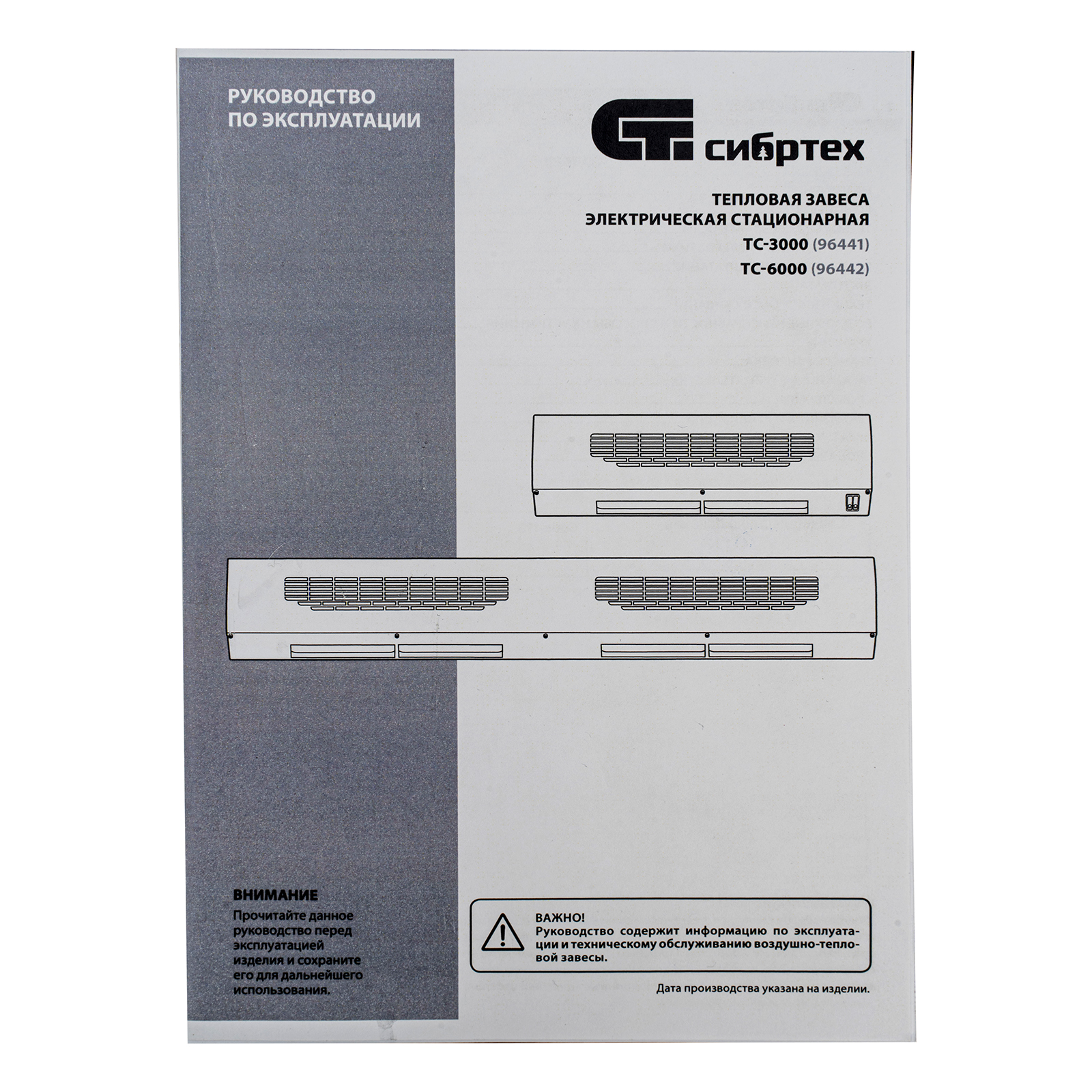 Электрическая тепловая завеса (тепловентилятор) Сибртех ТС-6000 96442 работает в 3 режимах: обдув без нагрева, обогрев на мощности 3000 и 6000 Вт. Создает узконаправленный воздушный поток, позволяющий разделить различные климатические зоны, например, отделить воздух в помещении от воздуха снаружи. Устанавливается над оконными или дверными проемами, расход воздуха составляет 600 м3/ч. Питается от сети 220 В, поэтому подходит для домашнего применения. Игольчатый нагревательный элемент (ститч) обеспечивает быстрый разогрев до заданной температуры. Рекомендуемая площадь обогрева составляет 60 м2.Преимущества3 режима работы — обдув без нагрева, 3 кВт и 6 кВт — позволяют использовать завесу для различных целей.Использование в любое время года — зимой тепловая завеса поможет справиться со сквозняками и защитит помещение от холодного воздуха, а летом сохранит прохладу в кондиционируемом помещении.Универсальность — тепловентилятор не только поддерживает комфортную температуру в помещении, но и предотвращает проникновение дыма, пыли и мелких насекомых.Длина 110 см — можно создать воздушную завесу по всей ширине дверного проема.Дистанционное управление — в комплект поставки входит пульт, позволяющий комфортно и точно выставлять желаемую температуру.Защита от перегрева — встроенный термодатчик предохраняет оборудование от поломок.Нейтральный стиль — завеса будет актуальна в любом интерьере.