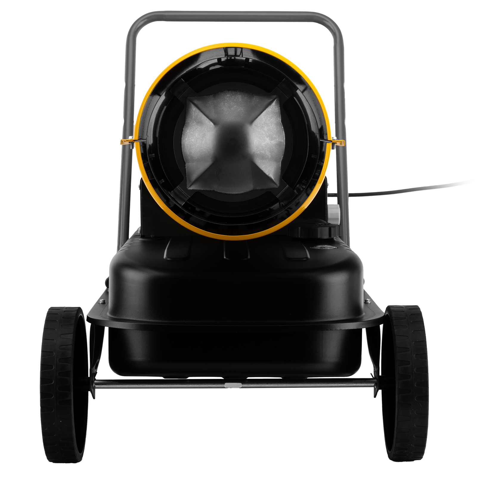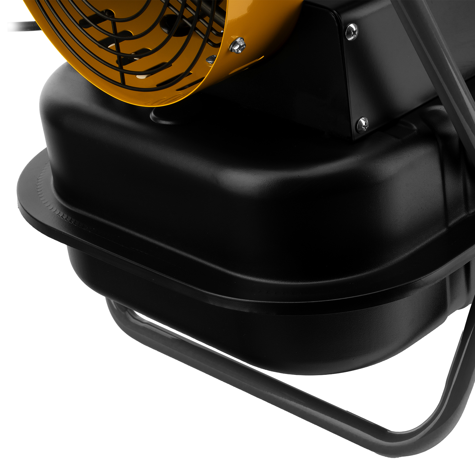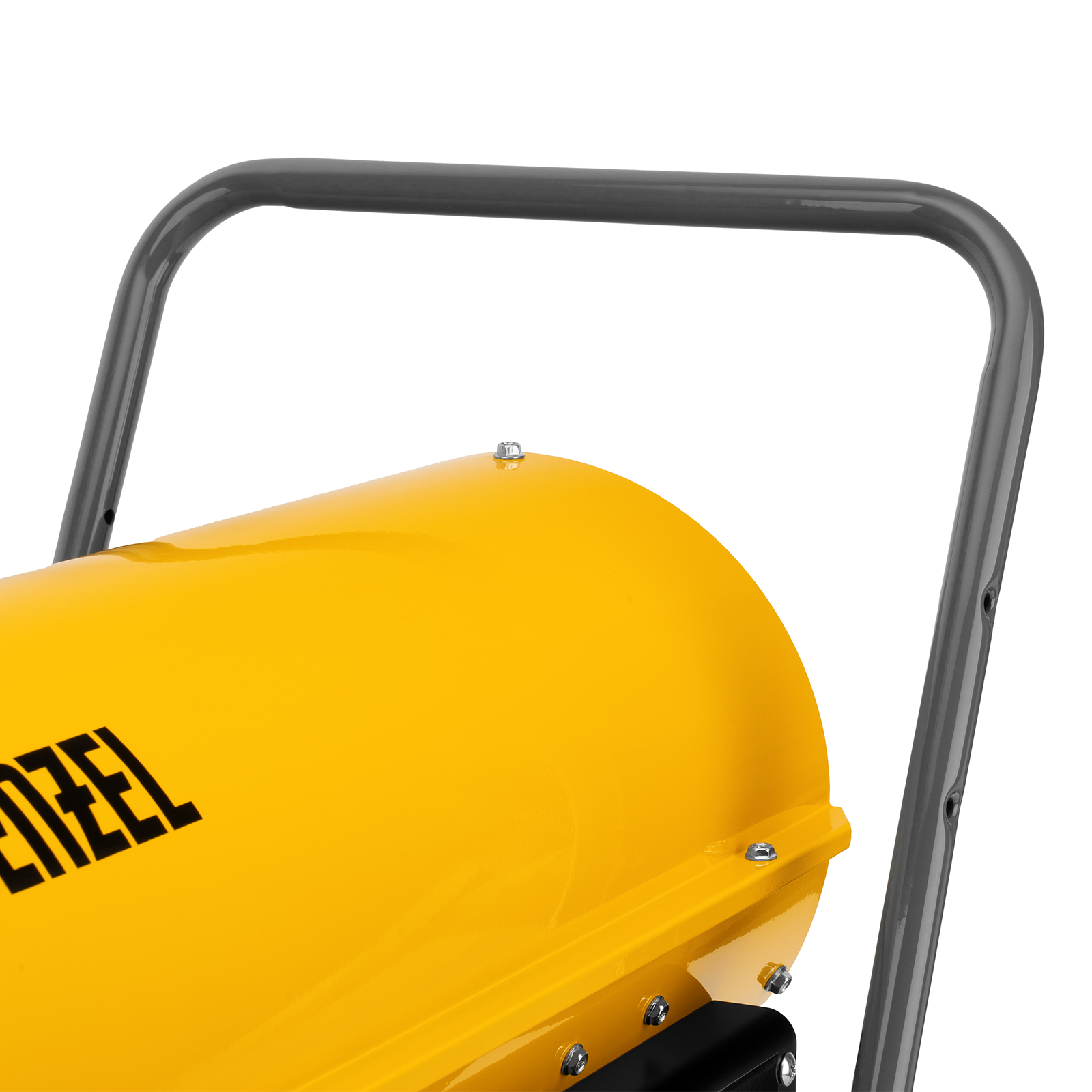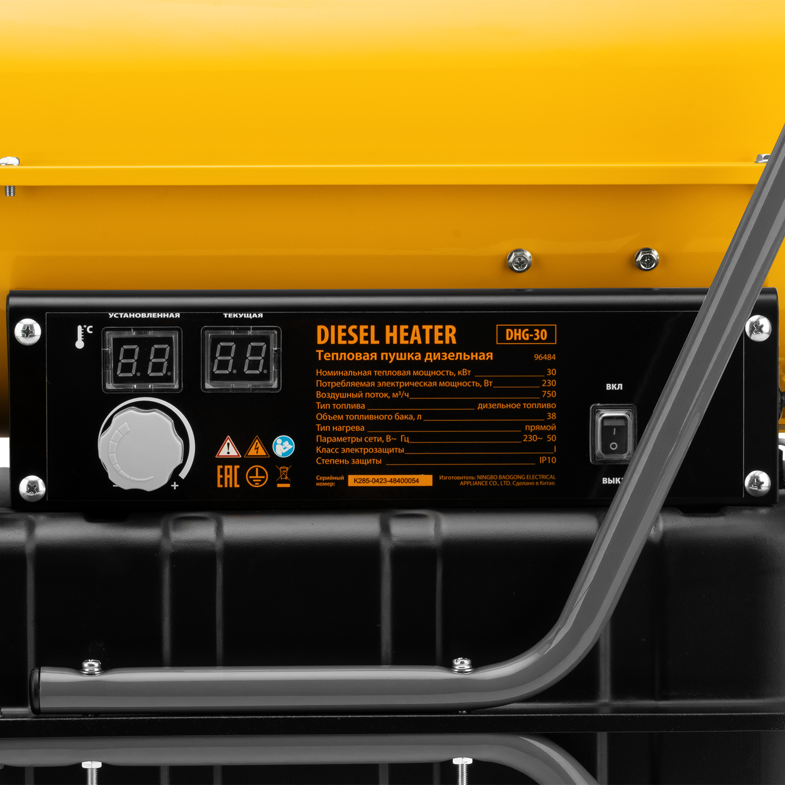 Дизельная тепловая пушка Denzel DHG-30 96484 мощностью 30 кВт и производительностью 750 куб. м/ч предназначена для прямого нагрева воздуха в цехах, ангарах, хранилищах и других нежилых помещениях с хорошей вентиляцией. Максимальная площадь обогрева составляет 300 кв. м. Пушка служит эффективным источником тепла в полярных экспедициях. Пригодится также на строительной площадке для прогрева бетона, просушки стен и разморозки траншей. Для заправки может использоваться любое дизельное топливо: летнее, зимнее и арктическое.ПреимуществаВстроенная система безопасности — подача топлива прекращается в случае затухания пламени, перегрева и отключения питания.Эффективность — благодаря системе прямого нагрева и теплоотражающему экрану воздух в помещении прогревается быстро и равномерно.Низкий расход топлива — продолжительность работы без дозаправки составляет 7 часов.Датчик уровня топлива — своевременная заправка бака позволяет избежать перерывы в работе.Защита от засорения — встроенный фильтр грубой очистки препятствует попаданию в топливную систему посторонних частиц.Продуманная конструкция — специальная опора обеспечивает устойчивость пушки во время работы.Удобство транспортировки — тепловая пушка оснащена ручкой и 2 колесами.Подтвержденное качество — на устройство действует гарантия 3 года.