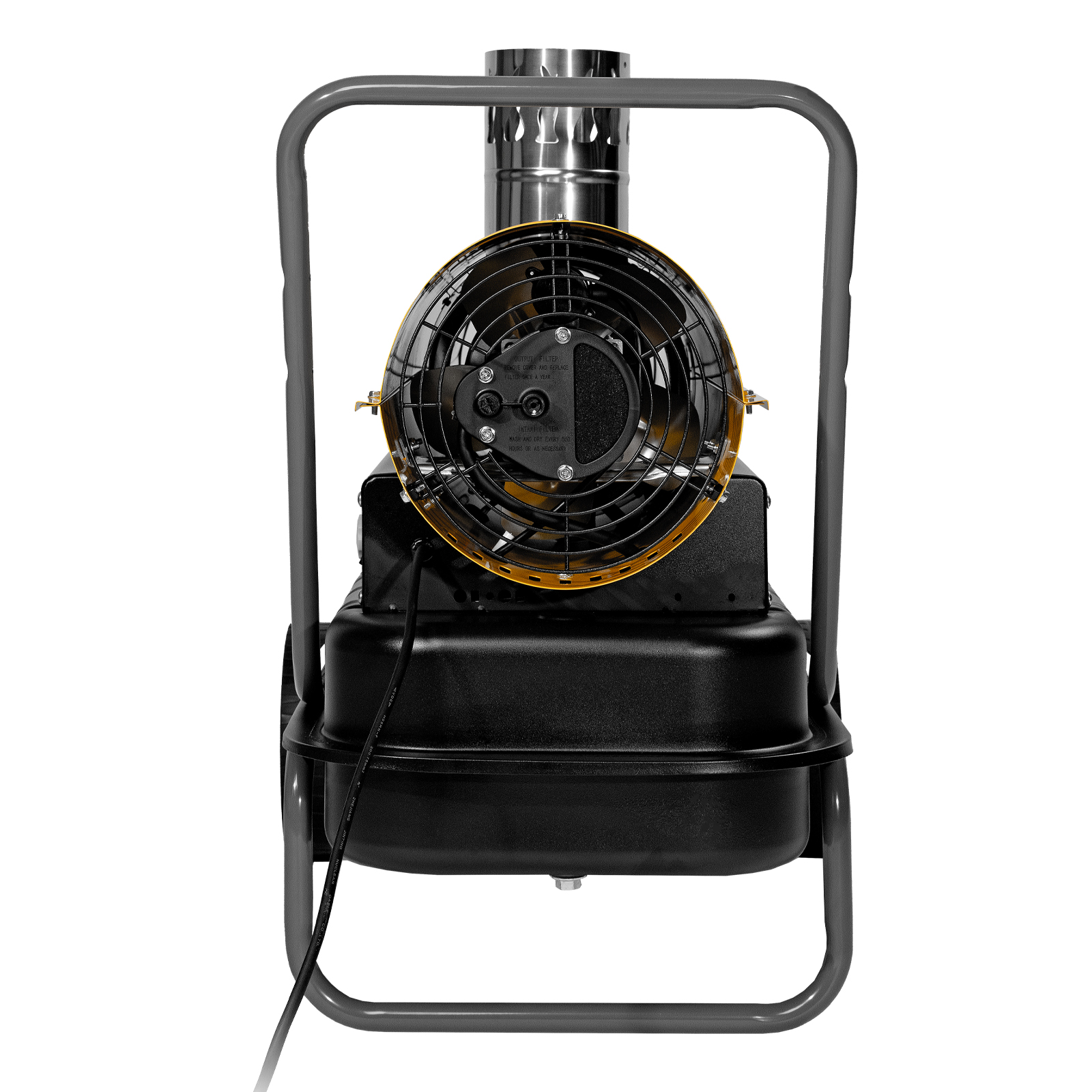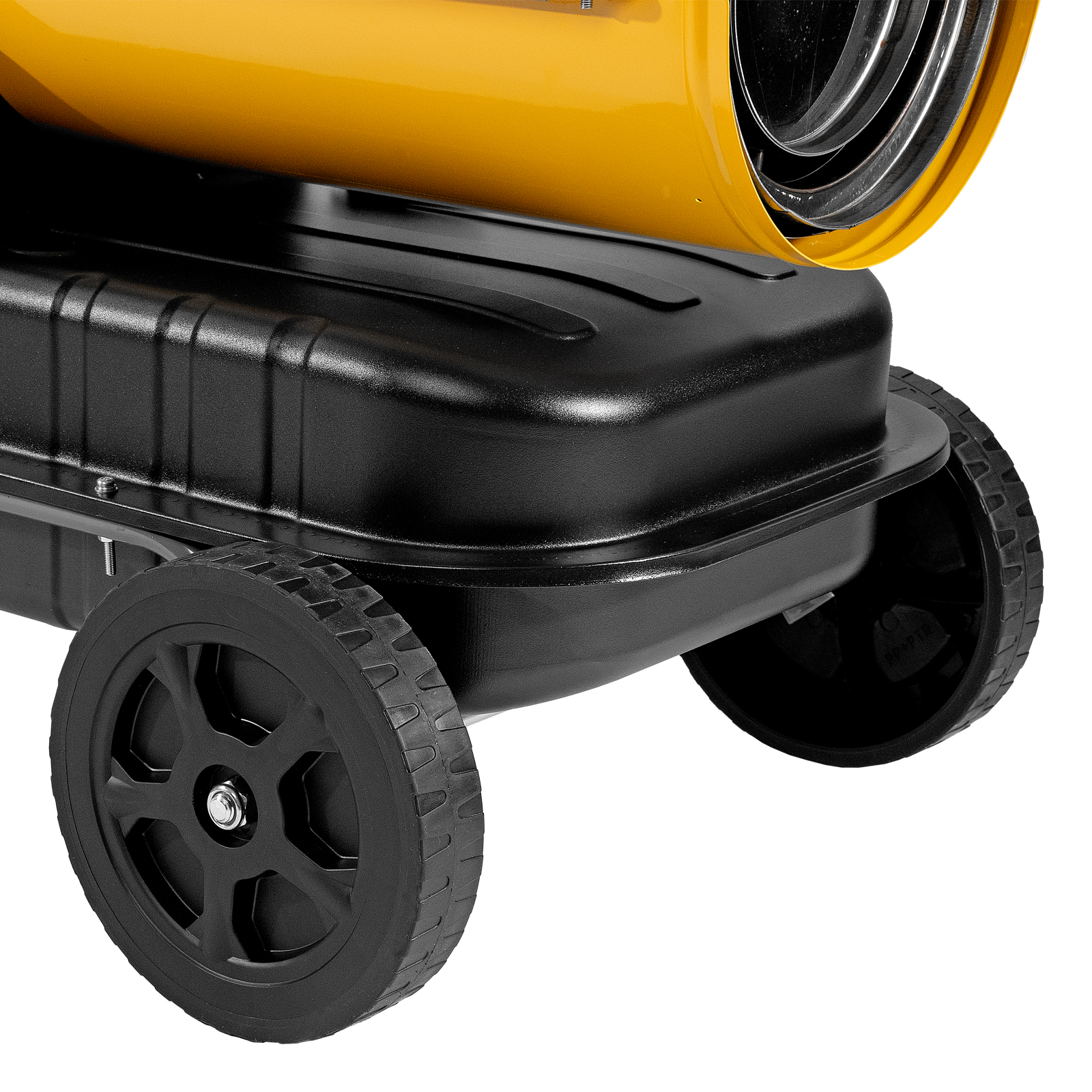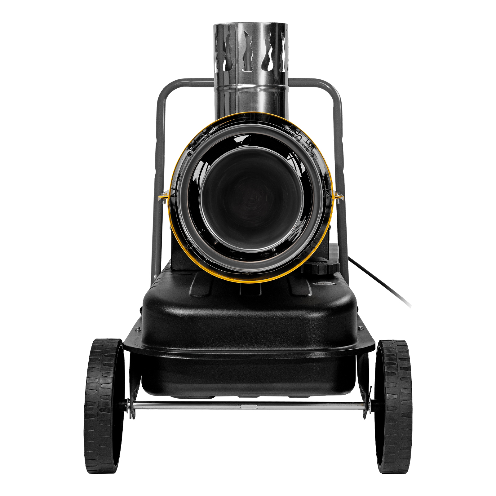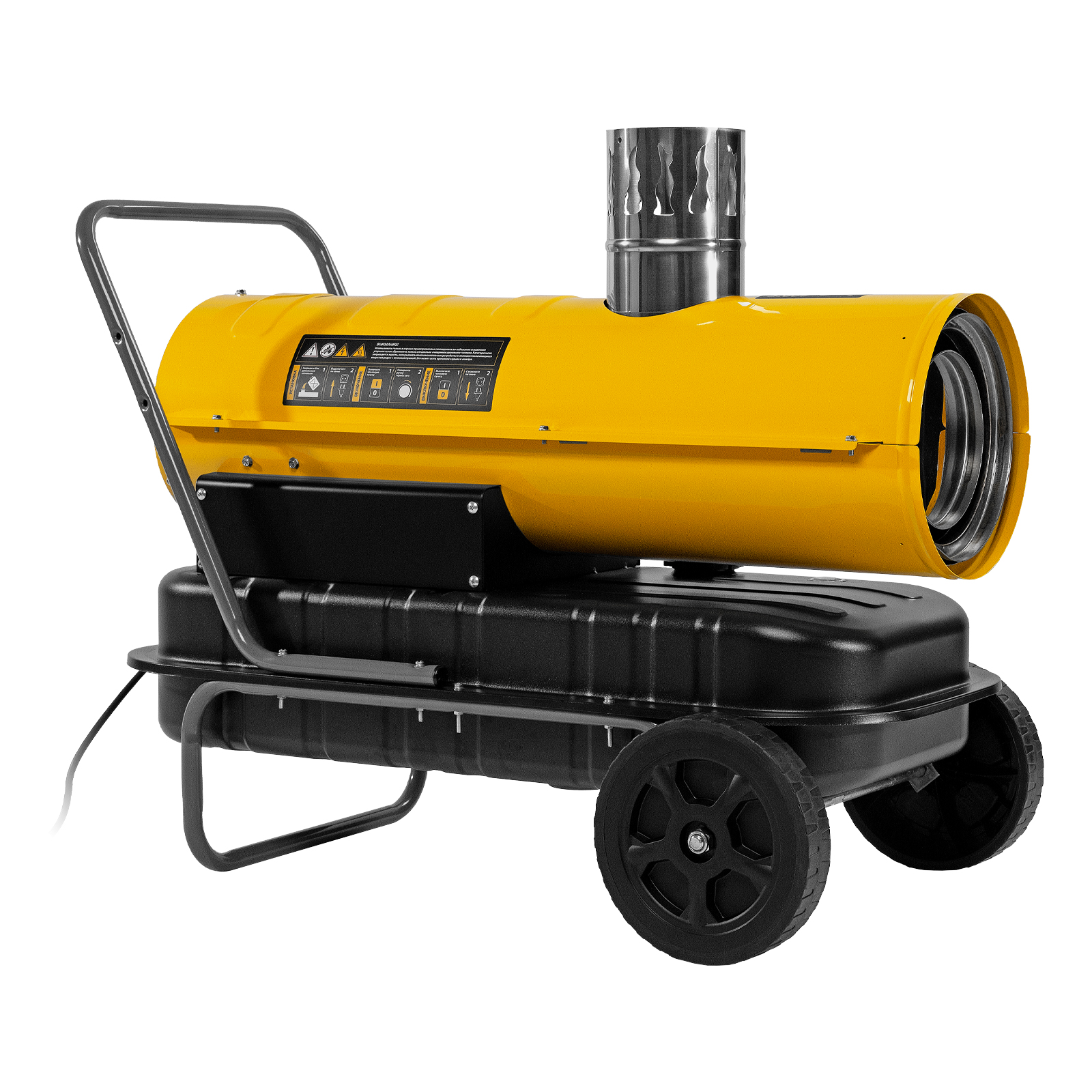 Дизельная тепловая пушка непрямого нагрева DENZEL NHG-20i 96491 с цифровым термостатом обладает тепловой мощностью 20 кВт и генерирует поток теплого воздуха 600 м3/ч. Предназначена для обогрева шатров, палаток, складов, а также технических помещений, ангаров, теплиц и строительных объектов. В работе пушки используется схема непрямого нагрева: при помощи отводного патрубка продукты горения можно полностью вывести за пределы помещения. Такое решение позволяет использовать устройство в присутствии людей. Преимущества Автономная работа — достаточно нажать на кнопку пуска, и автоматика включит подачу топлива и зажигание, по достижении заданной температуры пушка отключится. Контроль нагрева с точностью до 1 °C — цифровой термостат позволяет устанавливать требуемую температуру. Удобный контроль параметров работы — на дисплее можно увидеть значения заданной и текущей температуры воздуха в помещении. Термозащита — при перегреве срабатывает специальный датчик, и тепловая пушка отключается. Безопасная работа — встроенная система защиты прекращает подачу топлива в случае затухания пламени или отключения электропитания. Низкий расход топлива — полного бака хватит на 20 часов работы без дозаправки. Работа без непредвиденных остановок — топливный датчик подскажет, когда следует наполнить бак. Мобильность — благодаря колесам и удобной ручке вы можете легко и быстро перемещать пушку. Гарантия 3 года — высокое качество тепловой пушки подтверждено производителем.