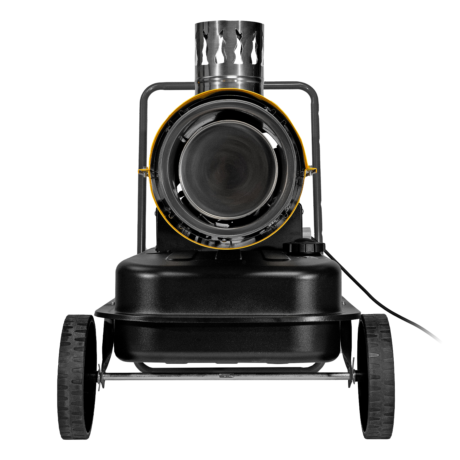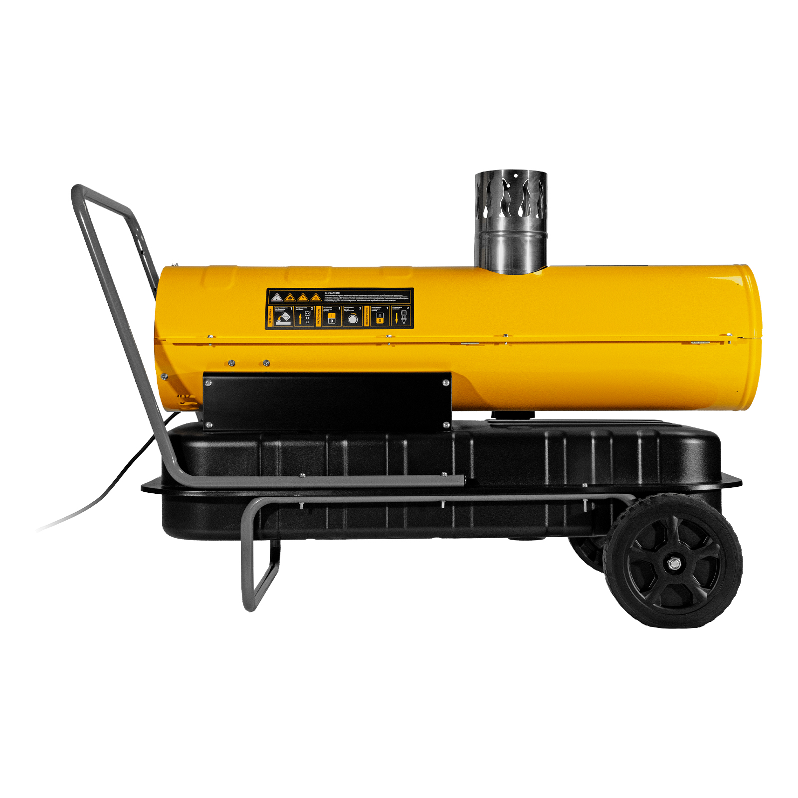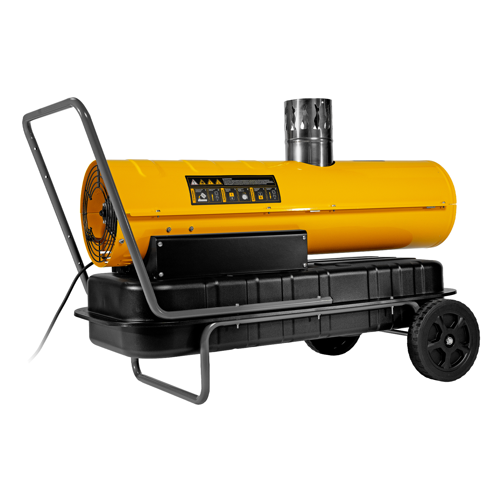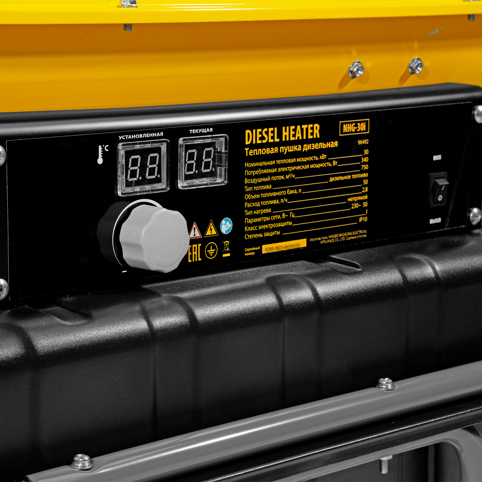 Дизельная тепловая пушка непрямого нагрева DENZEL NHG-30i 96492 с цифровым термостатом обладает тепловой мощностью 30 кВт и генерирует поток теплого воздуха 750 м3/ч. Предназначена для обогрева шатров, палаток, складов, а также технических помещений, ангаров, теплиц и строительных объектов. В работе пушки используется схема непрямого нагрева: при помощи отводного патрубка продукты горения можно полностью вывести за пределы помещения. Такое решение позволяет использовать устройство в присутствии людей. Преимущества Автономная работа — достаточно нажать на кнопку пуска, и автоматика включит подачу топлива и зажигание, по достижении заданной температуры пушка отключится. Контроль нагрева с точностью до 1 °C — цифровой термостат позволяет устанавливать требуемую температуру. Удобный контроль параметров работы — на дисплее можно увидеть значения заданной и текущей температуры воздуха в помещении. Термозащита — при перегреве срабатывает специальный датчик, и тепловая пушка отключается. Безопасная работа — встроенная система защиты прекращает подачу топлива в случае затухания пламени или отключения электропитания. Низкий расход топлива — полного бака хватит на 18 часов работы без дозаправки. Работа без непредвиденных остановок — топливный датчик подскажет, когда следует наполнить бак. Мобильность — благодаря колесам и удобной ручке вы можете легко и быстро перемещать пушку. Гарантия 3 года — высокое качество тепловой пушки подтверждено производителем.