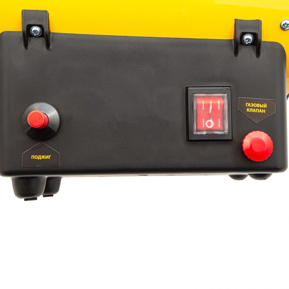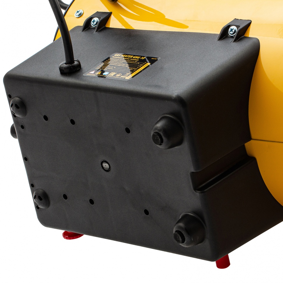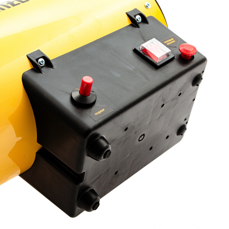 Газовая тепловая пушка Denzel GHG-15 96477 мощностью 15 кВт работает на смеси пропан-бутан и выдает тепловой поток со скоростью 500 куб. м/ч. Используется для обогрева складов, цехов, гаражей, теплиц и других нежилых помещений площадью до 150 кв. м. Будет полезна на строительных площадках и в производственных помещениях, а также для монтажа натяжных потолков.ПреимуществаПрочность и долговечность — передняя решетка изготовлена из нержавеющей стали, стальной корпус покрыт термостойкой краской для защиты от коррозии.Система безопасности — подача газа и электропитание будут отключены в случае перегрева или при отсутствии пламени.Быстрый старт — для запуска тепловой пушки предусмотрен пьезоподжиг.Экономичность — расход газа составляет 1,01 кг/ч, что позволяет реже менять баллон.Безопасность — выключатель питания закрыт влагозащитным кожухом, задняя решетка предотвращает попадание посторонних предметов и поломку оборудования.Устойчивость — благодаря широкой платформе пушка не опрокидывается во время работы.Готовность к работе — сетевая вилка, газовый шланг и редуктор входят в комплект поставки.Привлекательный внешний вид — выполненная в оригинальном дизайне пушка эффектно смотрится в помещении.Удобная транспортировка — пушка весит 3,8 кг, а на корпусе имеется эргономичная ручка.Гарантия 3 года — качество газовой тепловой пушки подтверждено производителем.