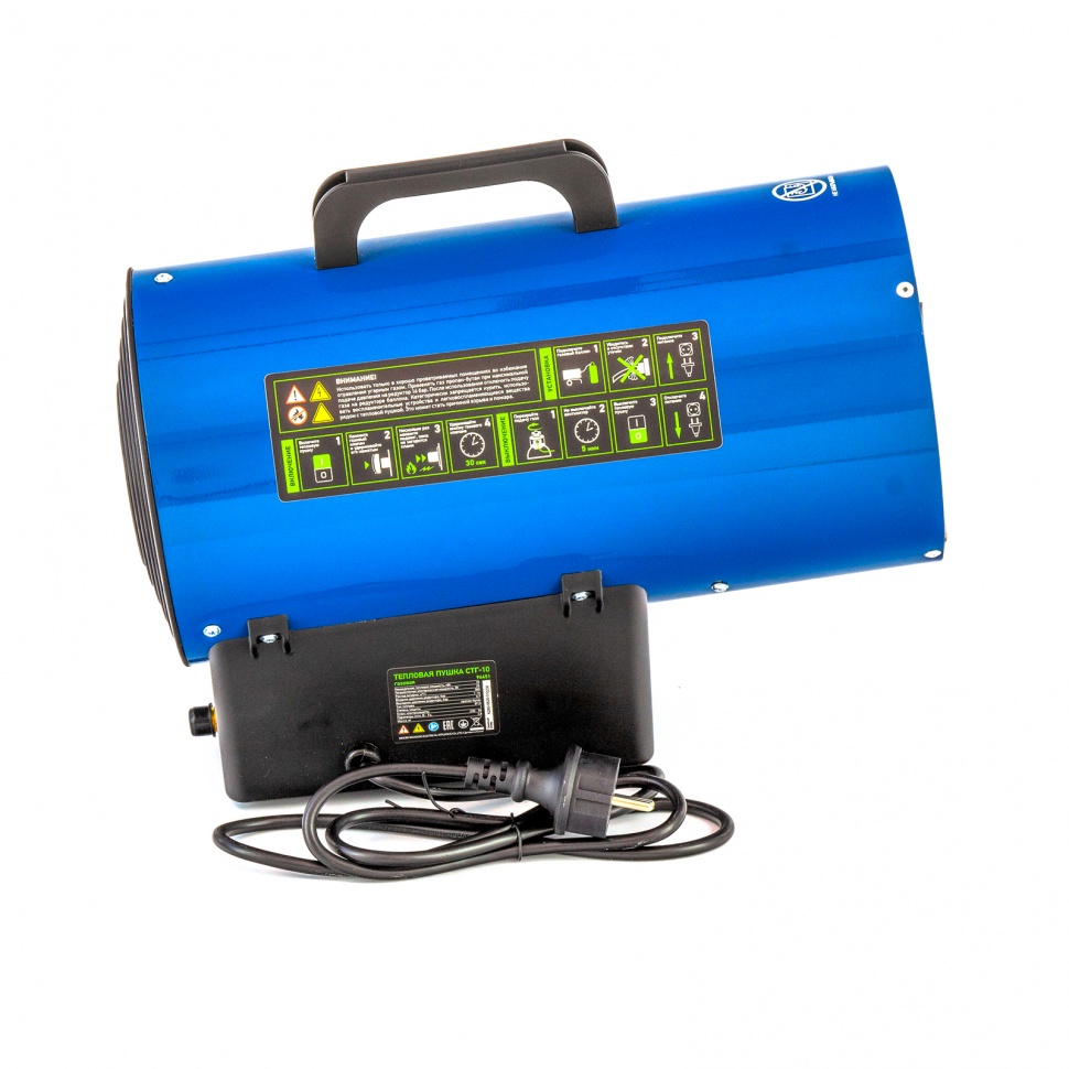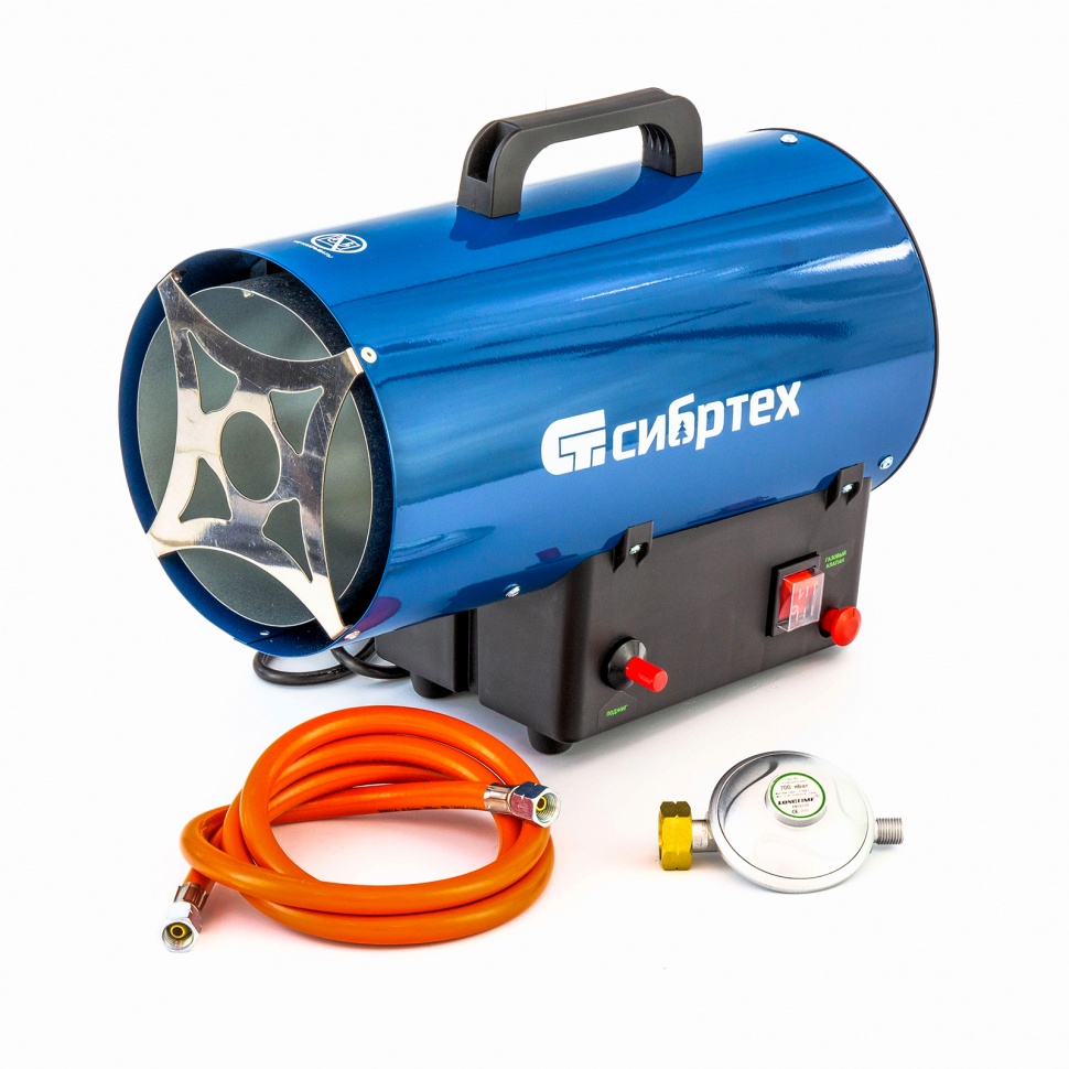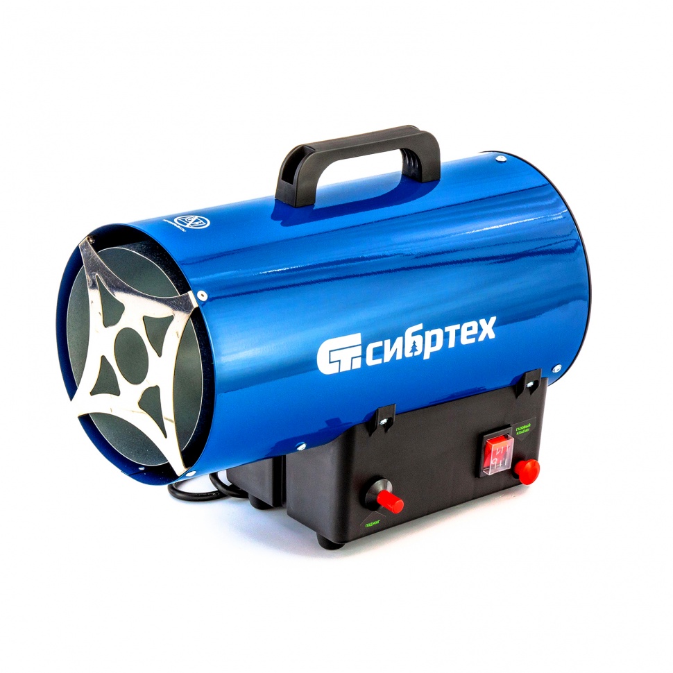 Тепловая пушка Сибртех СТГ-10, работающая на пропане или бутане, имеет тепловую мощность 10 кВт. Она подходит для эксплуатации в таких помещениях, как производственные цеха, склады, мастерские, гаражи, строящиеся объекты, теплицы, благодаря отсутствию выделения вредных для человека продуктов сгорания.Несмотря на компактность, тепловая пушка отличается высокой производительностью - расход воздуха составляет 300 м3/ч, при этом топливо потребляется очень экономично.ПреимуществаВ случае разогрева теплогенератора до порога максимальной безопасной температуры подача газа автоматически прерывается, что предотвращает развитие аварийной ситуации и возникновение пожара.Пьезоподжиг позволяет быстро и безопасно запустить теплогенератор.Корпус из прочной листовой стали окрашен термостойкой краской и устойчив к возникновению коррозии.Передняя решетка из нержавеющей стали рассчитана на долгий срок службы и не заржавеет со временем.Задняя решетка не допускает попадание посторонних предметов внутрь пушки, защищая ее от поломок.Выключатель электропитания закрыт защитным кожухом, который не допускает попадания пыли и влаги к внутренним частям.Газовый шланг с редуктором и сетевая вилка входят в комплект поставки. Это очень удобно, ведь не придется дополнительно покупать расходники.Ручка на верхней части корпуса и вес менее 5 кг делают удобной транспортировку пушки и ее погрузку в машину.Широкая платформа придает тепловой пушке устойчивость.Небольшие габариты (38 х 19 х 30,5 см) позволяют разместить пушку даже в ограниченном пространстве на период хранения.