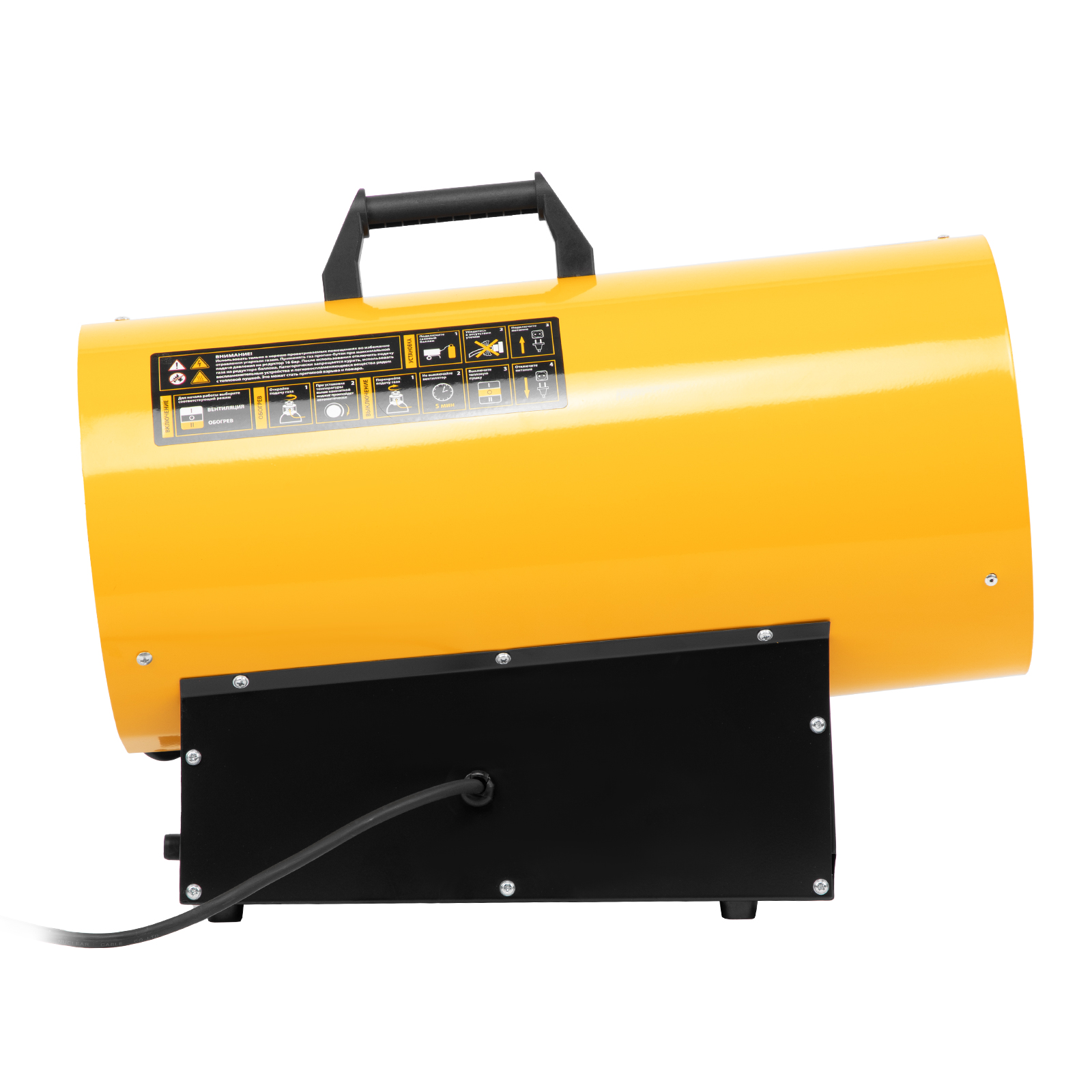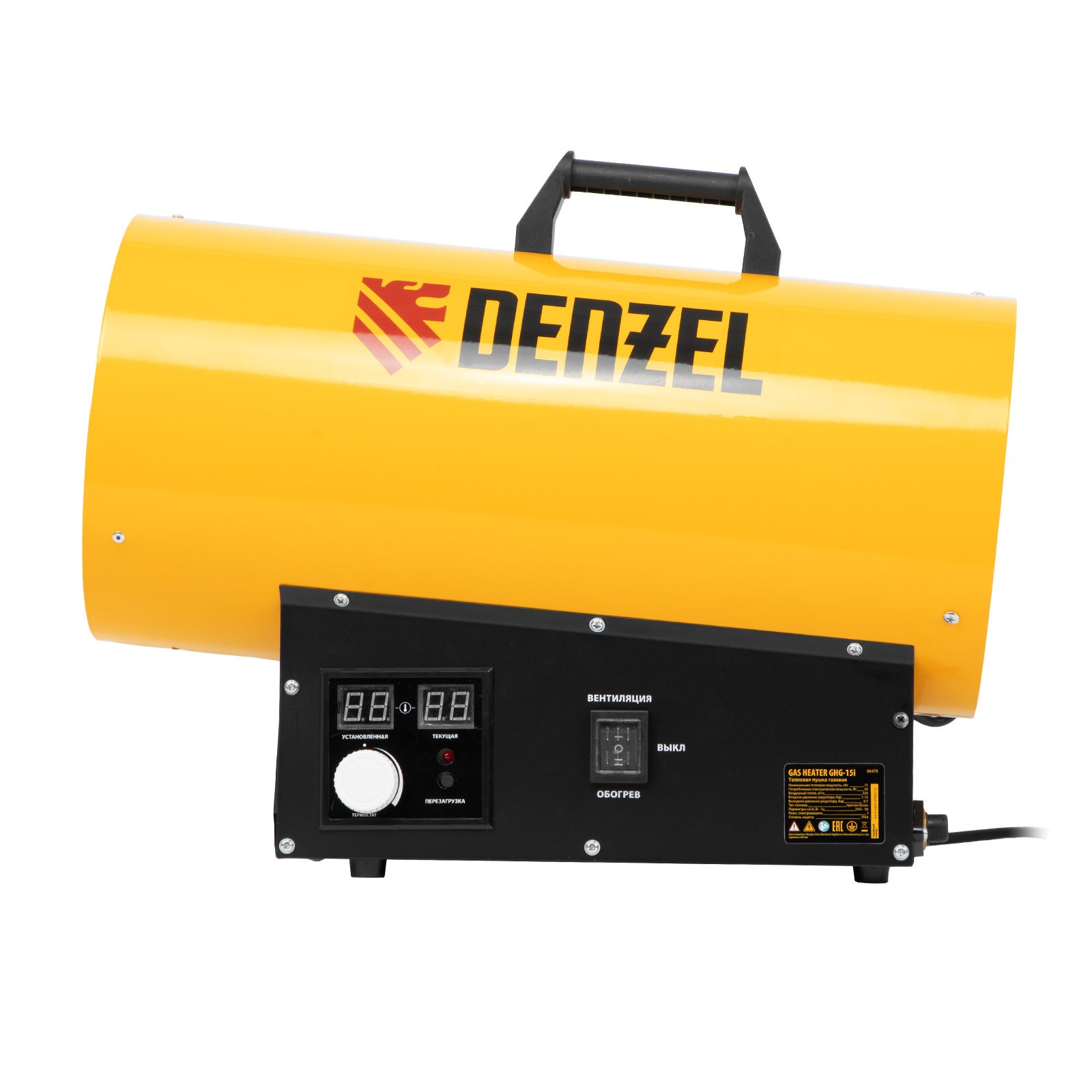 Газовая тепловая пушка Denzel GHG-15i 96478 мощностью 15 кВт, с цифровым термостатом и двойным электромагнитным клапаном, работает на сжиженном газе пропан-бутан и предназначена для обогрева хорошо вентилируемых нежилых помещений площадью до 150 кв. м: складов, цехов, гаражей, мастерских, теплиц. Генерирует воздушный поток 320 куб. м/ч, поэтому эффективно справляется с поставленными задачами. Используется на строительных и производственных объектах, для монтажа натяжных потолков.ПреимуществаЦифровой термостат — если температура в помещении становится ниже заданной, пушка включается автоматически для точного поддержания выставленных значений.Электронный поджиг — при выставлении температуры выше комнатного значения поджиг поисходит автоматически.2 режима работы — пушка может функционировать как вентилятор или обогреватель.Термозащита — пушка отключается при перегреве, что предотвращает ее поломку.Встроенная система безопасности — специальный датчик отключает подачу газа в случае затухания пламени.Удобный контроль рабочих параметров — на LED-дисплее отображается установленная температура и температура в помещении.Экономичность — расход газа составляет 0,93 кг/ч, поэтому часто менять баллон не требуется.Удобное перемещение — пушка весит 4,1 кг, в верхней части корпуса предусмотрена специальная ручка.Подтвержденное качество — на устройство действует гарантия 3 года.