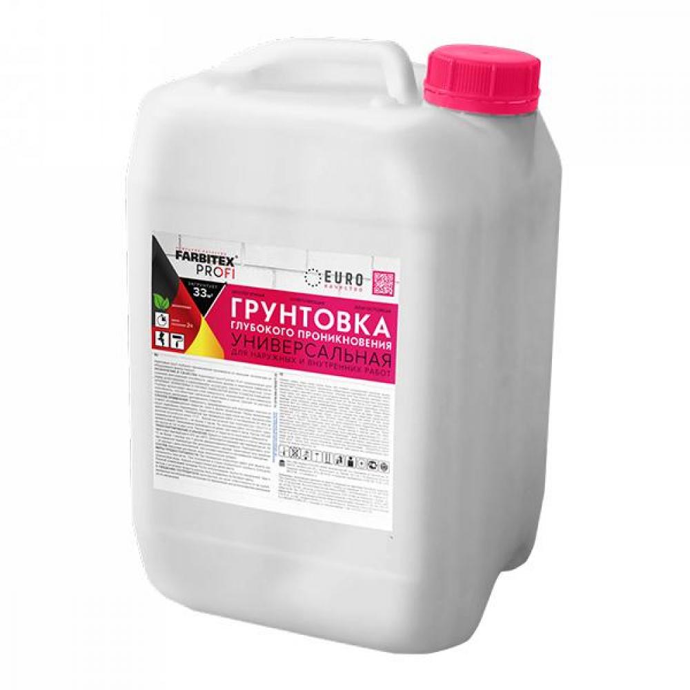 Грунтовка акриловая глубокого проникновения Farbitex PROFI Область применения: Предназначена для снижения впитывающей способности, увеличения адгезии и укрепления поверхности перед шпатлеванием и окрашиванием: штукатурок, кирпича, гипсокартона, сухих шпатлевок, алебастровых и гипсовых поверхностей внутри и снаружи помещений. Свойства: Глубоко пропитывает верхний слой поверхности, выравнивает ее впитывающую способность, что облегчает нанесение шпатлевки и краски, снижает их расход и значительно увеличивает долговечность покрытия. Расход: Расход 150-200 г грунтовки на 1 м2 в один слой. Время высыхания: Время высыхания при температуре 20+/-2°С и нормальной влажности не более – 2 часов. Гарантийный срок хранения: 24 месяца со дня изготовления.