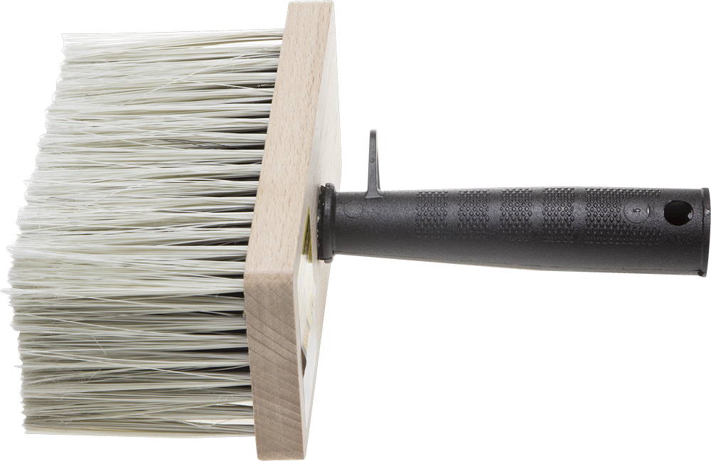 Отличное решение для работы со всеми типами ЛКМ, а так же грунтовки, побелки на большие поверхности, клеевых составов на обои, размывки потолков. Щетина кисти надежно закреплена в деревянной основе, а наличие удобной пластмассовой рукоятки обеспечит комфортную работу