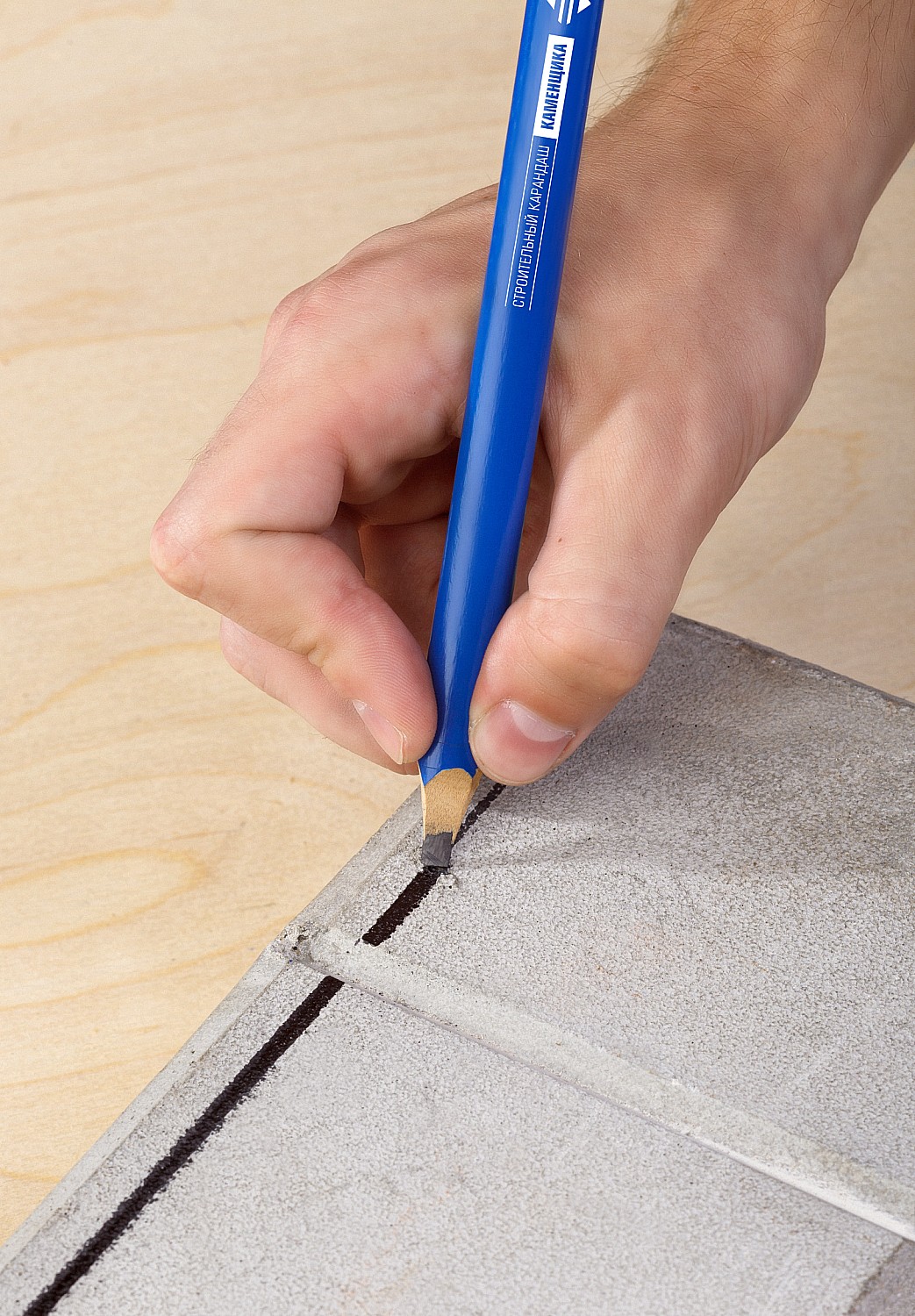 Строительный карандаш каменщика имеет овальную форму, что позволяет ему не скатываться с наклонных поверхностей.