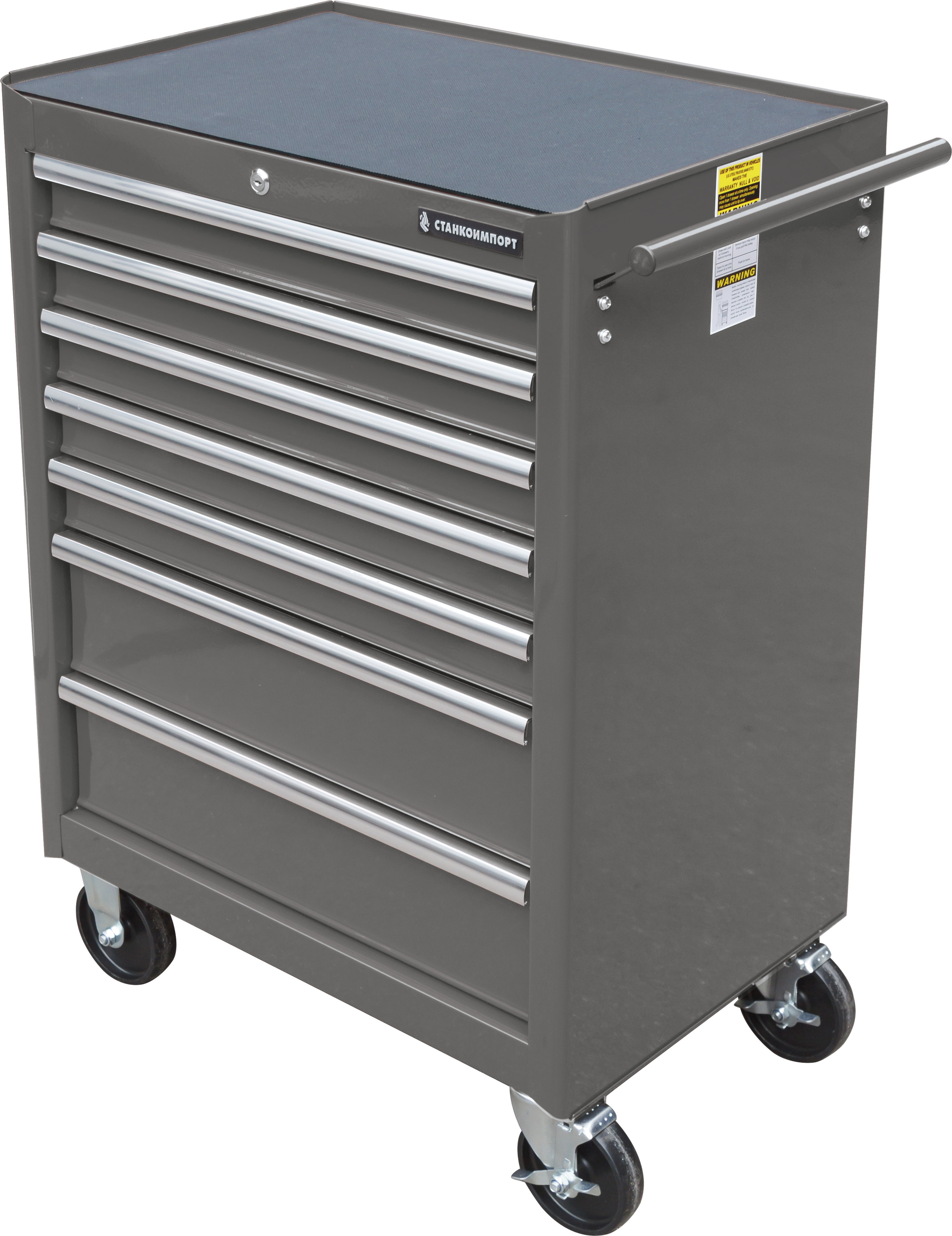Ящики имеют центральный замок, который позволяет ограничить доступ посторонних лиц к содержимому ящиков. Усиленные шариковые направляющие с автовозвратом позволяют выдерживать нагрузку в 30 кг на ящик и предотвращают открывание при перемещении тележки. В каждый ящик вложена подложка из материала EVA толщиной 2,5 мм, которая предотвращает скольжение ложемента с инструментом в ящике при открытии ящика или перемещении тележки. Ящики имеют аллюминиевую рукоятку для более удобного открывания.