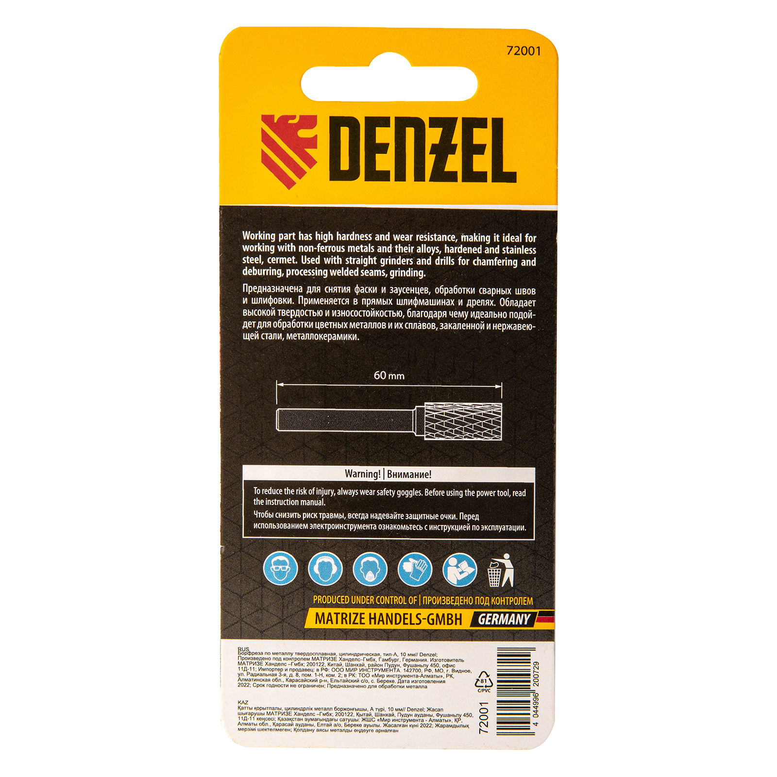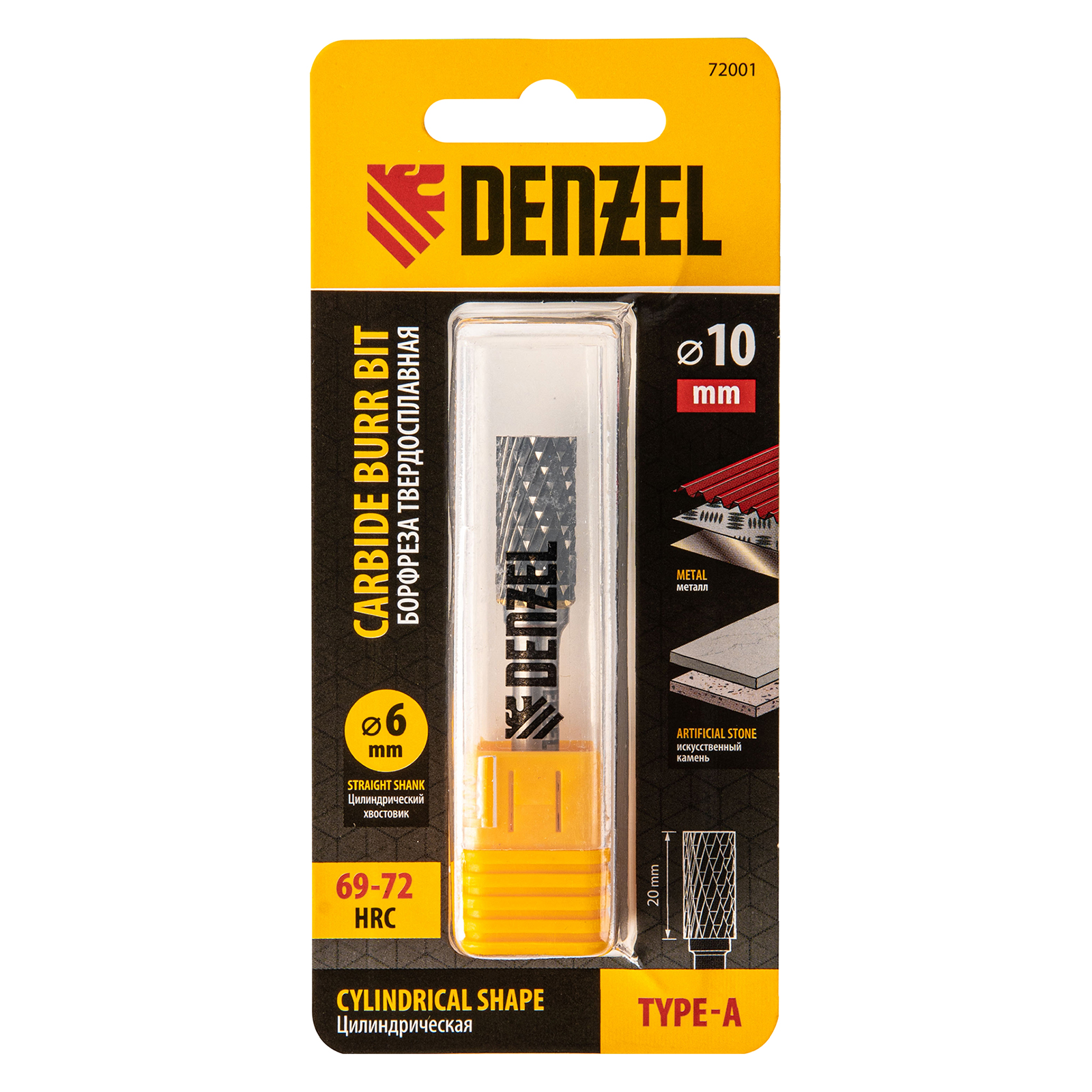 Твердосплавная борфреза Denzel 72001 с цилиндрической рабочей частью (тип A), диаметром 10 мм, используется для работ по металлу (закаленной и нержавеющей стали, латуни, меди, бронзе, чугуну, титану). Подходит также для обработки искусственного камня и металлокерамики. Предназначена для завершающей обработки и подгонки форм и поверхностей: шлифовки, зачистки сварных швов, удаления заусенцев, снятия фасок, разделки кромок. Оснастка устанавливается на прямошлифовальную машину или дрель.ПреимуществаЭффективная работа с особо прочными материалами — рабочая часть изготовлена из сплава ВК8 твердостью 69-72 HRC.Высокая производительность — специальные перекрестные насечки-стружколомы обеспечивают эффективное удаление продуктов обработки.Универсальность — цилиндрический хвостовик диаметром 6 мм совместим с большинством патронов инструментов.Удобное хранение и транспортировка — борфреза поставляется в практичном пластиковом кейсе.