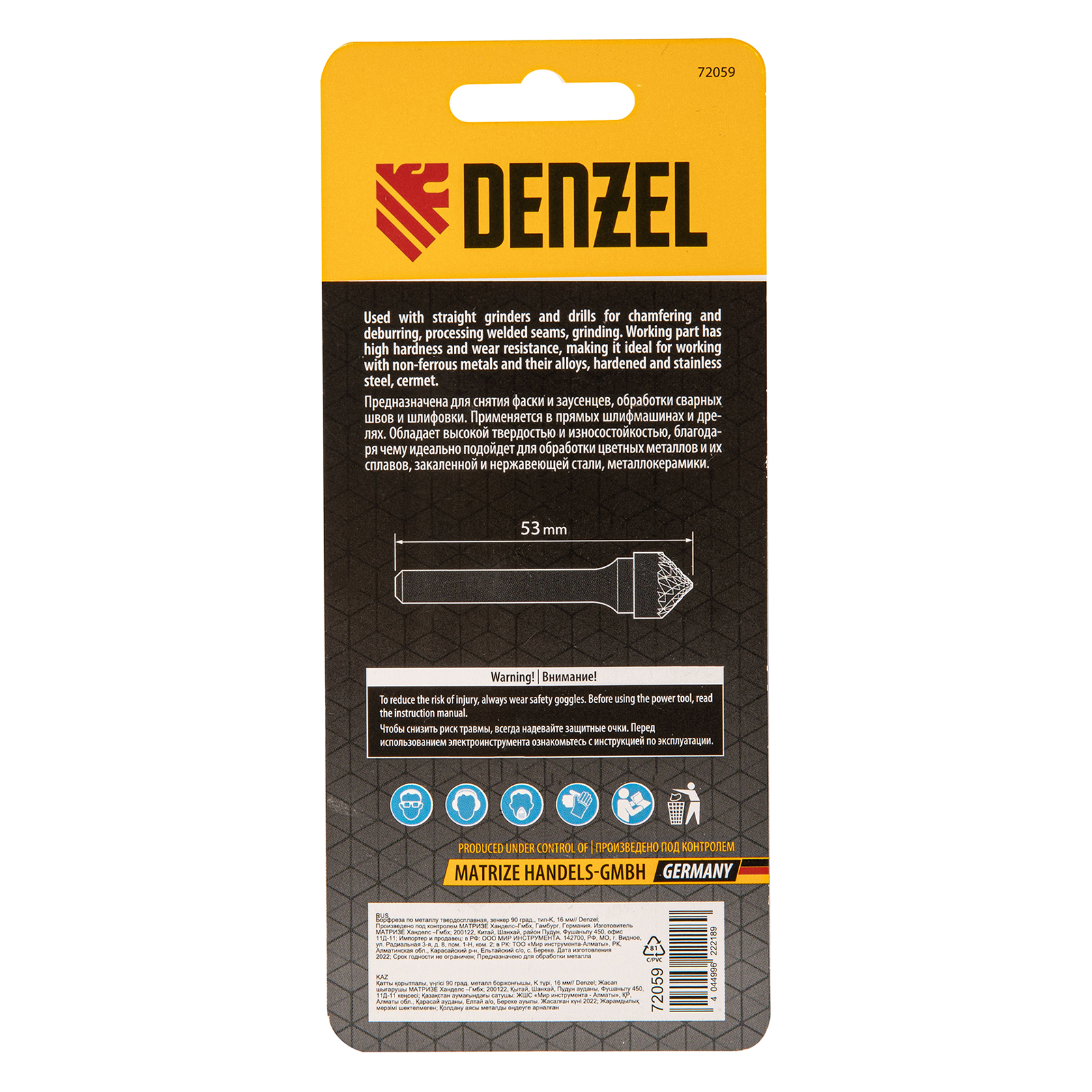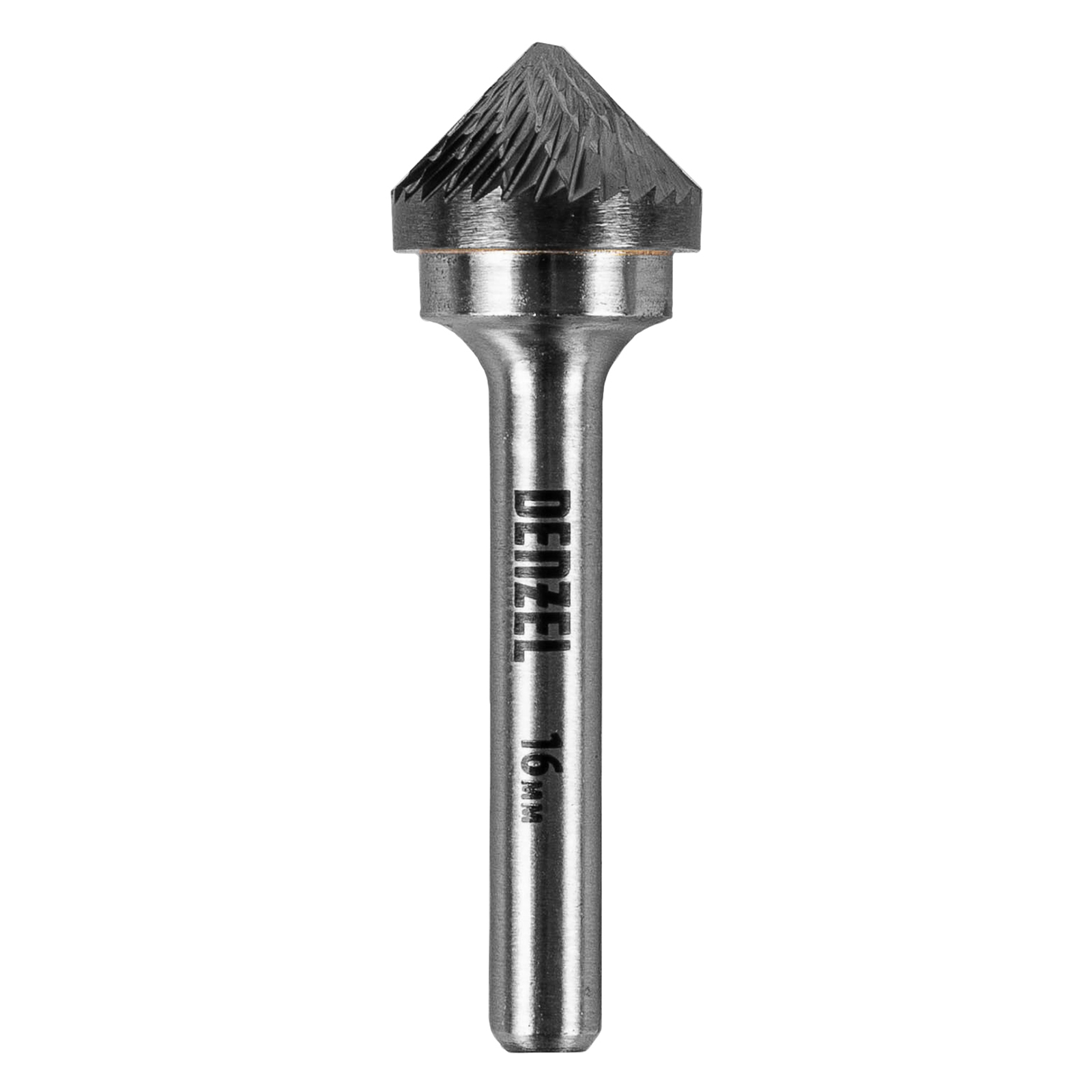 Твердосплавная борфреза по металлу Denzel 72059 с рабочей частью-зенкером с вершиной 90° (тип K), диаметром 16 мм, устанавливается на дрель или прямошлифовальную машину. Используется для обработки закаленной и нержавеющей стали, латуни, бронзы, меди, чугуна, титана, а также металлокерамики и искусственного камня. Оптимальна для снятия фасок и заусенцев, обработки кромок, угловых пазов, краев отверстий.ПреимуществаЭффективная работа с особо прочными материалами — рабочая часть изготовлена из сплава ВК8 твердостью 69-72 HRC.Высокая производительность — специальные перекрестные насечки-стружколомы обеспечивают эффективное удаление продуктов обработки.Универсальность — цилиндрический хвостовик диаметром 6 мм совместим с большинством патронов инструментов.Удобное хранение и транспортировка — борфреза поставляется в практичном пластиковом кейсе.