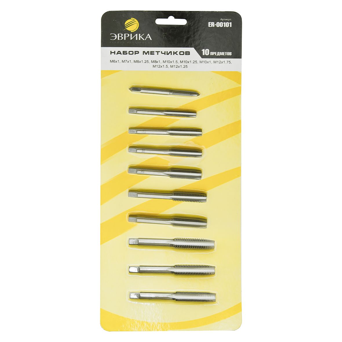 Набор метрических метчиков ЭВРИКА ER-00101 охватывает несколько типовых размеров для метрической резьбы и подойдет для автомастерских или слесарных цехов.