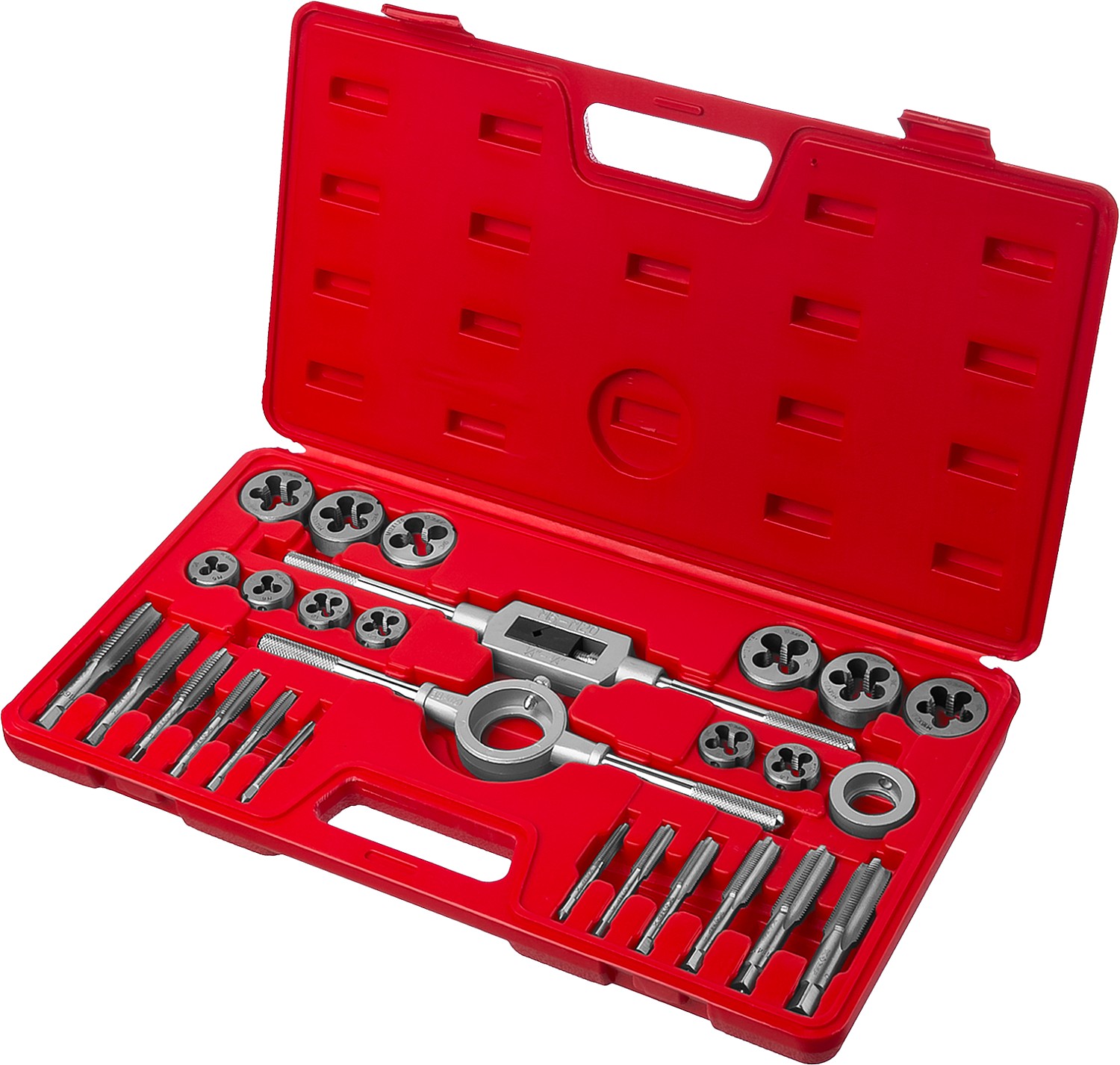Набор предназначен для резьбонарезных работ в конструкциях и заготовках из сталей и цветных металлов. Метчики ручные однопроходные используются для нарезания внутренней метрической резьбы с нормальным шагом в глухих и сквозных отверстиях. Плашки предназначены для нарезания внешней метрической резьбы с нормальным шагом. Метчикодержатель предназначен для надежного закрепления метчиков Плашкодержатель используется для закрепления плашек при проведении резьбонарезных работ