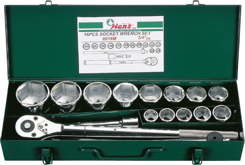 Набор 6616M 6-гранные торцевые головки с аксессуарами 3/4'', 16 предметов: