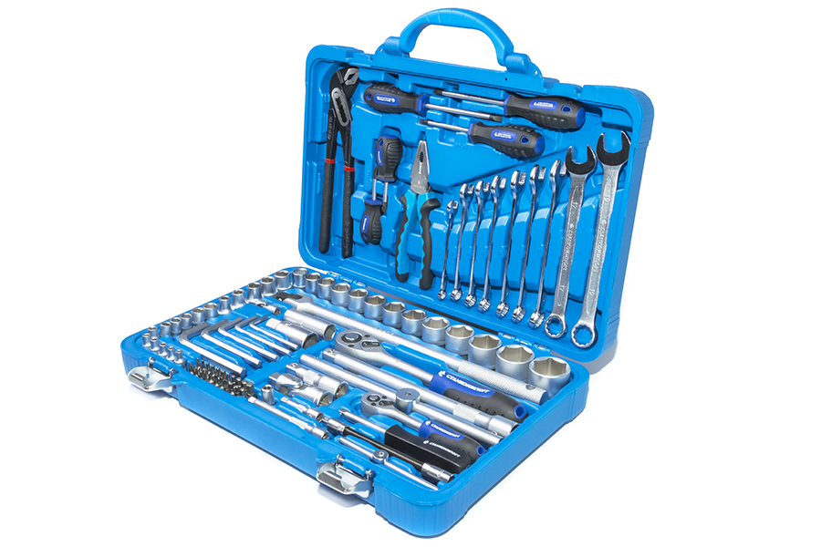В наборе собраны инструменты общего назначения, необходимые для работы в гараже и быту.