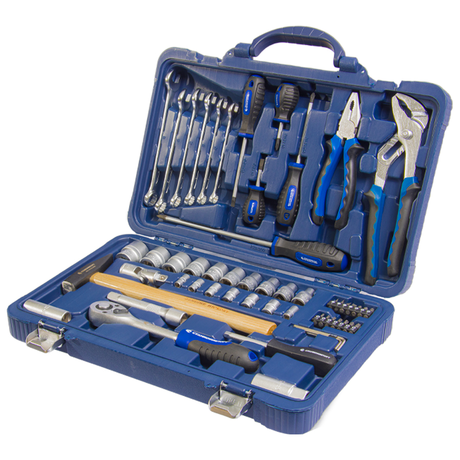 В наборе собраны инструменты общего назначения, необходимые для работы в гараже и быту.