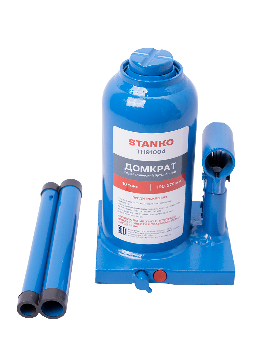Домкрат бутылочный грузоподъемностью до 10 тонн используется при ремонте и техническом обслуживании транспортных средств, для поднятия тяжестей при строительстве или ремонтных работах.