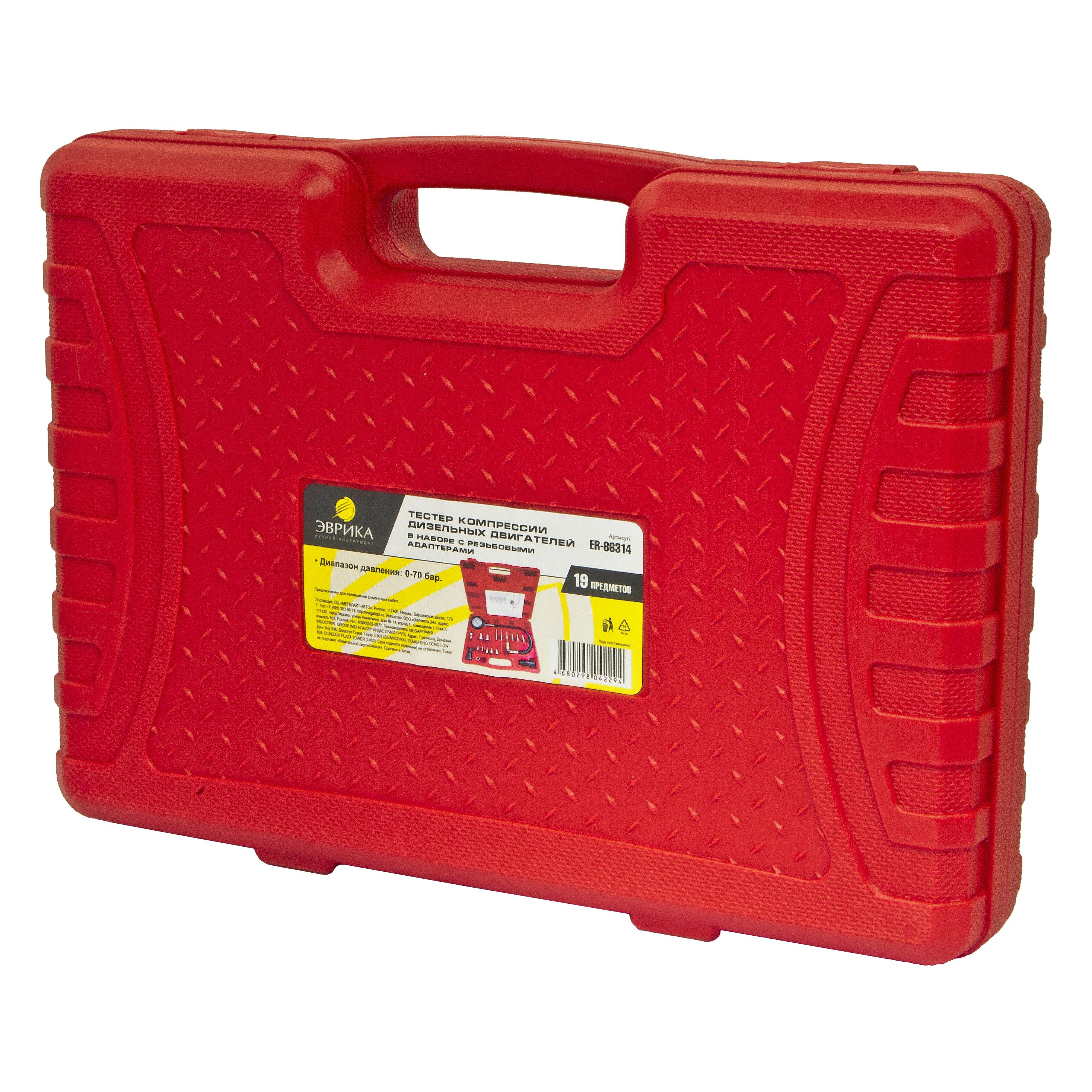 Тестер компрессии дизельного двигателя ER-86314 в наборе с резьбовыми адаптерами, 19пр.