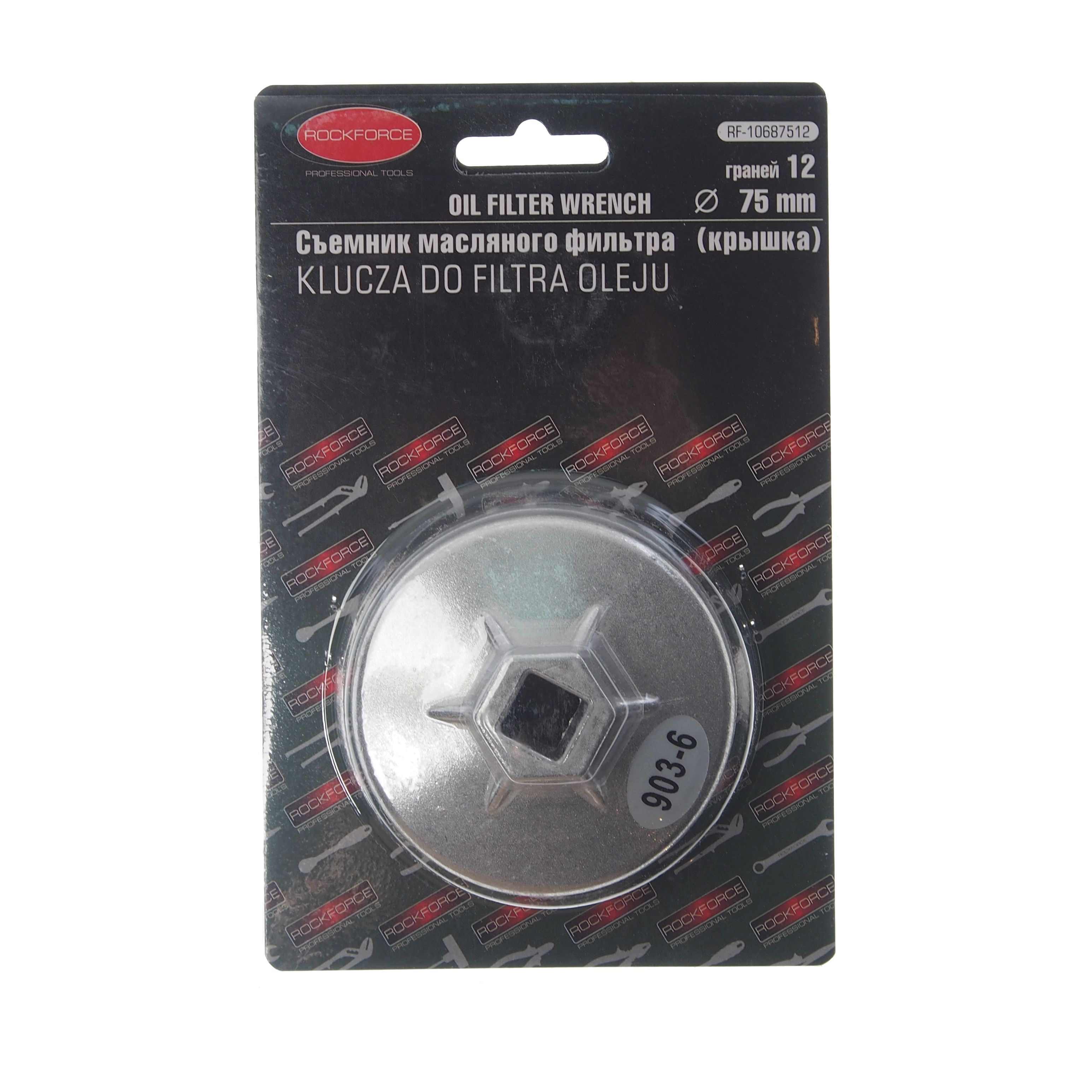 Съемник RockForce масляного фильтра «крышка» 75мм х двенадцатигранные , Для разборки отдельных сложных узлов и агрегатов автомобиля зачастую кроме набора ручного инструмента, требуются специальные приспособления. Так, например, для демонтажа подшипников, шестеренок, дисков, шкивов, колес с валов и осей применяются автомобильные съемники различной конфигурации.