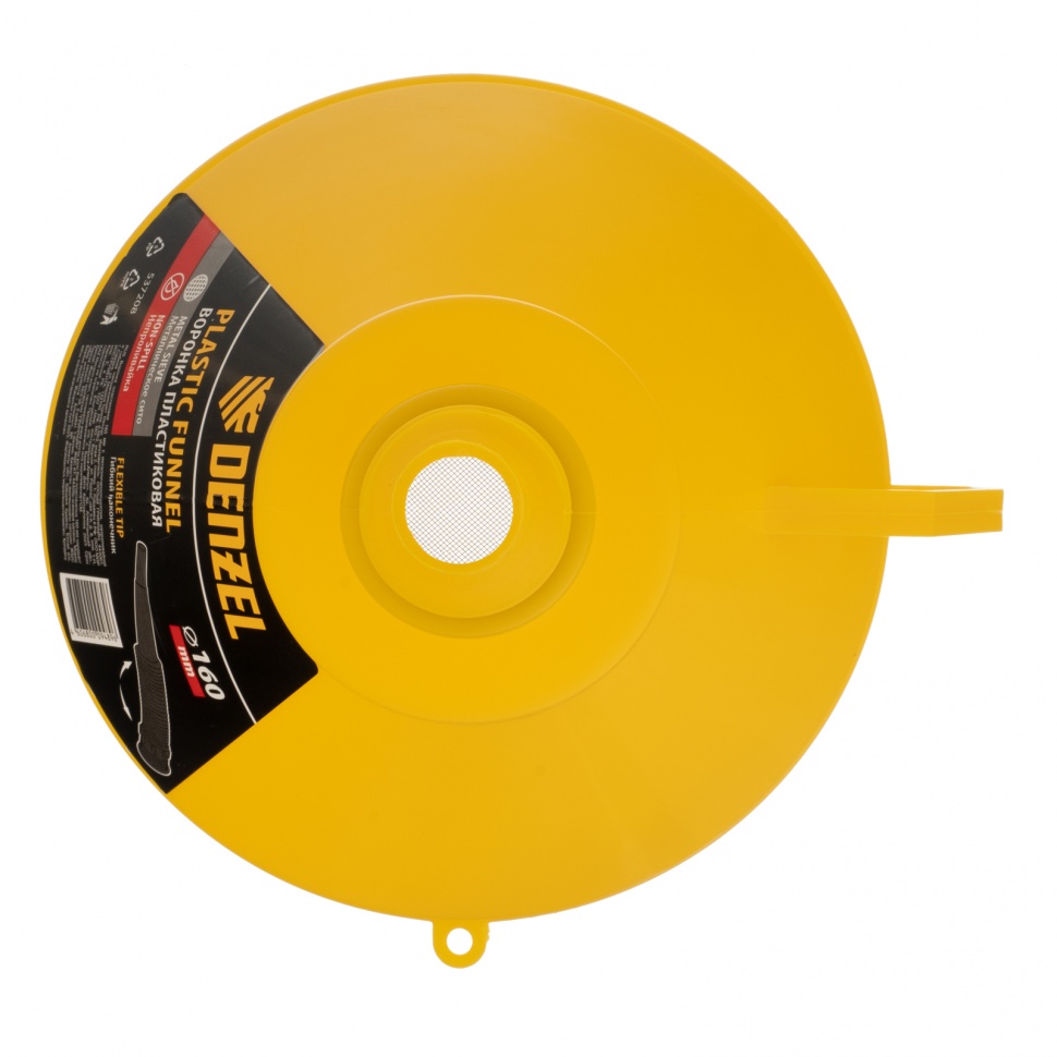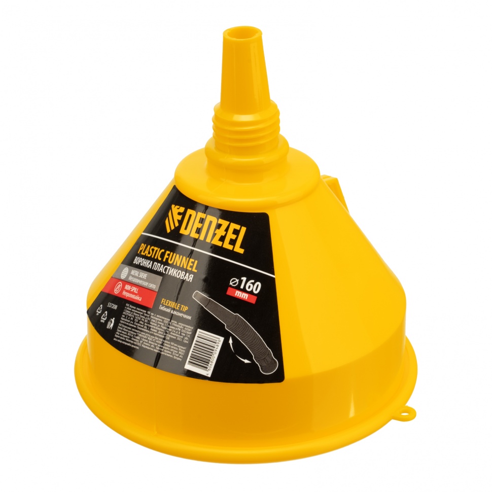 Пластиковая воронка Denzel 537208 диаметром 160 мм, с металлическим сетчатым фильтром, «непроливайкой» и гибким наконечником, позволяет переливать топливо, антифриз, масло и другие горюче-смазочные материалы. Будет полезна автовладельцам: с ее помощью процедура происходит гораздо быстрее и без риска испачкаться. Воронка выполнена из маслобензостойкого материала.ПреимуществаОчистка переливаемых жидкостей — встроенный сетчатый фильтр из металла предотвращает попадание посторонних примесей.Удобное переливание жидкостей в труднодоступных местах — воронка имеет гибкий наконечник.Аккуратное переливание — «непроливайка» предотвращает разбрызгивание жидкости.Разборная конструкция — изделие можно использовать в различных ситуациях.Комфортное использование — воронку можно придерживать за ручку, чтобы жидкость не пролилась.