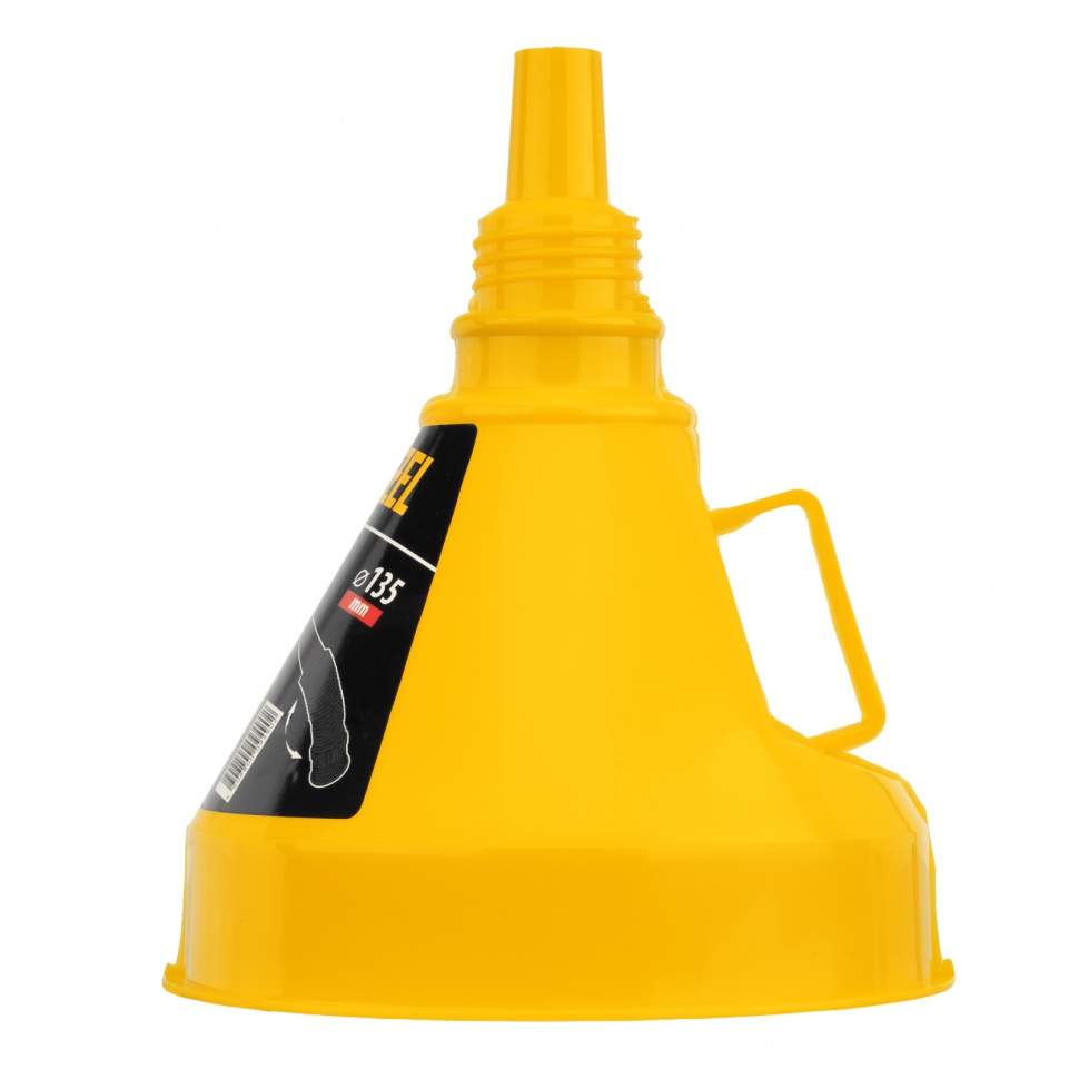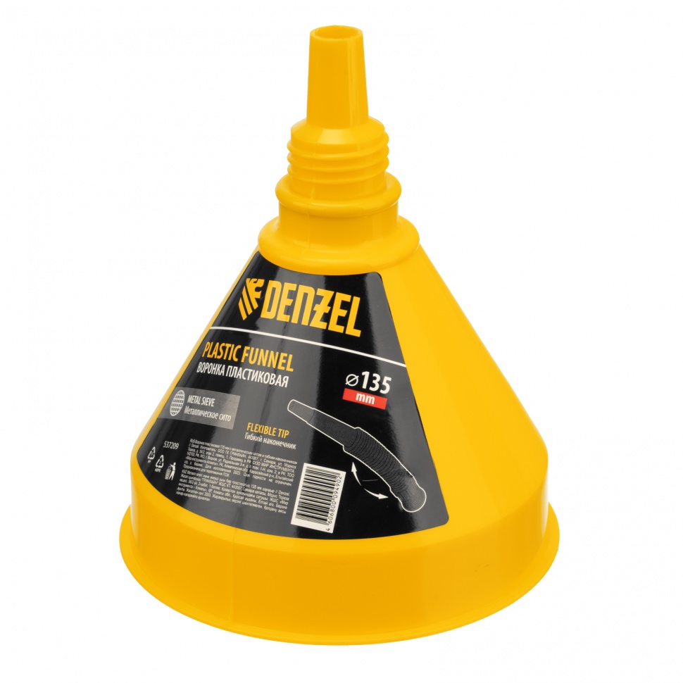 Пластиковая воронка Denzel 537209 диаметром 135 мм, с металлическим сетчатым фильтром и гибким наконечником, позволяет переливать топливо, антифриз, масло и другие горюче-смазочные материалы. Будет полезна автовладельцам: с ее помощью процедура происходит гораздо быстрее и без риска испачкаться. Воронка выполнена из маслобензостойкого материала.ПреимуществаОчистка переливаемых жидкостей — встроенный сетчатый фильтр из металла предотвращает попадание посторонних примесей.Удобное переливание жидкостей в труднодоступных местах — воронка имеет гибкий наконечник.Разборная конструкция — изделие можно использовать в различных ситуациях.Комфортное использование — воронку можно придерживать за ручку, чтобы жидкость не пролилась.