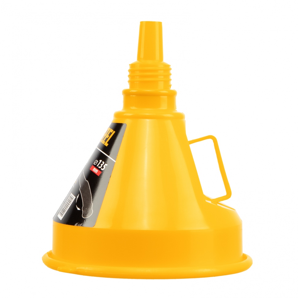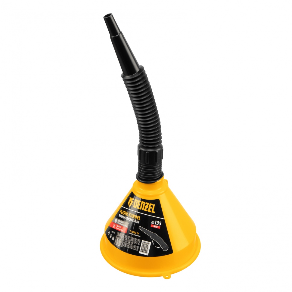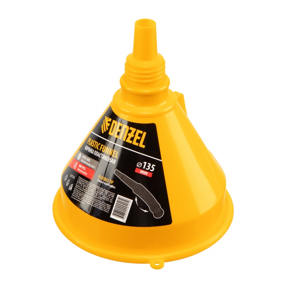 Пластиковая воронка Denzel 537210 диаметром 135 мм, с металлическим сетчатым фильтром, «непроливайкой» и гибким наконечником, позволяет переливать топливо, антифриз, масло и другие горюче-смазочные материалы. Будет полезна автовладельцам: с ее помощью процедура происходит гораздо быстрее и без риска испачкаться. Воронка выполнена из маслобензостойкого материала.ПреимуществаОчистка переливаемых жидкостей — встроенный сетчатый фильтр из металла предотвращает попадание посторонних примесей.Удобное переливание жидкостей в труднодоступных местах — воронка имеет гибкий наконечник.Аккуратное переливание — «непроливайка» предотвращает разбрызгивание жидкости.Разборная конструкция — изделие можно использовать в различных ситуациях.Комфортное использование — воронку можно придерживать за ручку, чтобы жидкость не пролилась.