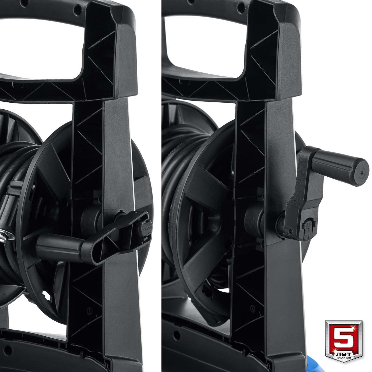- Шланг длиной 8 м позволяет производить обработку без необходимости перемещать мойку