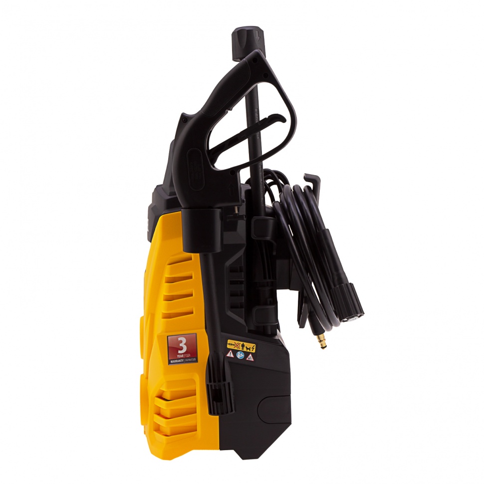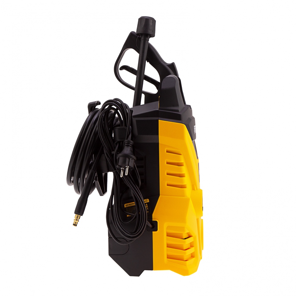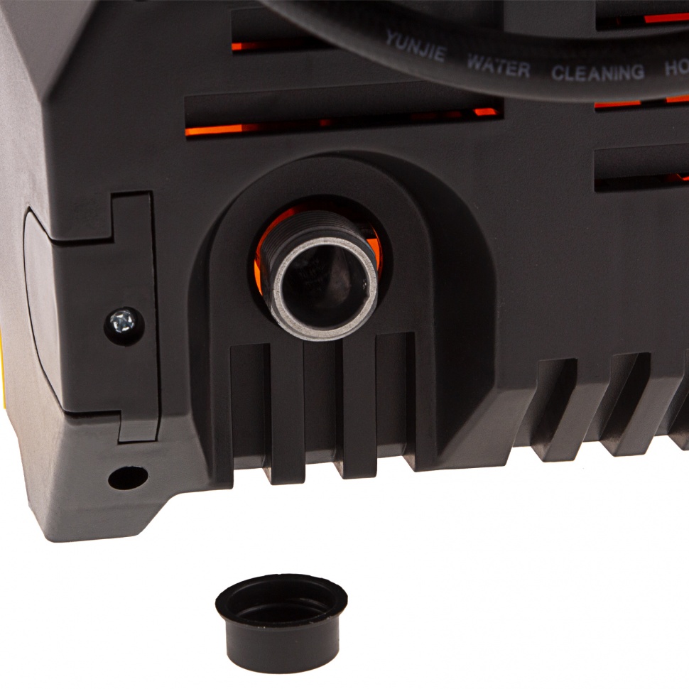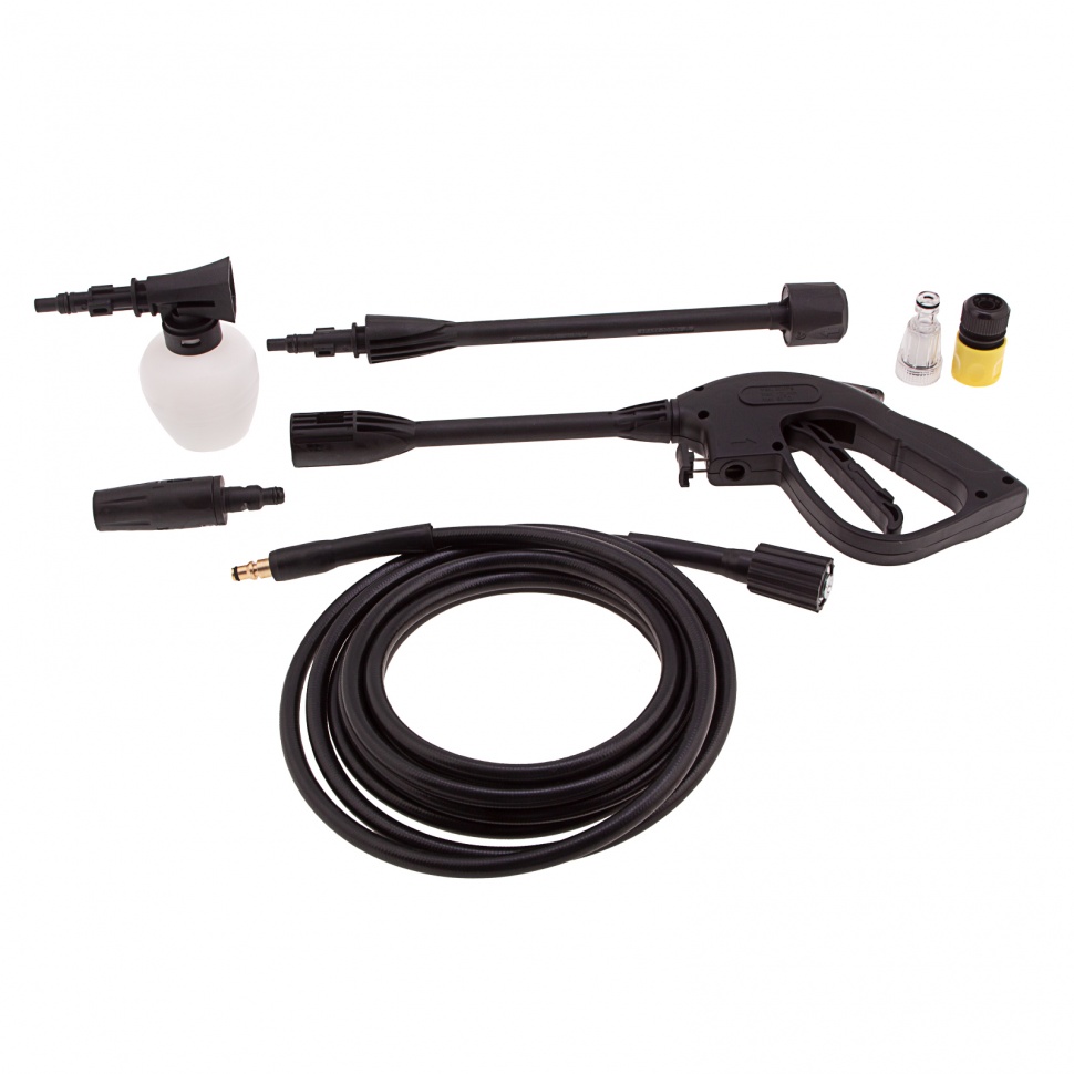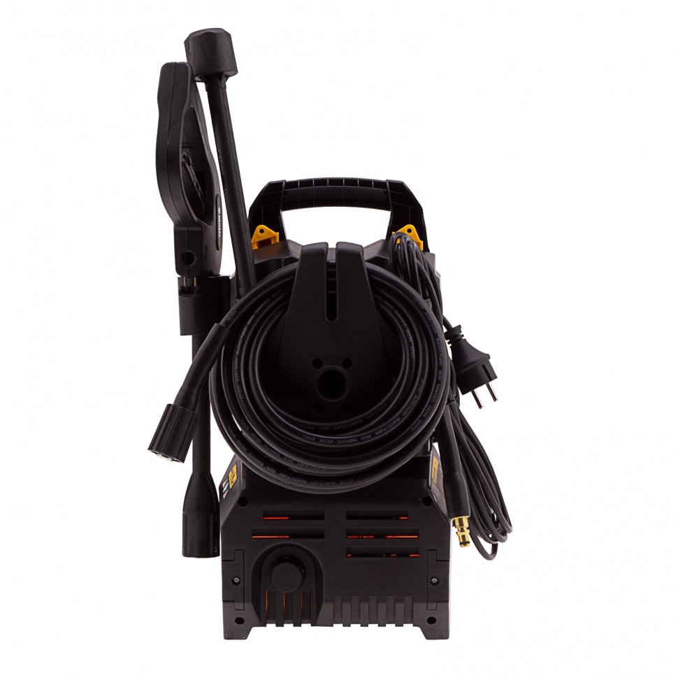 Переносная моечная машина высокого давления Denzel R-110 58232 производительностью 5,7 л/мин, мощностью 1500 Вт, с максимальным давлением 110 бар, используется для мытья автомобилей, садового инвентаря, велосипедов, дорожек и заборов. Мощный мотор и помпа высокой производительности позволяют быстро справляться даже с серьезными загрязнениями. Если нет доступа к водопроводу, мойка может осуществлять забор воды из резервуара в режиме самовсасывания, теряя при этом всего 5% давления.ПреимуществаНадежность и стабильное давление — алюминиевая помпа со стальными плунжерами отличается высокой точностью подгонки деталей.Быстрая подготовка к работе — благодаря быстросъемному коннектору пистолет присоединяется одним движением, а входящий в комплект HPC-коннектор позволяет легко подключить шланг к патрубку мойки.Прочная конструкция — штуцеры из металла устойчивы к повреждению при рывках шланга.Безопасность — опция блокировки рычага пистолета предотвращает случайный пуск подачи воды.Термозащита — в случае перегрева мотор отключается автоматически, что предотвращает его поломку.Полная электробезопасность — токопроводящие элементы имеют двойную изоляцию, мойке присвоен класс защиты II.Чистая вода — специальный фильтр предотвращает засоры и увеличивает срок службы помпы.Эффективная работа — входящий в комплект пеногенератор позволяет использовать моющие средства для очистки поверхностей.Регулируемое сопло — можно настроить интенсивность и форму струи для удобной работы в труднодоступных местах.Мобильность — длина шланга и сетевого кабеля составляет 5 м, что позволяет свободно перемещаться по рабочей зоне.Удобная транспортировка — мойка весит 5,6 кг, а на корпусе предусмотрена ручка.Гарантия 3 года — надежность моечной машины подтверждена производителем.