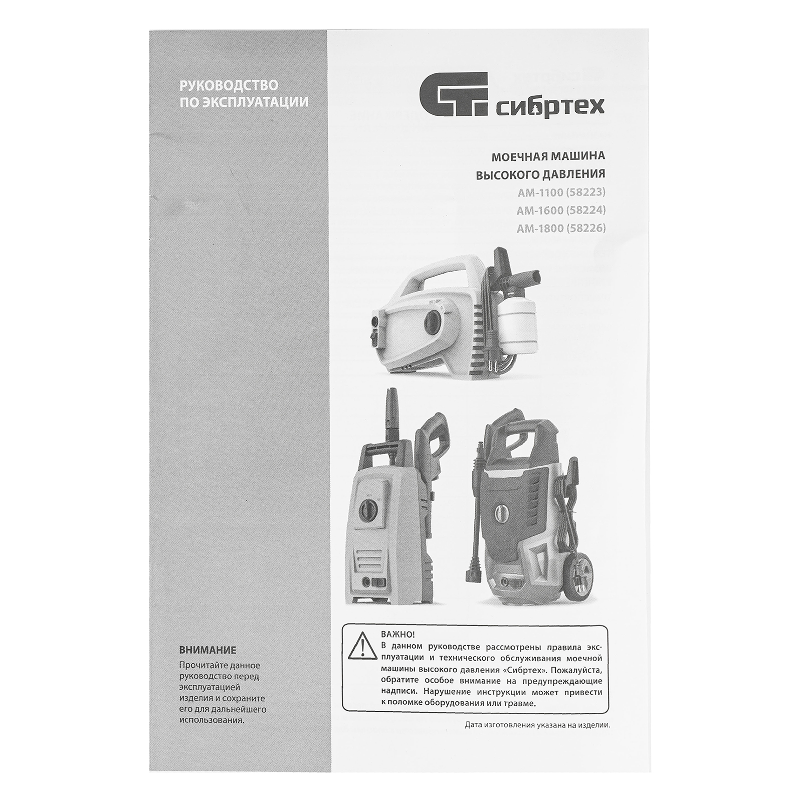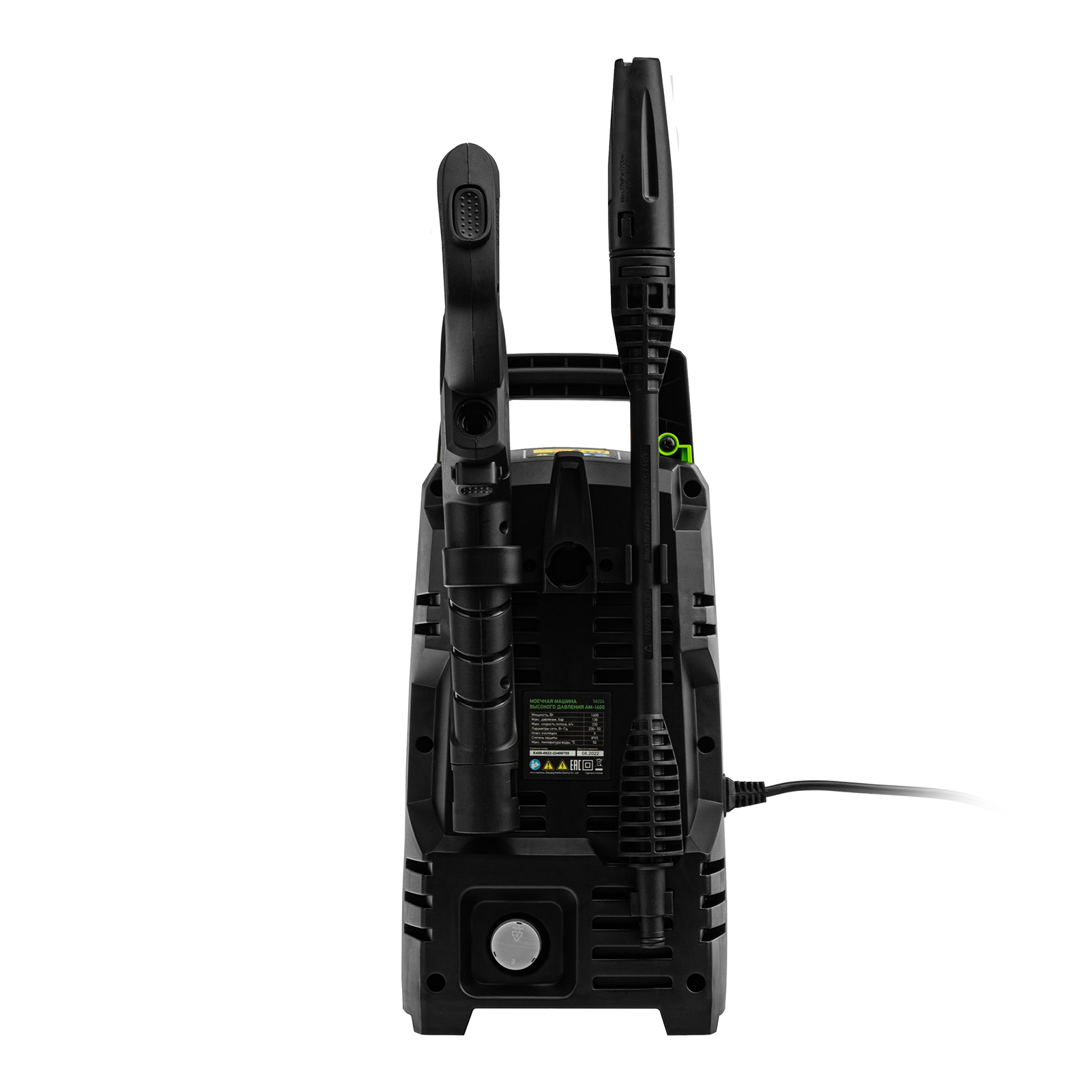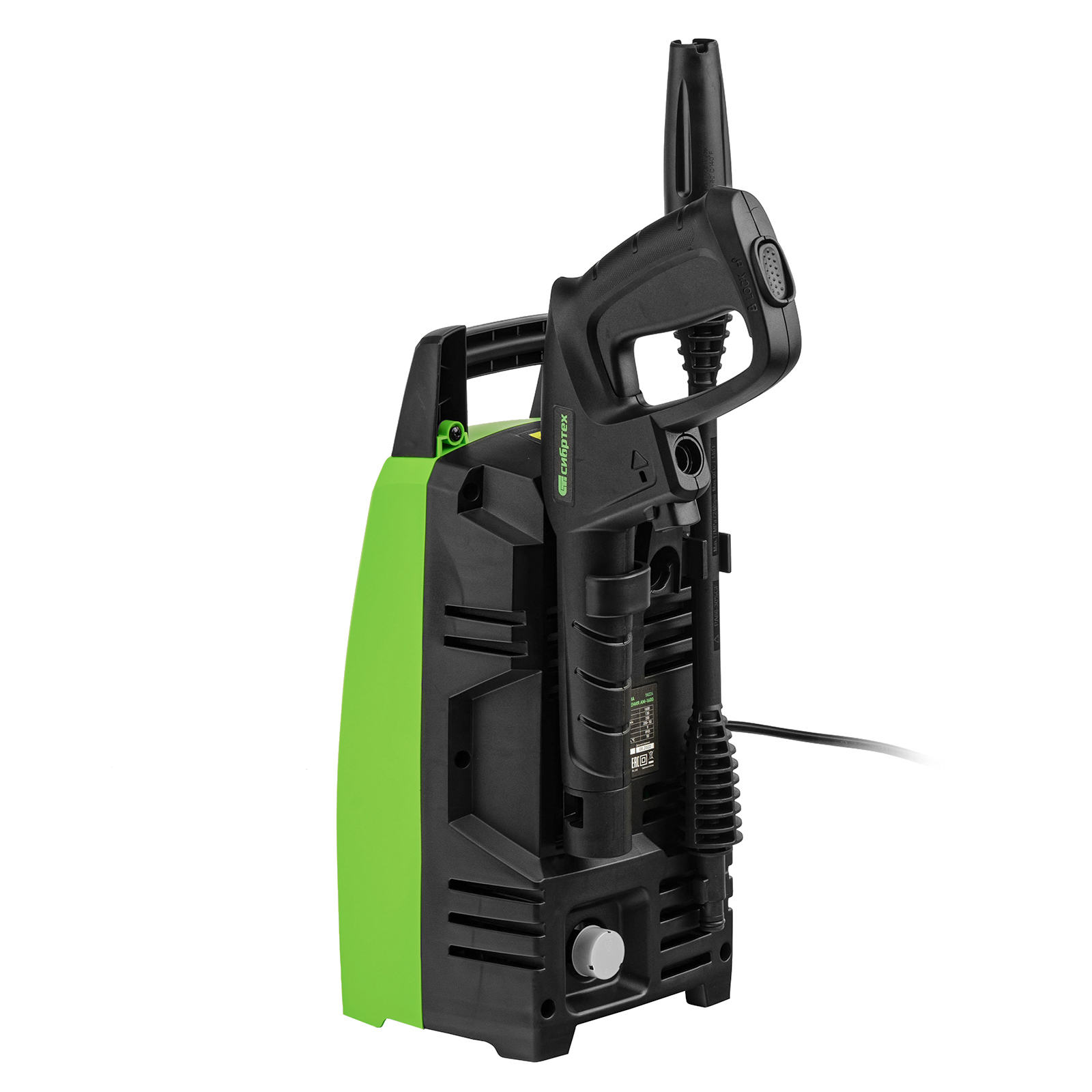 Переносная моечная машина высокого давления Сибртех AM-1600 58224 мощностью 1600 Вт и производительностью 330 л/ч подает струю воды под давлением 130 бар. Позволяет быстро очистить садовые дорожки, забор, стены строений, садовый инвентарь, уличную мебель, кузов автомобиля. Машина подключается к водопроводу, а также способна работать в режиме самовсасывания — в этом случае в качестве источника воды можно использовать любую емкость. Устройство будет полезно владельцам дачных участков.ПреимуществаВысокий ресурс — алюминиевая помпа выдерживает интенсивное использование.Экологичность — во время работы машины отсутствуют вредные выхлопы и неприятный запах.Термозащита — в случае перегрева двигатель отключается для предотвращения поломки.Электробезопасность — токопроводящие элементы имеют двойную изоляцию.Удобная регулировка струи — вращая корпус сопла, можно установить оптимальный вид распыления.Эффективное очищение — в комплект поставки входит внешний пеногенератор, позволяющий использовать моющие средства.Удобная работа в труднодоступных местах — на пистолет можно установить насадку-удлинитель.Безопасность — блокировка рычага пистолета предотвращает случайный запуск.Защита от засоров — входной штуцер имеет встроенный фильтр, задерживающий посторонние частицы.Легкая подготовка к работе — быстросъемный адаптер позволяет подключить входной шланг одним движением.Свободное передвижение по рабочей зоне — длина сетевого кабеля и шланга составляет 5 м, что позволяет реже перемещать мойку во время работы.Простое обслуживание — в комплект поставки входит игла для прочистки сопла.Продуманное хранение и транспортировка — на корпусе имеется удобная ручка, для кабеля и шланга предусмотрены специальные кронштейны.