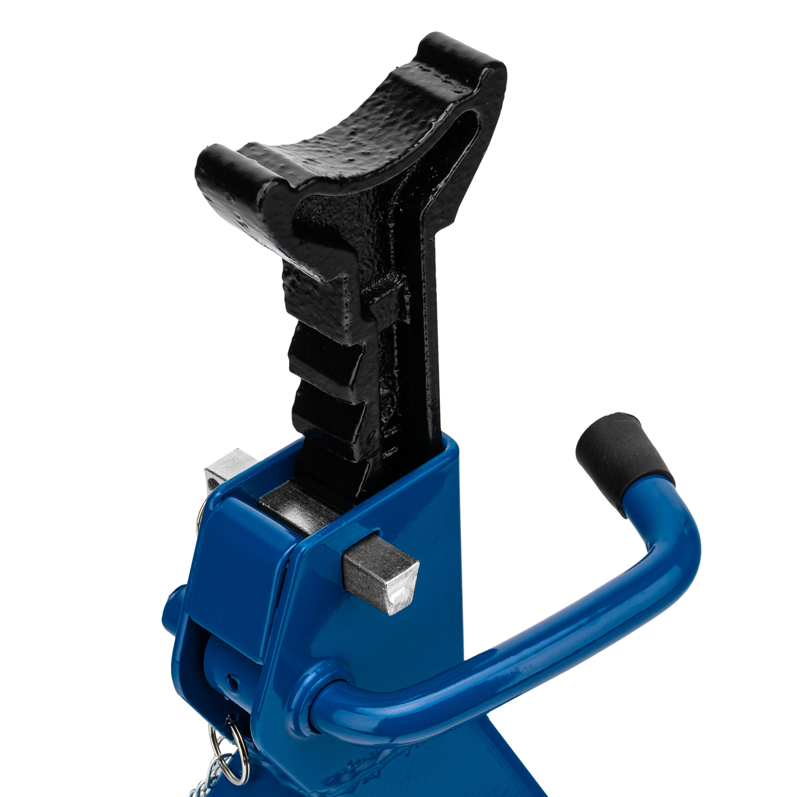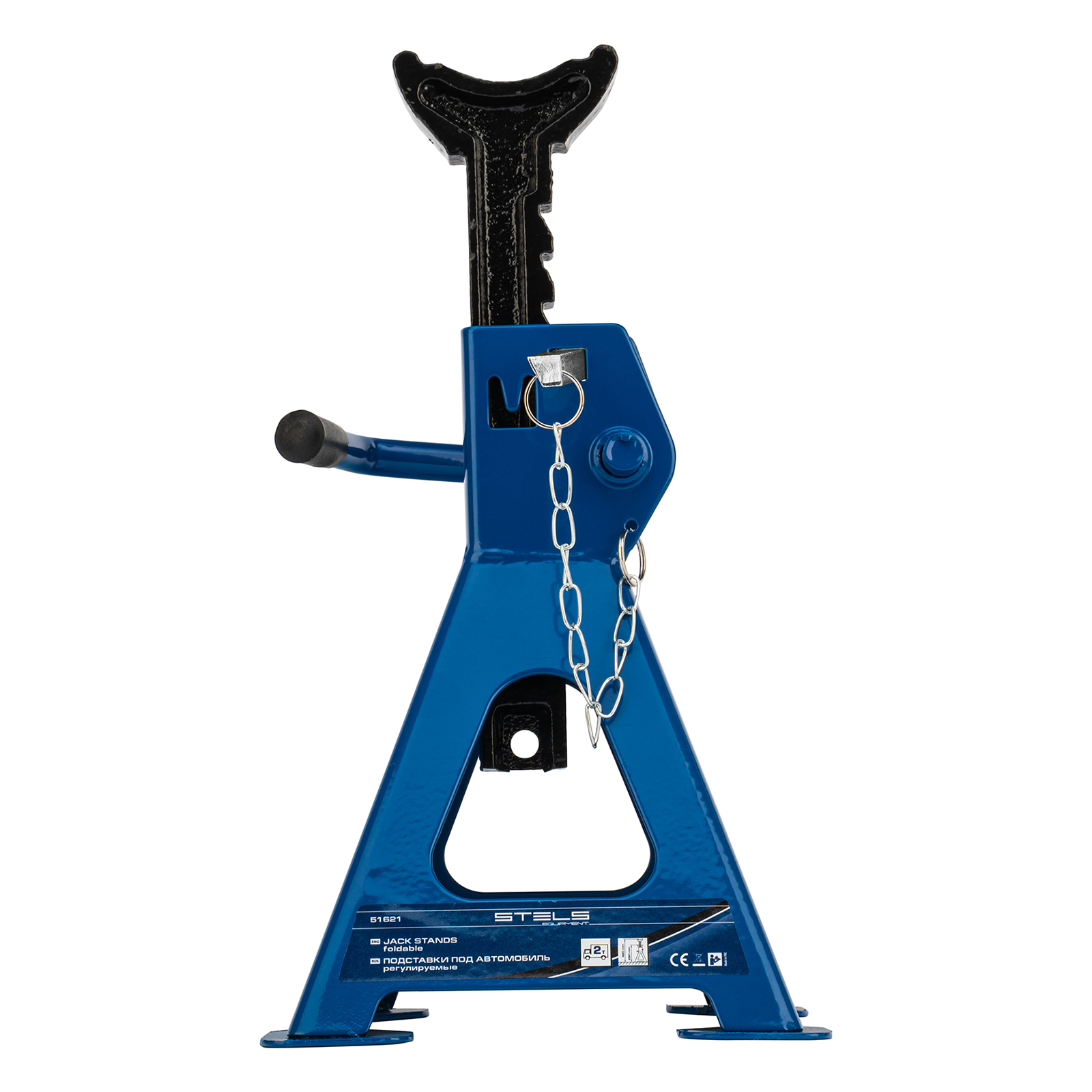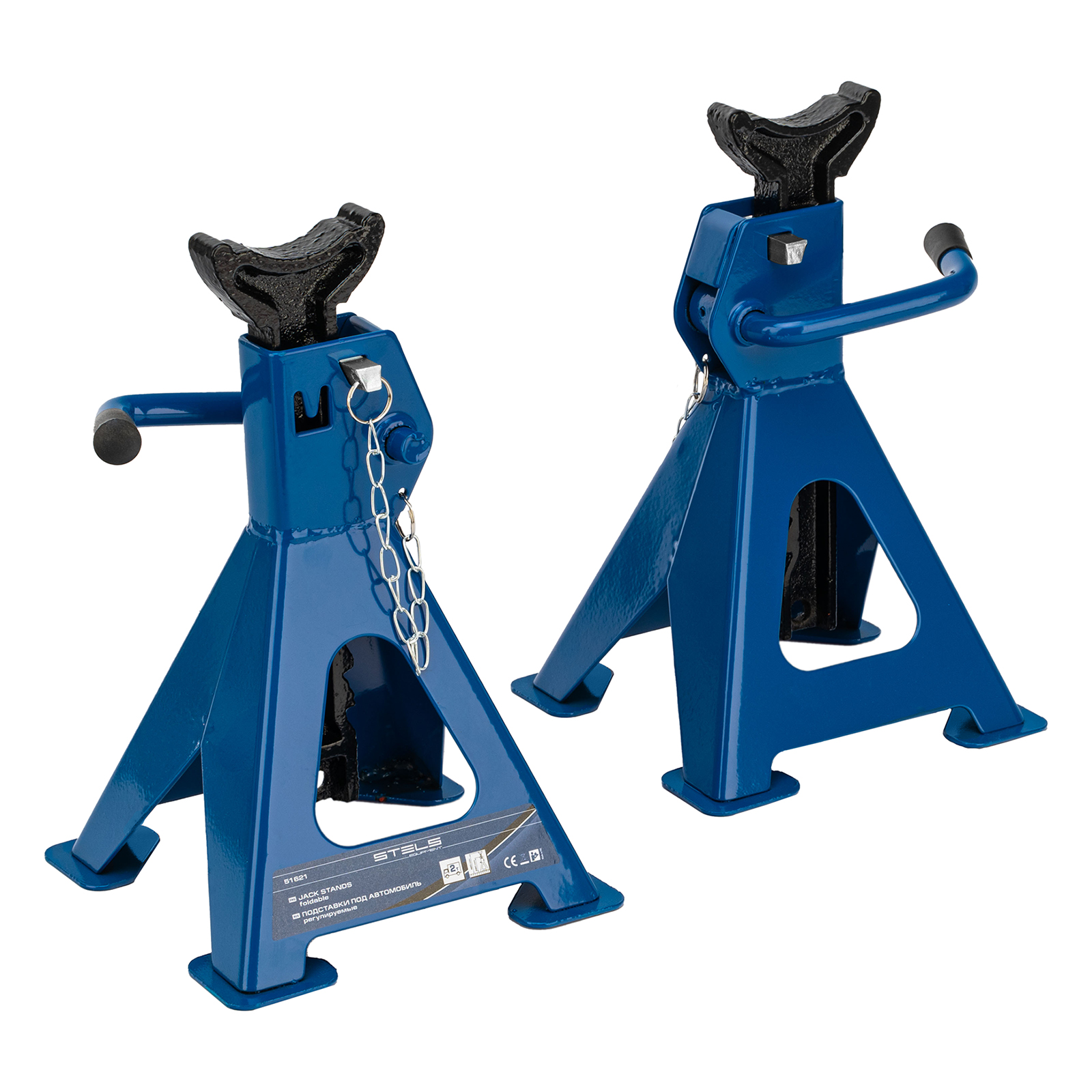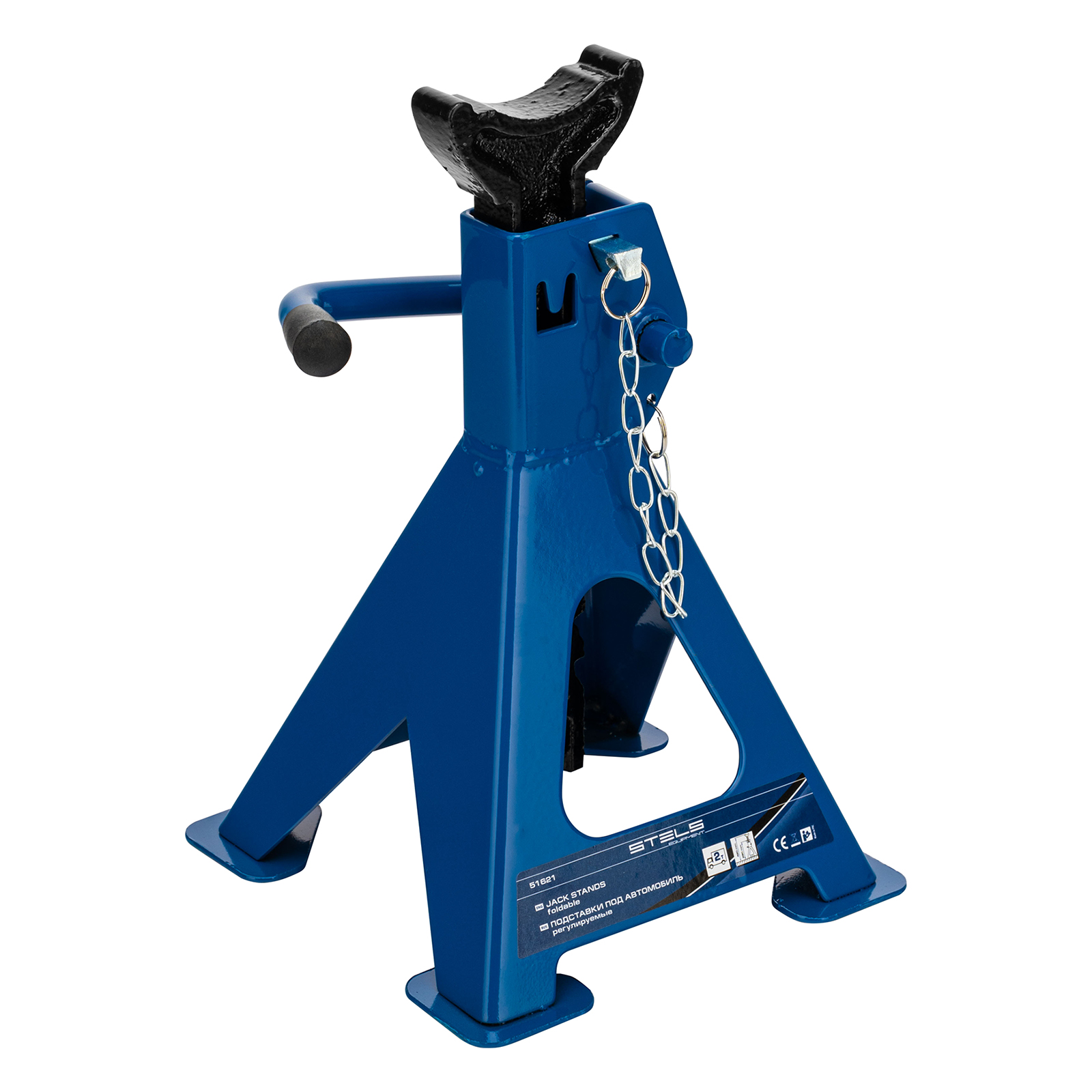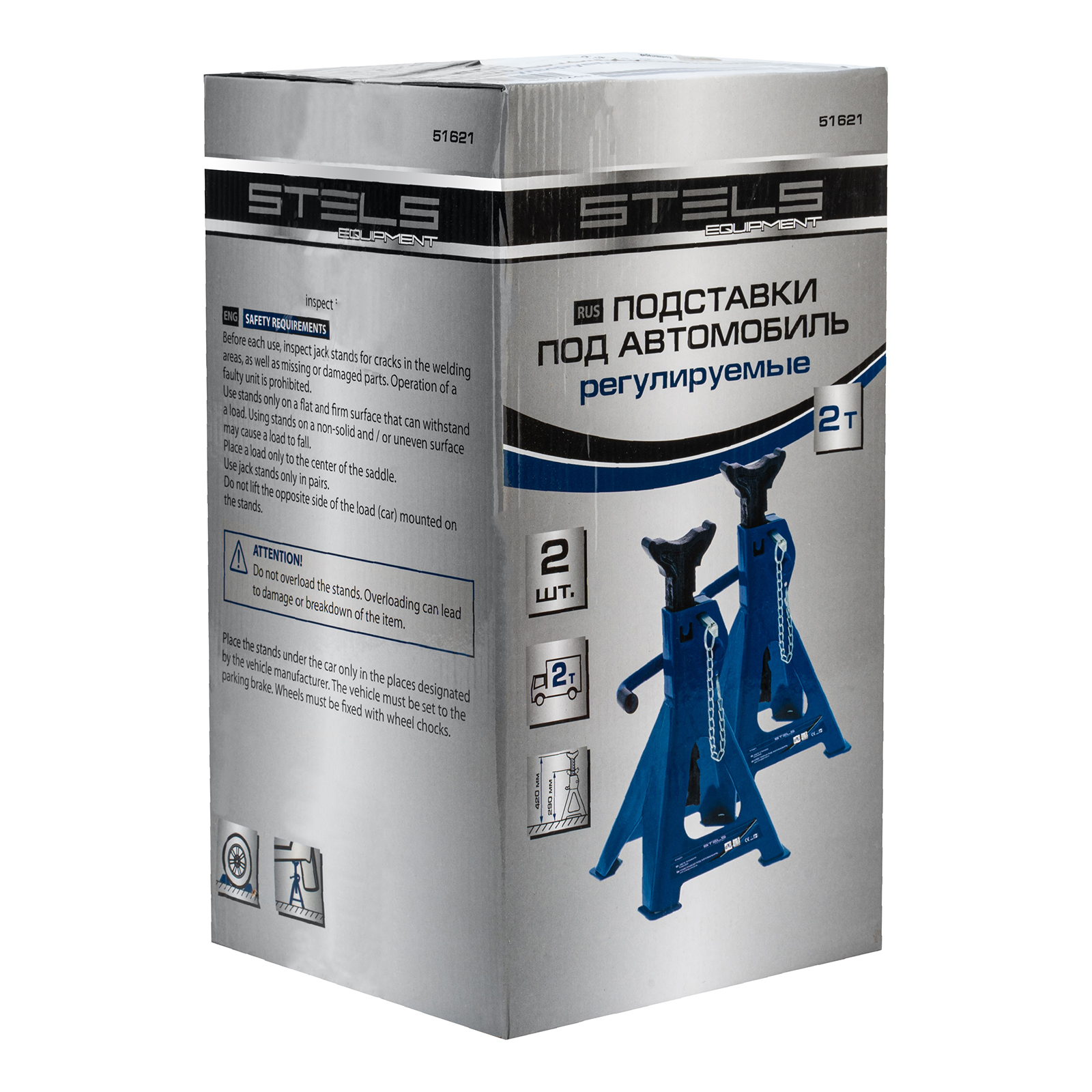 Регулируемые подставки под автомобиль Stels 51621 грузоподъемностью 2 т, с высотой подъема 280-420 мм, 2 шт. в комплекте, используются в качестве дополнительной поддержки во время ремонта автотранспорта. Подставки удерживают автомобиль на необходимой высоте при помощи регулируемых штоков с зубчатым механизмом фиксации. Каждая стойка снабжена страховочным штифтом, что исключает риск случайного опускания штока. Подставки будут полезны для профессионального и самостоятельного авторемонта.ПреимуществаНадежность — сварной корпус каждой подставки изготовлен из стали, шток — из чугуна.Безопасное использование — специальные площадки на опорах обеспечивают устойчивость подставок и целостность поверхности, на которую они установлены.Продуманная конструкция — страховочные штифты подвешены на цепочки, поэтому они не потеряются.Вес 5,175 кг — комплект подставок можно брать в поездки.