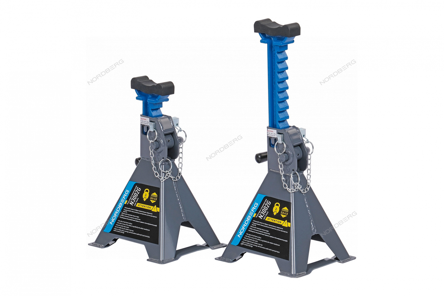 Комплект автомобильных опорных подставок NORDBERG N3002G – специальное страховочное оборудование для использования в автосервисах, мастерских шиномонтажа, автотранспортных, производственных предприятиях, в частных гаражах.