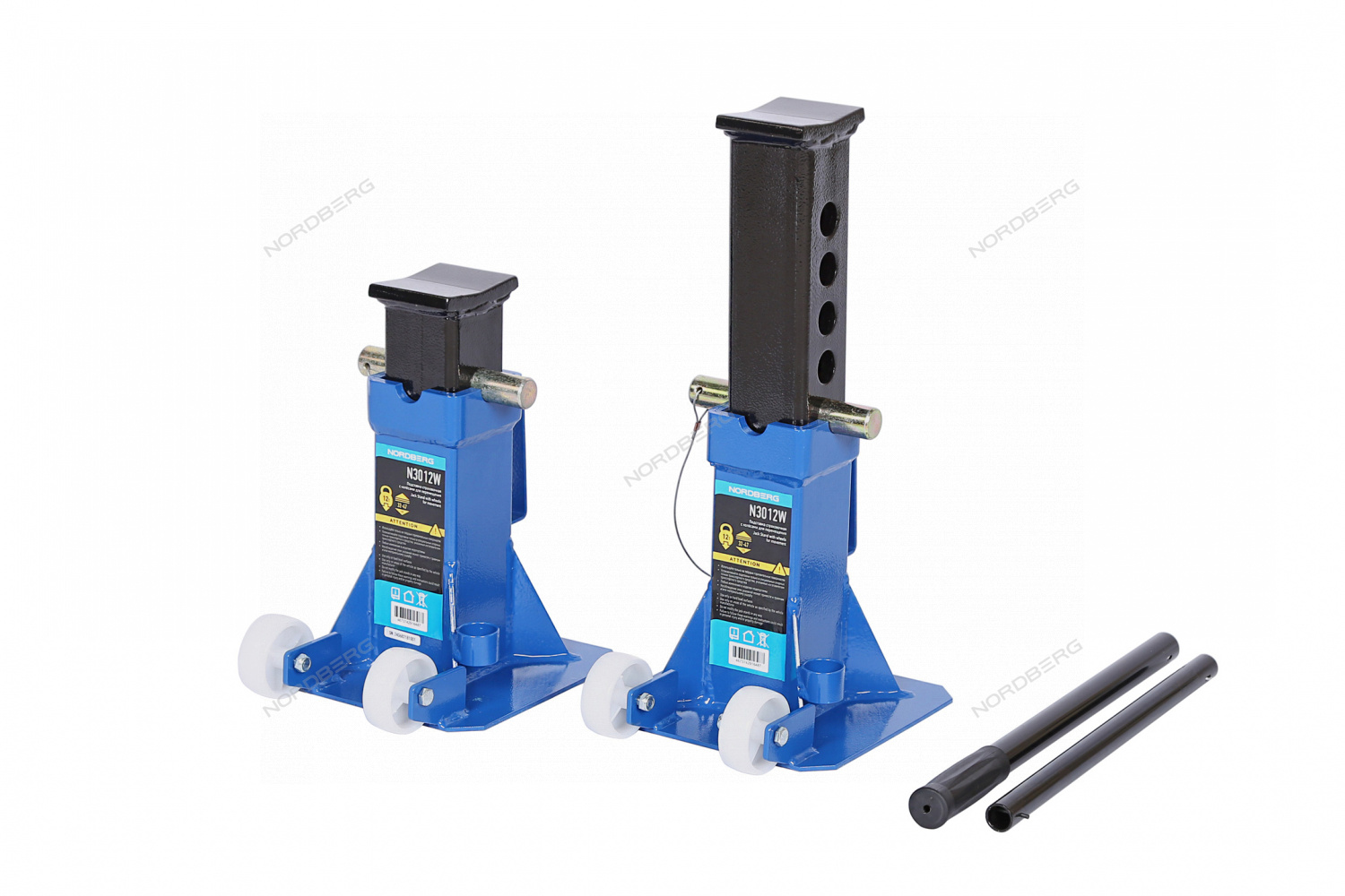 Комплект автомобильных опорных подставок на колесах NORDBERG N3012W – страховочное оборудование для работ с транспортными средствами в автосервисах или СТО.