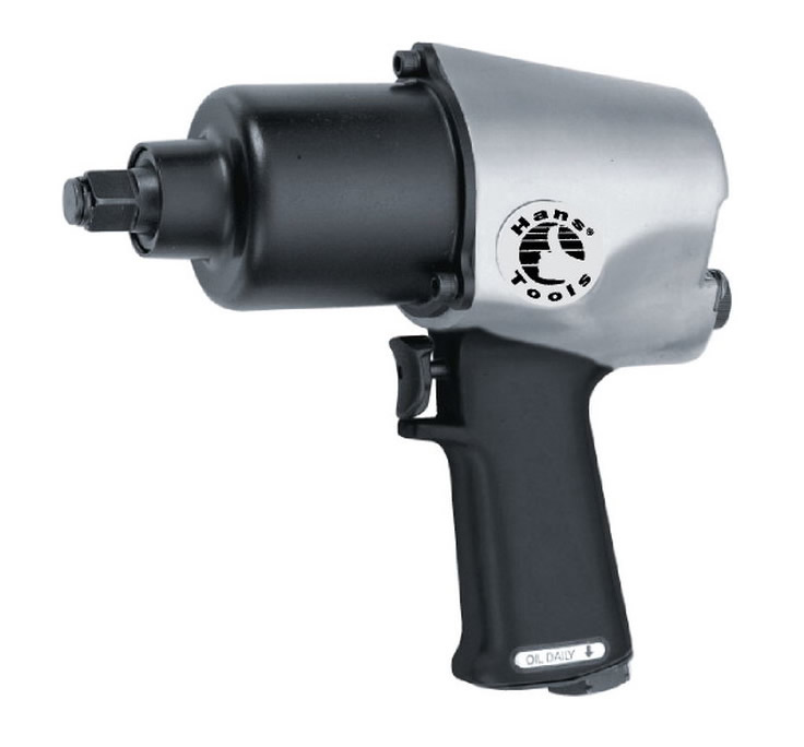 Hans 84110 – выносливая и прочная модель от Hans. Этот пневматический гайковерт можно рекомендовать к использованию не только на СТО и шиномонтажных постах(для грузовоых лучше подойдет гайковерт пневматический ударный 1"), но и на производстве. Однако надежность и прочность имеют обратную сторону в виде лишнего веса, который у 84110 составляет 2,6 кг, хотя максимальное рабочее усилие 542Нм (не стоит путать с пиковым, которое указывают различные производители, у данного гайковерта достигает 759Нм) позволяет смириться с гайковертом весящим более 2 кг.