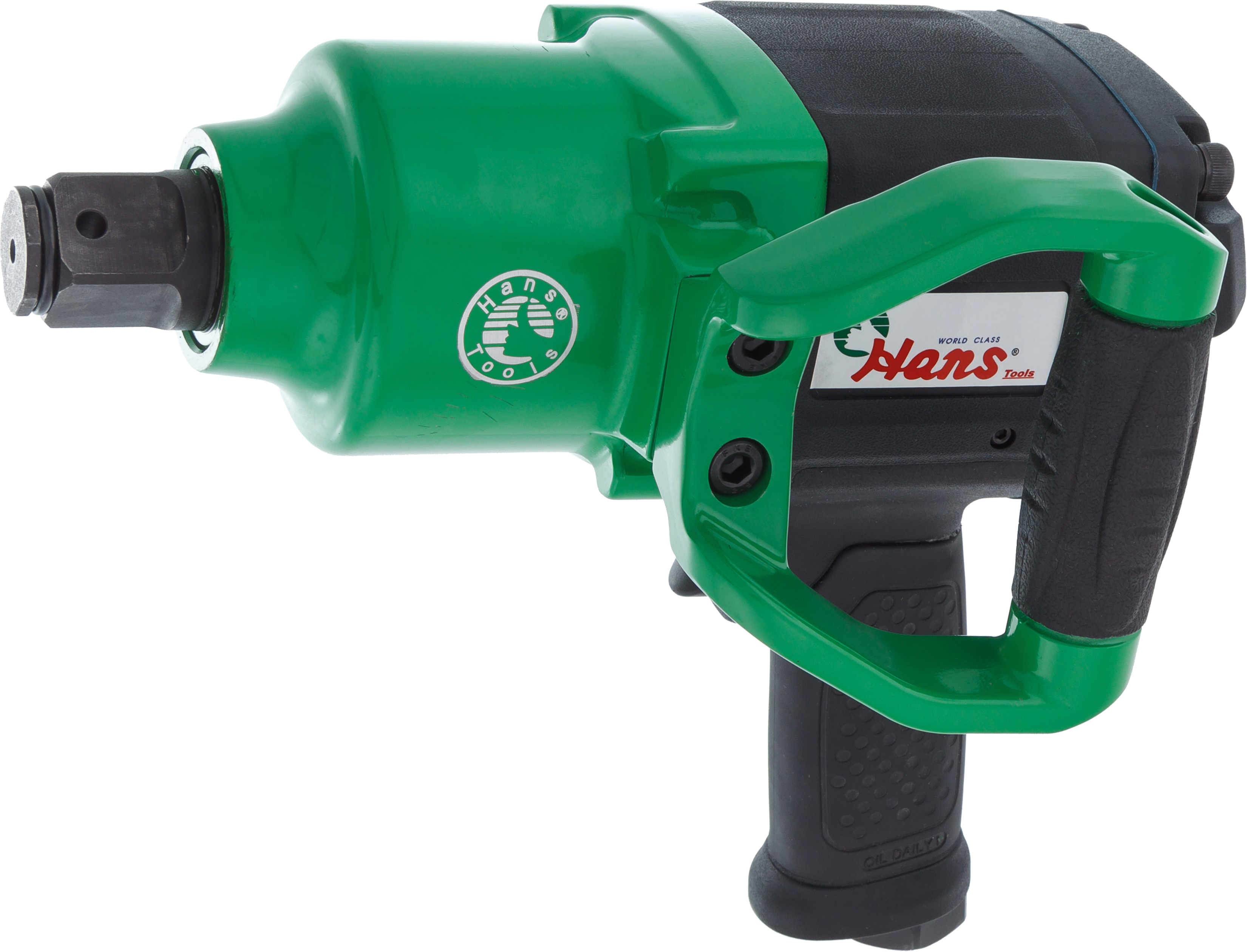 Hans 88117 – выносливая и прочная модель от Hans. Этот пневматический гайковерт можно рекомендовать к использованию не только на грузовых СТО и шиномонтажных постах, но и на производстве. Гайковерт имеет максимальное рабочее усилие 2441Нм, при этом вес всего 7,4 килограмма.