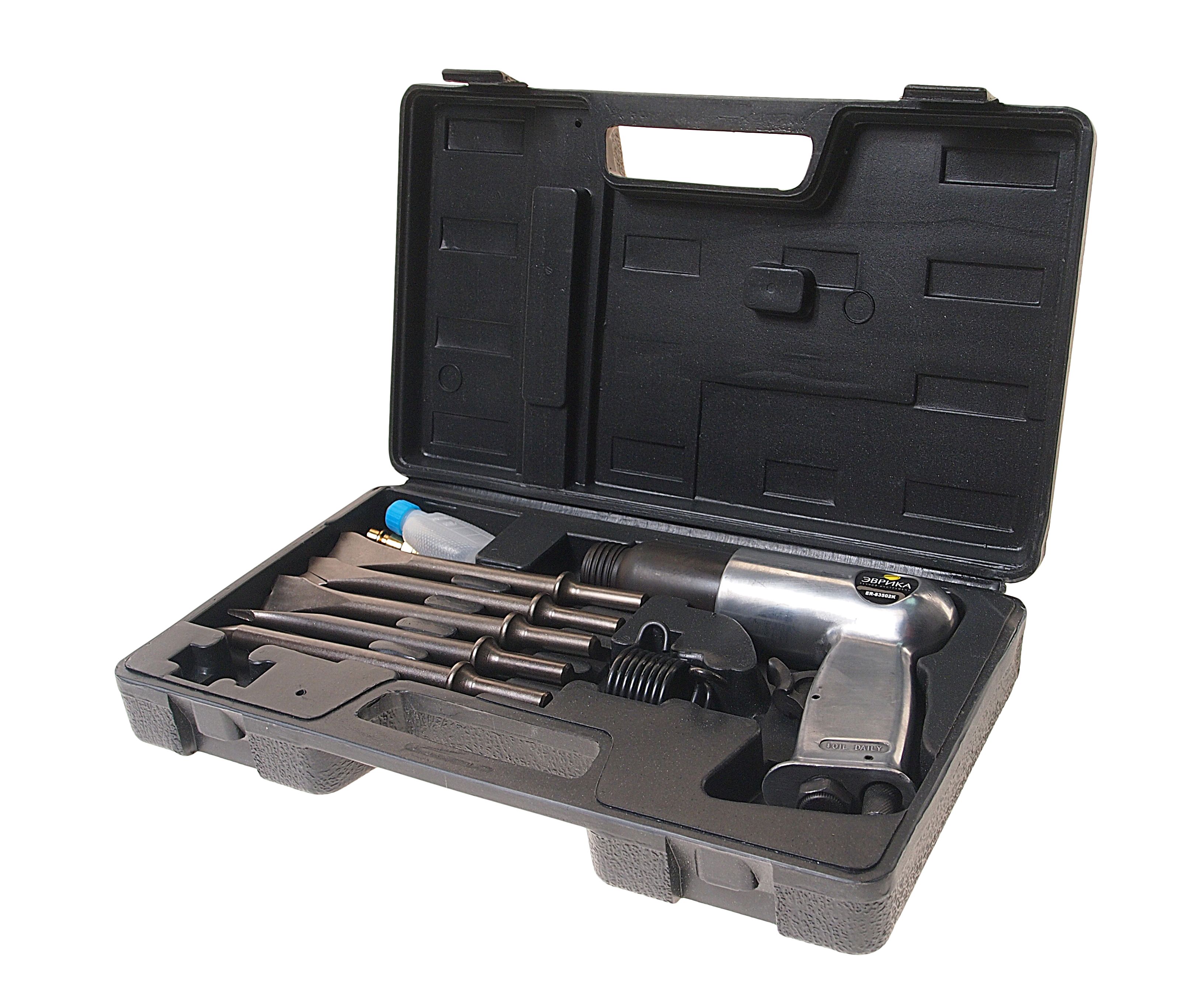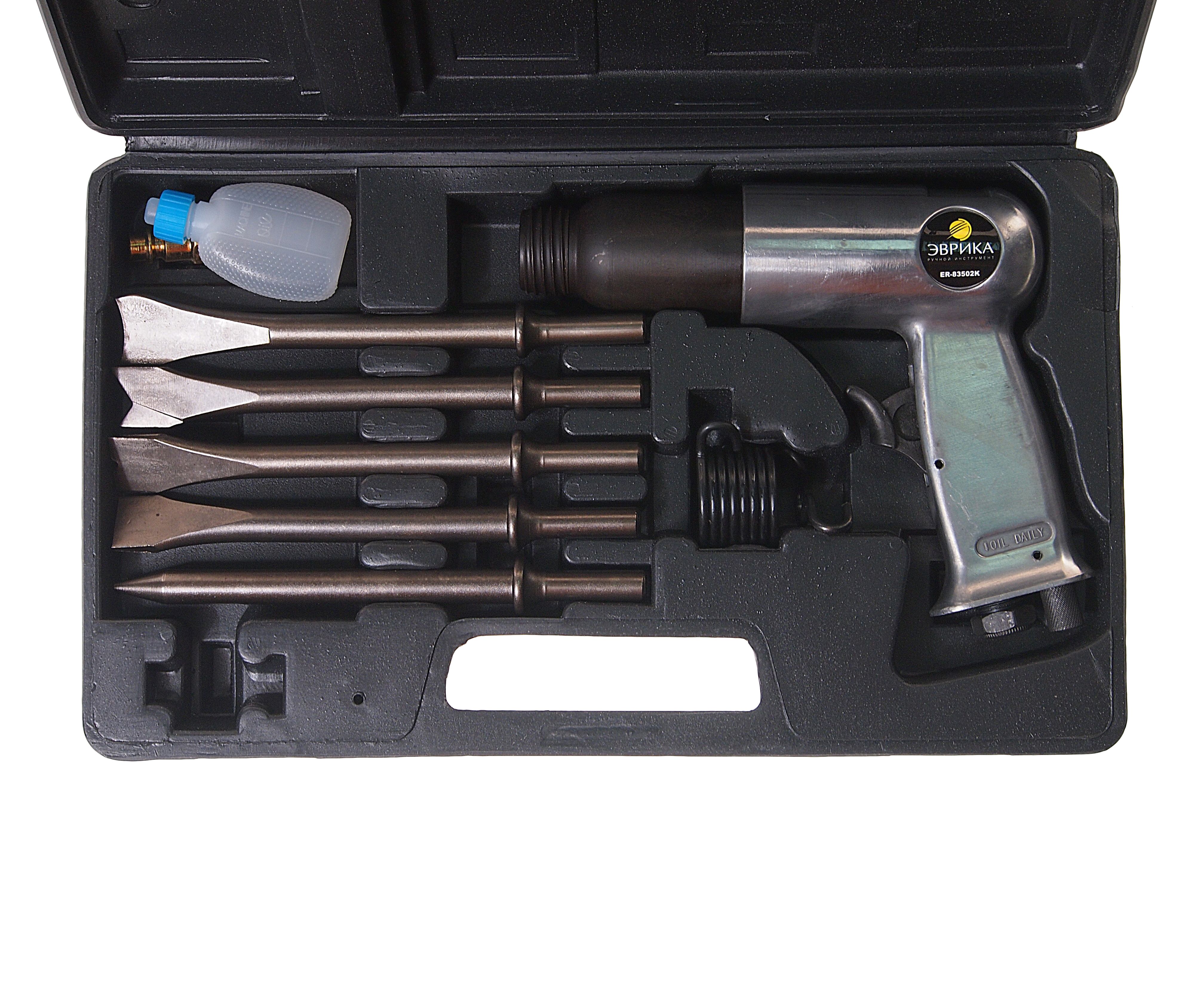 Пневмомолоток 1/4" 3000 уд/мин с набором зубил ЭВРИКА 9 предметов используется при демонтаже различных конструкций.