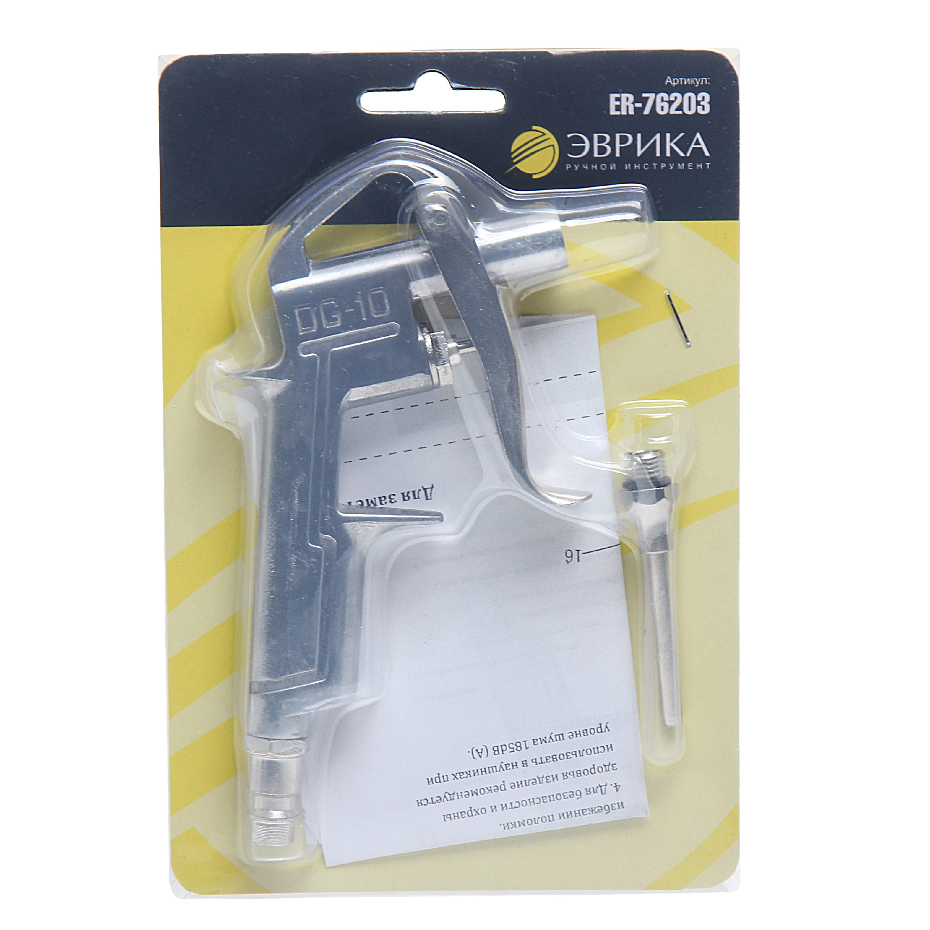Пистолет продувочный ER-76203 пневматический(насадка 5см, входное отверстие1/4, максимальное давление 6 АТМ, расход воздуха 145 л/мин.) ЭВРИКА надежен в эксплуатации.