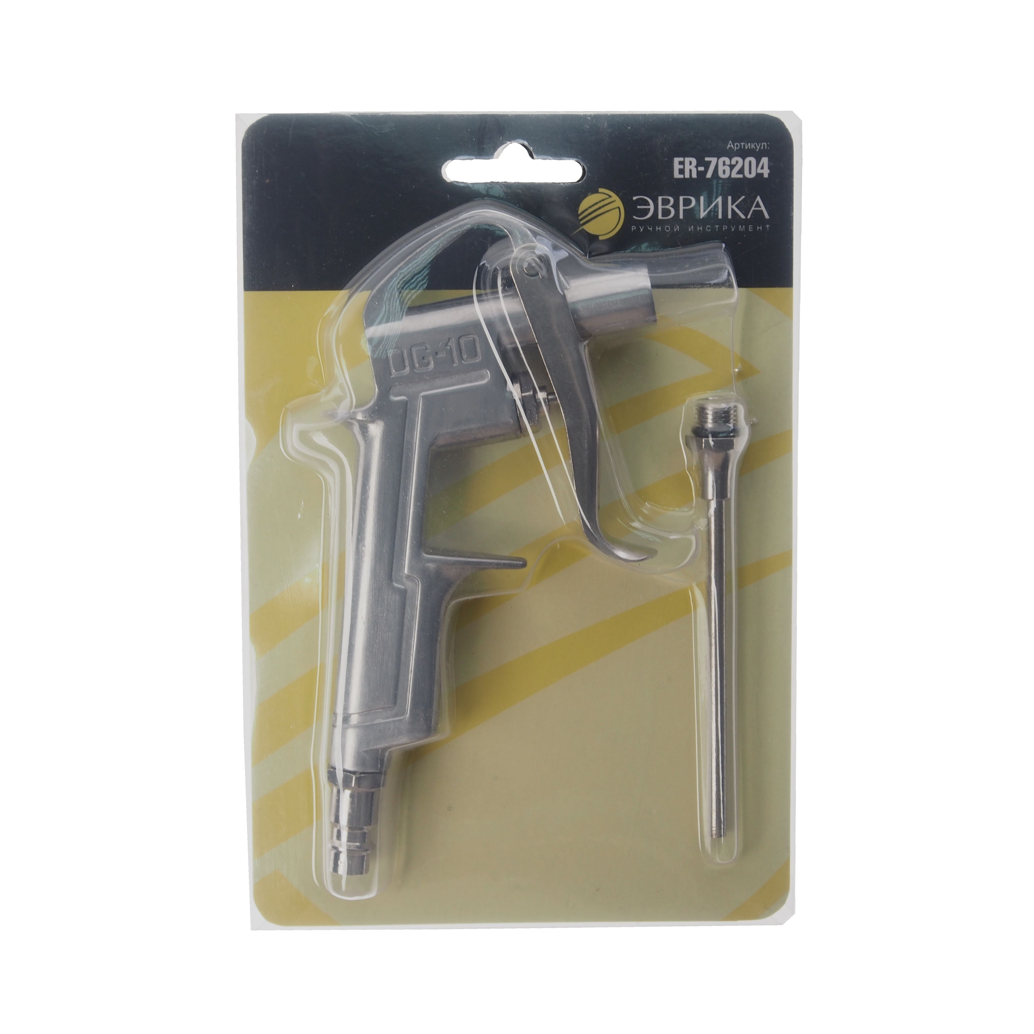 Пневматический пистолет для продувки ER-76204 от ЭВРИКА с насадкой 9,5 см и входным отверстием 1/4 дюйма предназначен для очистки загрязненных поверхностей струей сжатого воздуха.