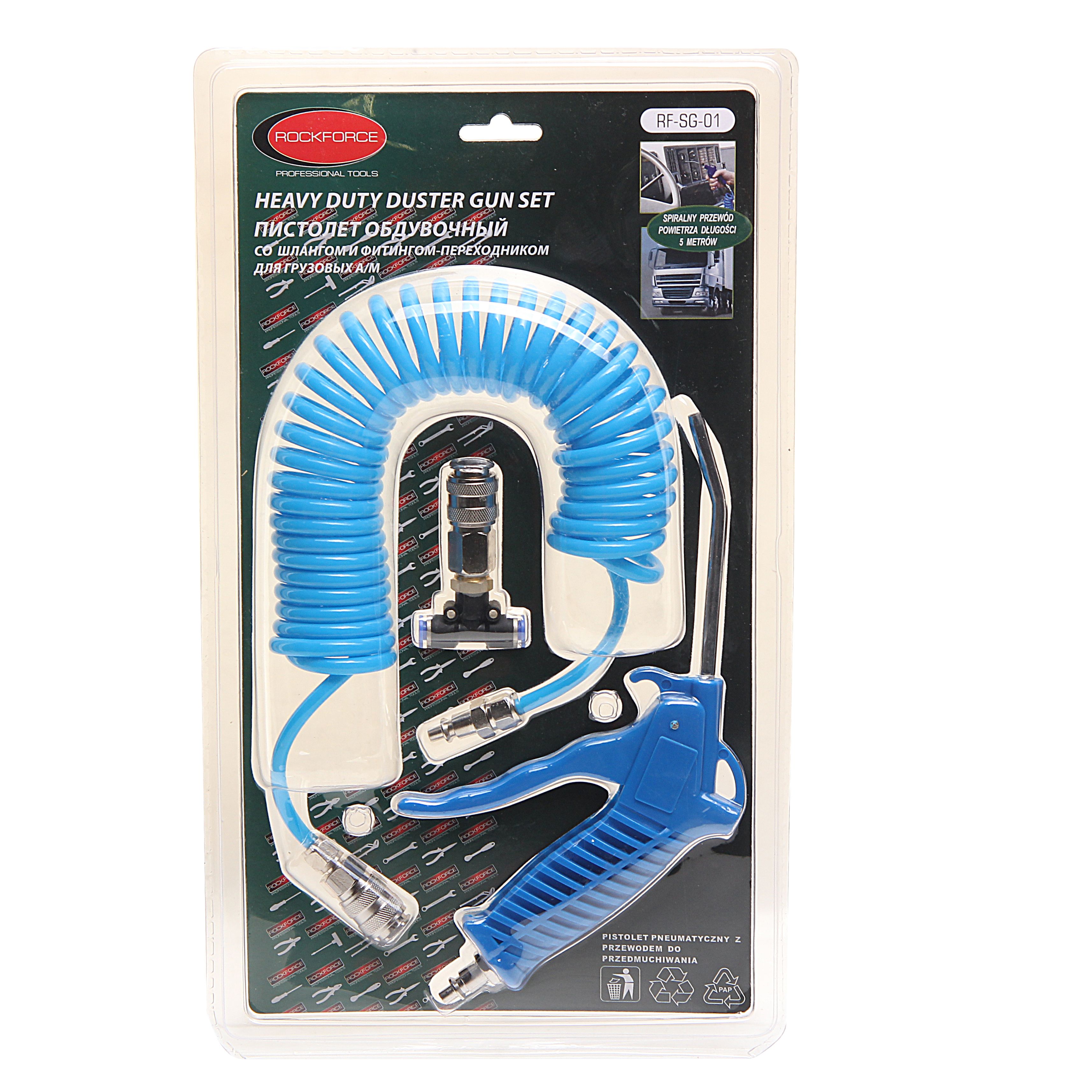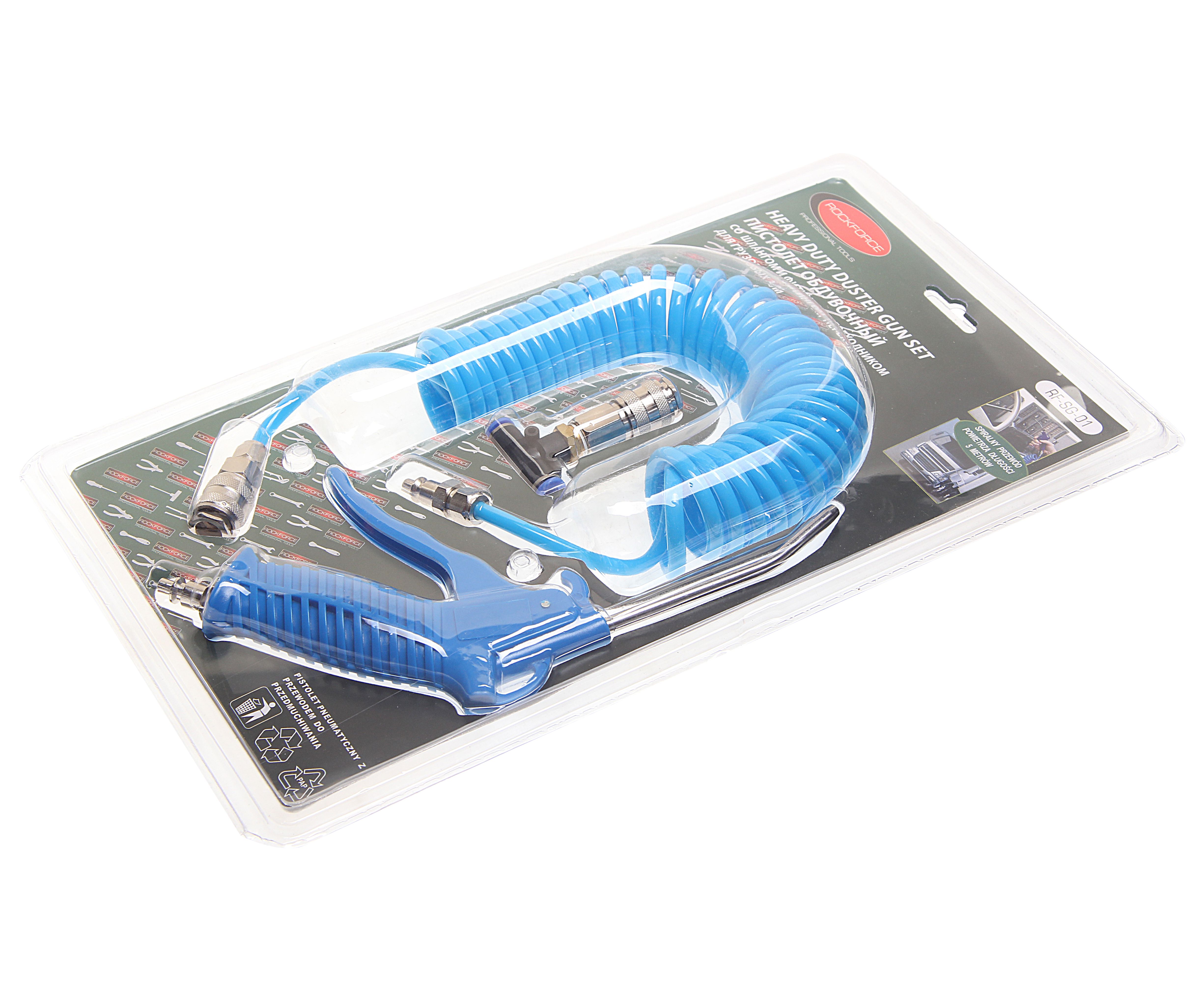 Пистолет RockForce, обдувочный со шлангом и фитингами-переходниками для грузовых а/м (сопло-120мм, шланг-5м), предназначен для удаления остаточных материалов с поверхности, с помощью струи песка под высоким давлением. Инструмент работает за счет сжатого воздуха, что позволяет увеличить рабочий ресурс инструмента, снизить вес и понизить пожароопасность рабочего процесса