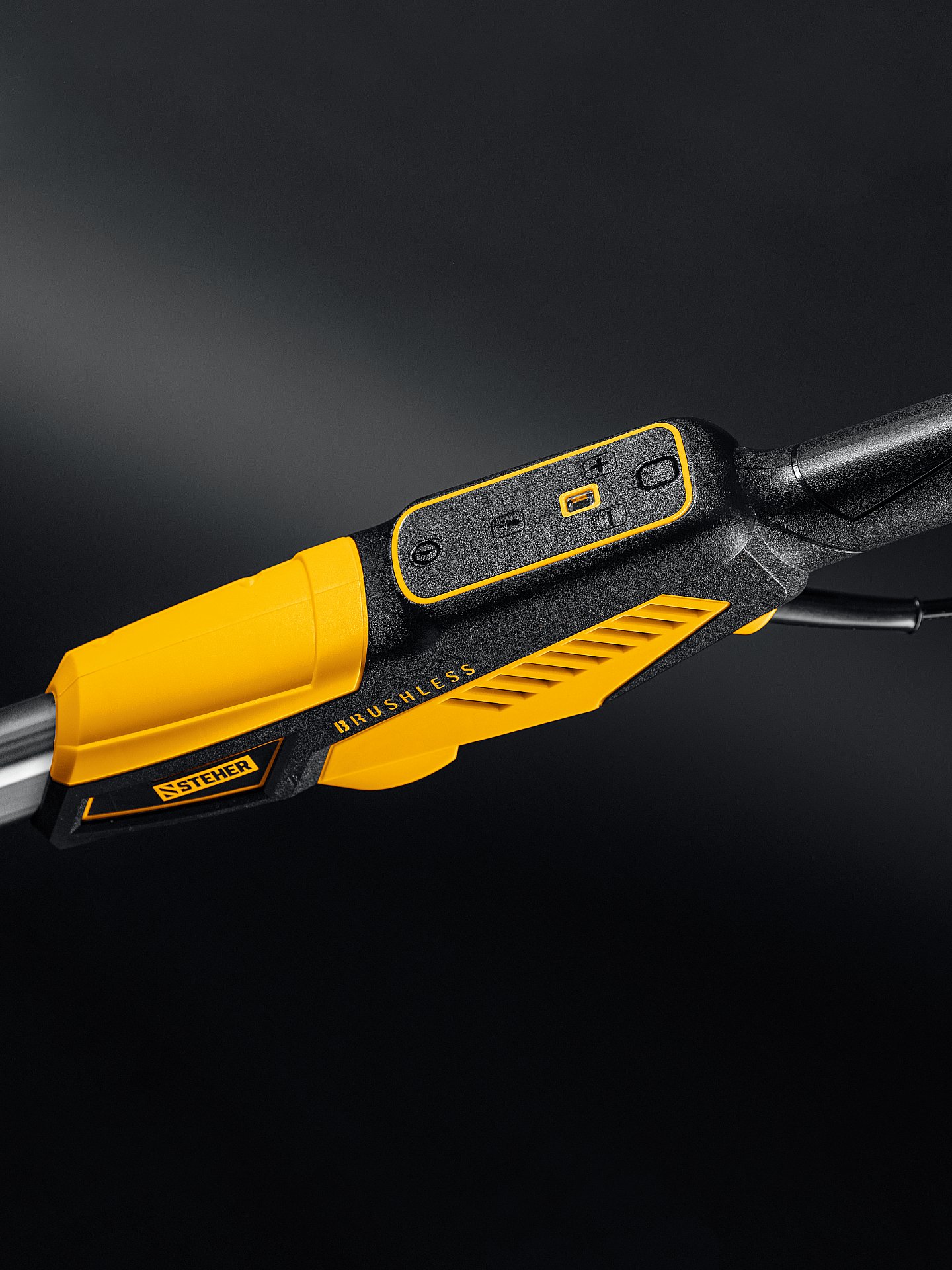 - Раздвижная задняя рукоятка позволяет настроить инструмент под свой рост и необходимую высоту обработки