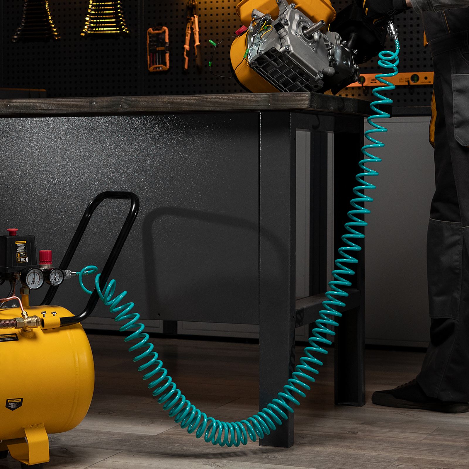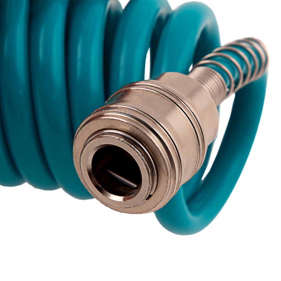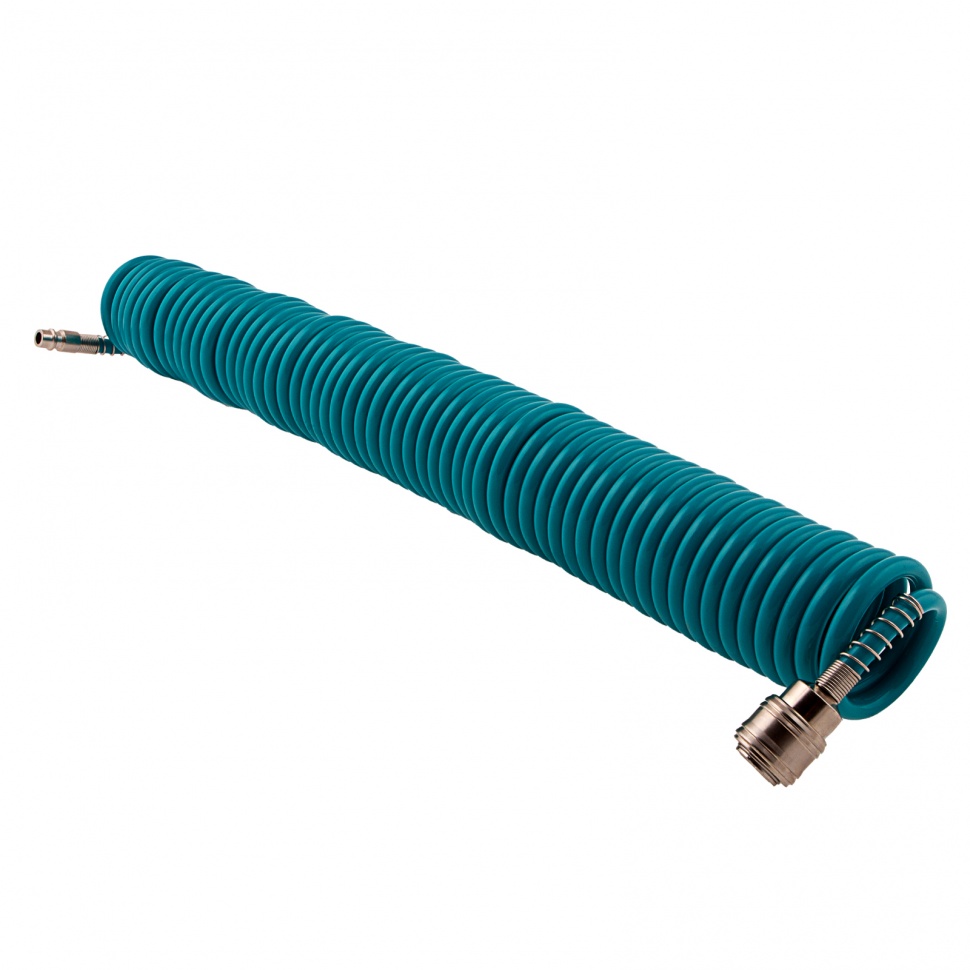 Профессиональный полиуретановый спиральный шланг Stels 57007 из сырья BASF, длиной 10 м, с быстросъемными соединениями, предназначен для подключения пневматического оборудования. Благодаря увеличенной толщине рукав выдерживает давление до 24 бар, поэтому подходит для мощного компрессорного оборудования. Используется в строительстве и на производственных предприятиях.ПреимуществаДолговечность — рукав изготовлен из полиуретана, сочетающего легкость, прочность и устойчивость к перепадам температур, и выдерживает интенсивное применение.Удобная работа — соединения типа «рапид» позволяют быстро отключать шланг от компрессора и менять пневмоинструменты.Продуманная форма — шланг в виде спирали не мешает работе, а после ее окончания возвращается в исходное состояние.Защита от разрушения — на штуцер и муфту нанесено антикоррозийное покрытие.Длина 10 м — можно работать на значительном удалении от компрессора.