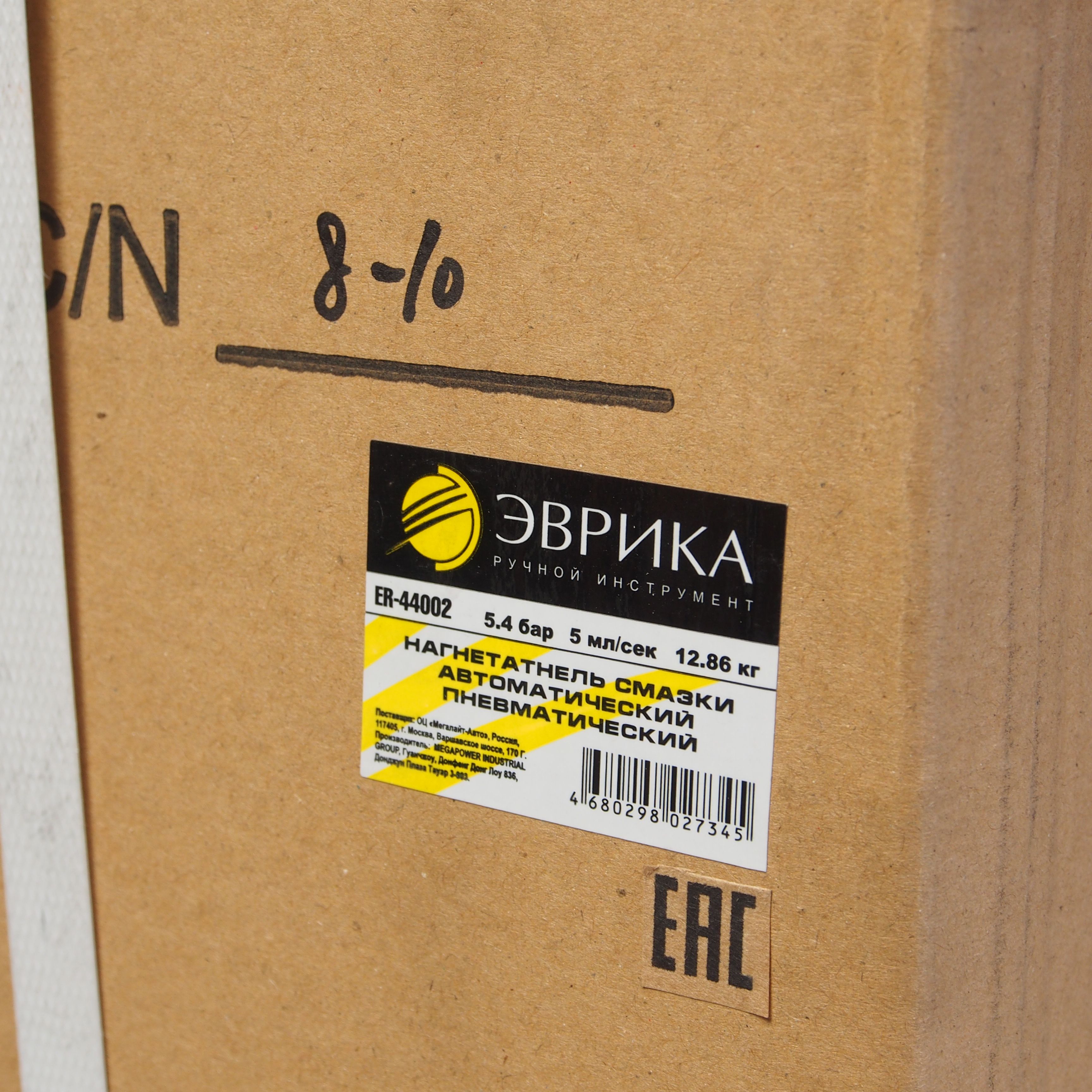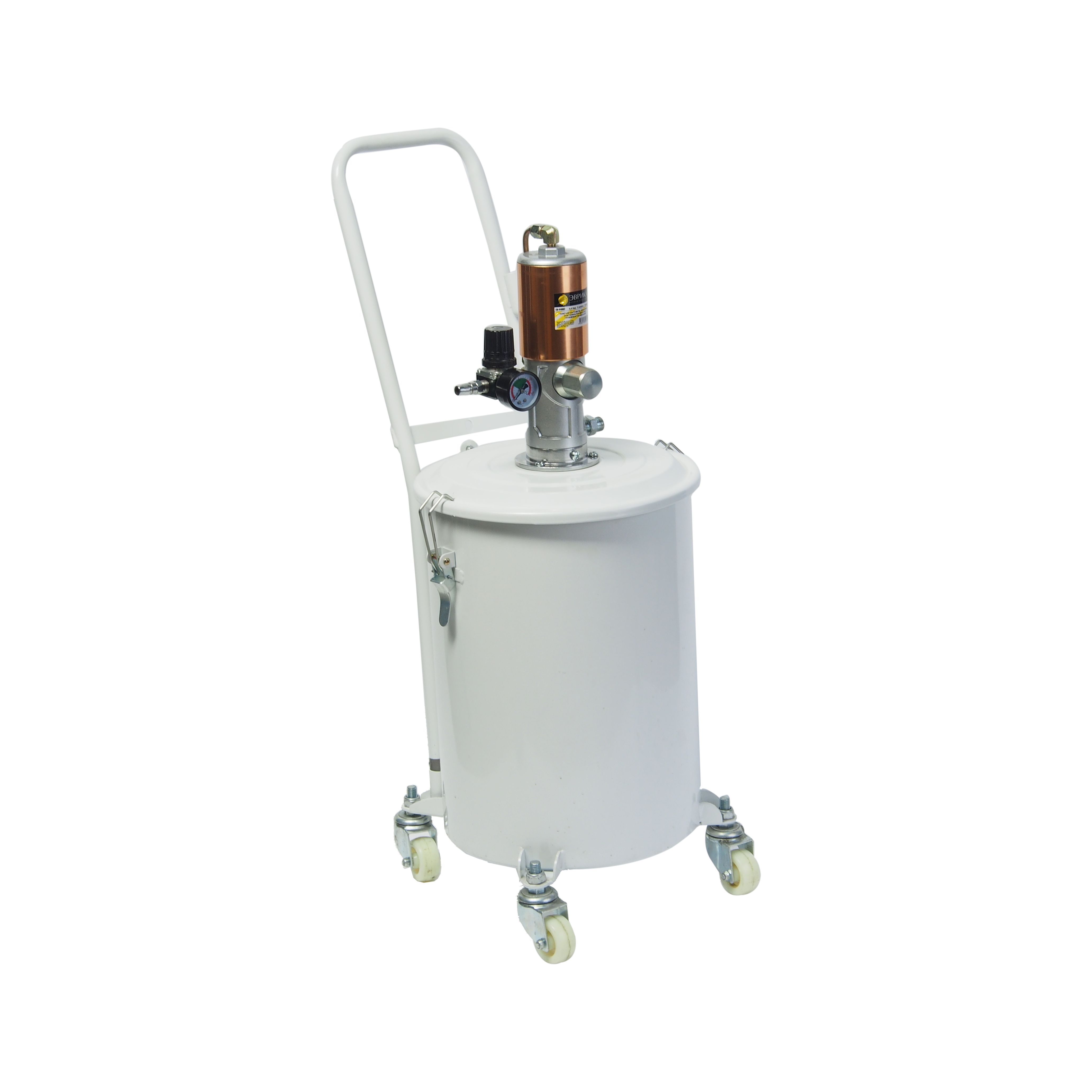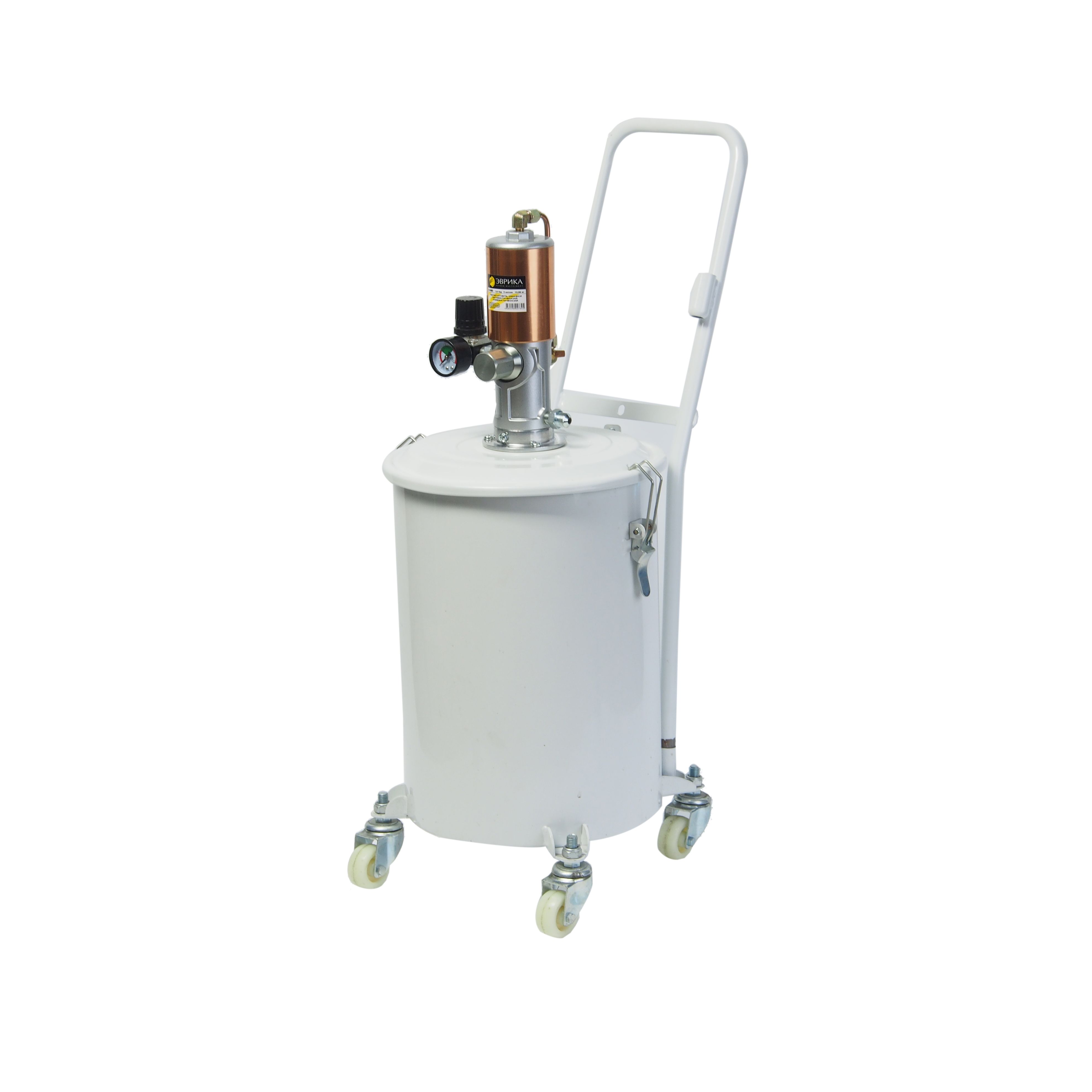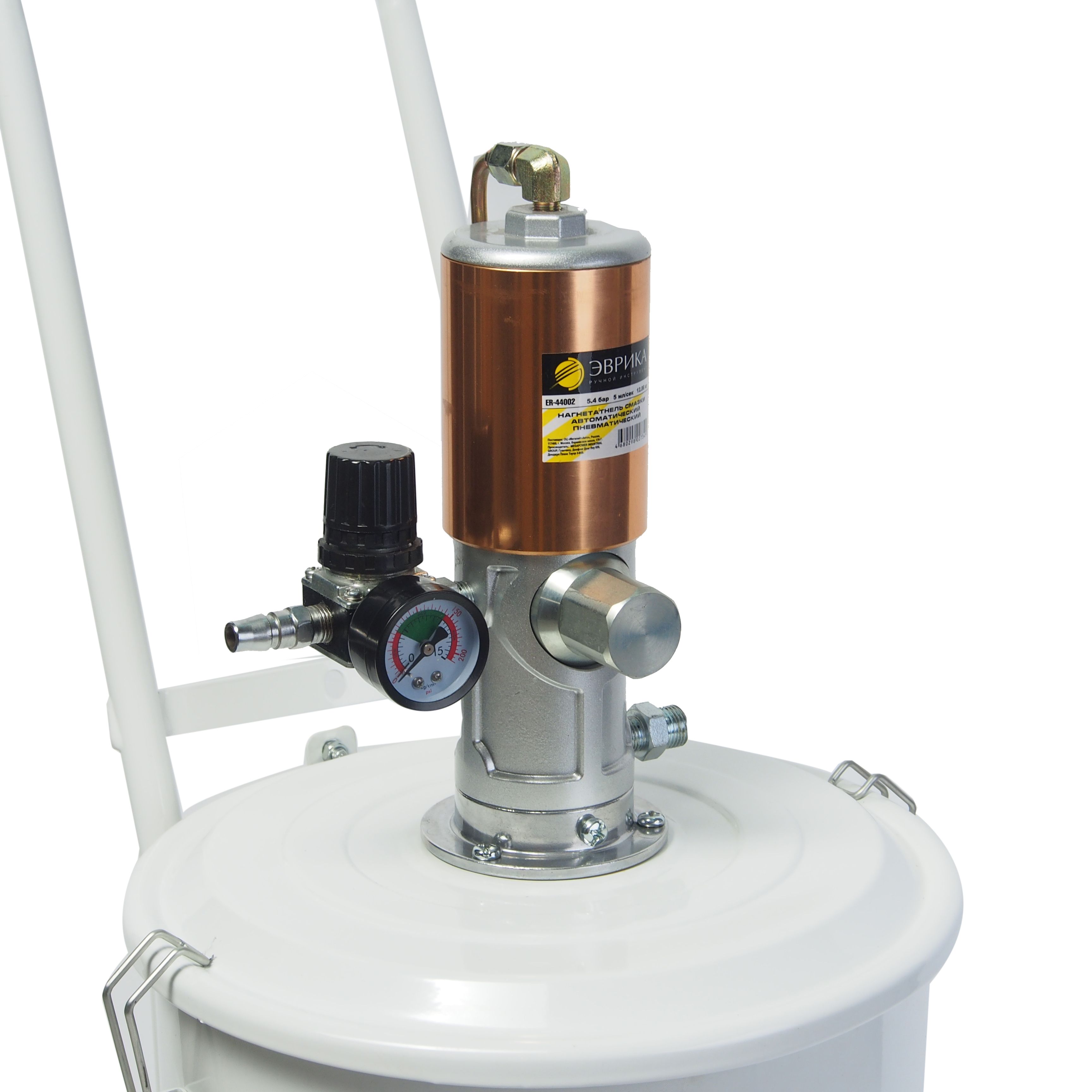 Нагнетатель смазки ER-44002 пневматический(раб.давл.: 5.4 бар; подача: 5 гр/сек.; тип смазки: 0-3, с емкостью на 20л) ЭВРИКА применяется для работы в сфере строительства, обслуживания автомобильного транспорта и пр.