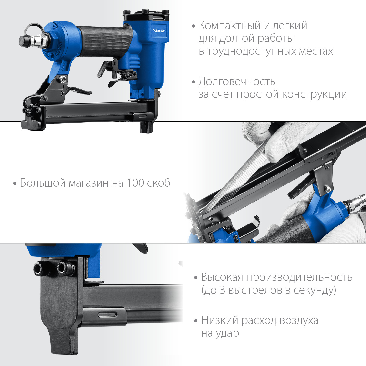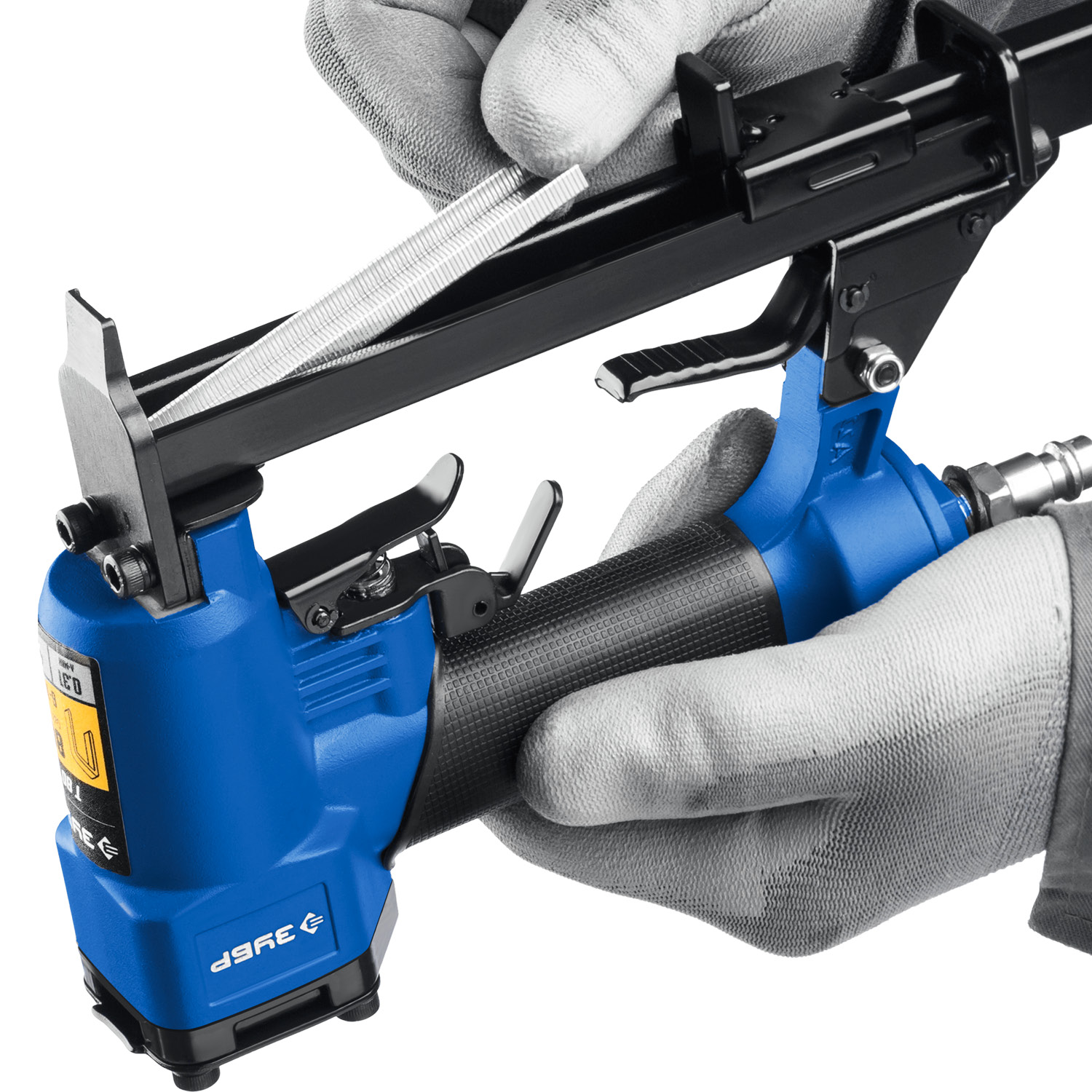 Профессиональный пневматический скобозабиватель. Произведен из высококачественных материалов, позволяет быстро и эффективно выполнить свою работу.