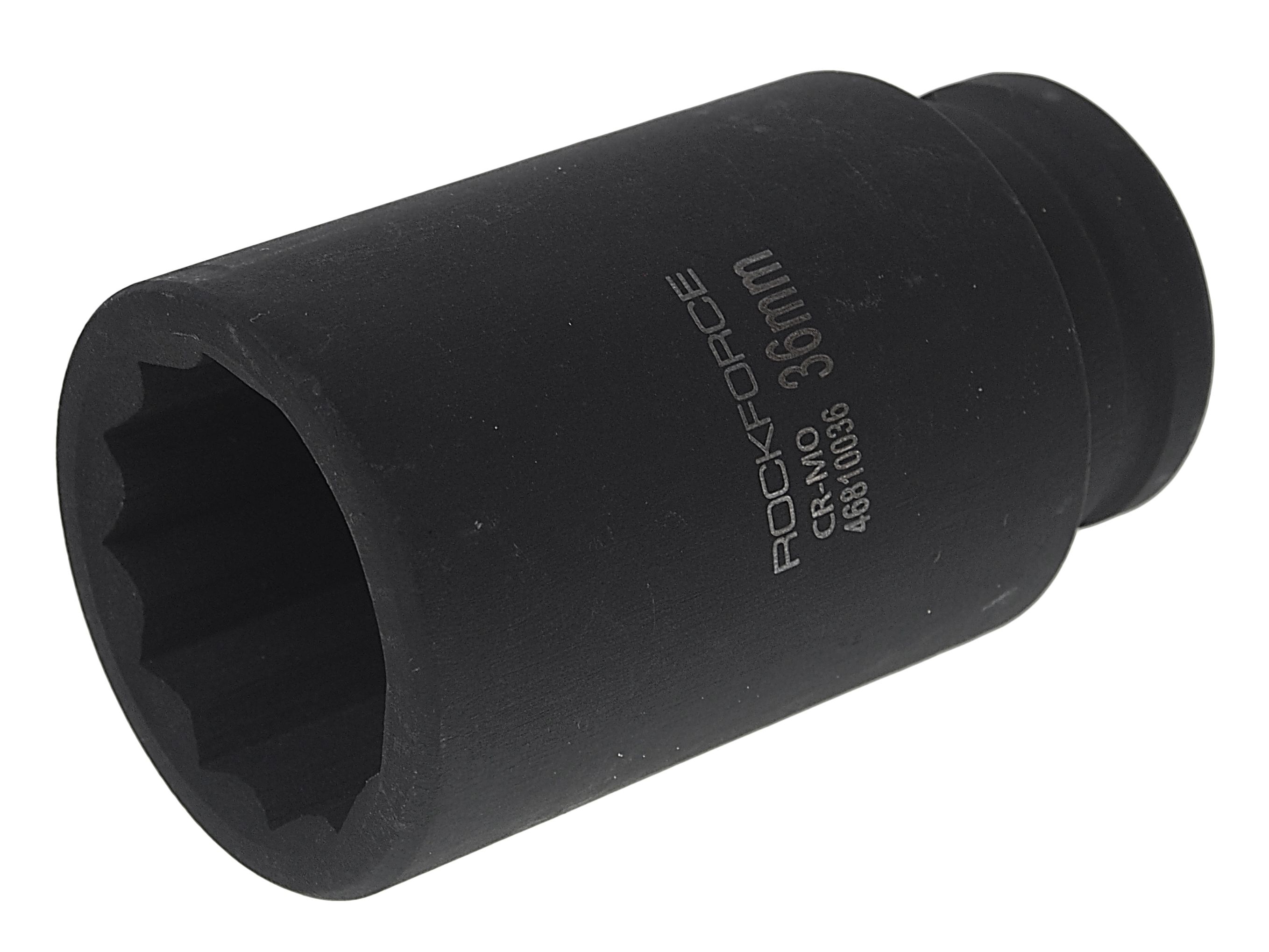 Головка ударная глубокая 3«, 36мм 12-гранная RockForce Головка изготовлена из хром-ванадиевой стали. При изготовлении, используется метод горячей ковки, что делает инструмент устойчивым к сильному физическому воздействию, и позволяют классифицировать головку как «ударную». С помощью данной головки, Вы сможете не только работать применяя «грубую» физическую силу, но и откручивать и закручивать болты, находящиеся в глубоких пазах.